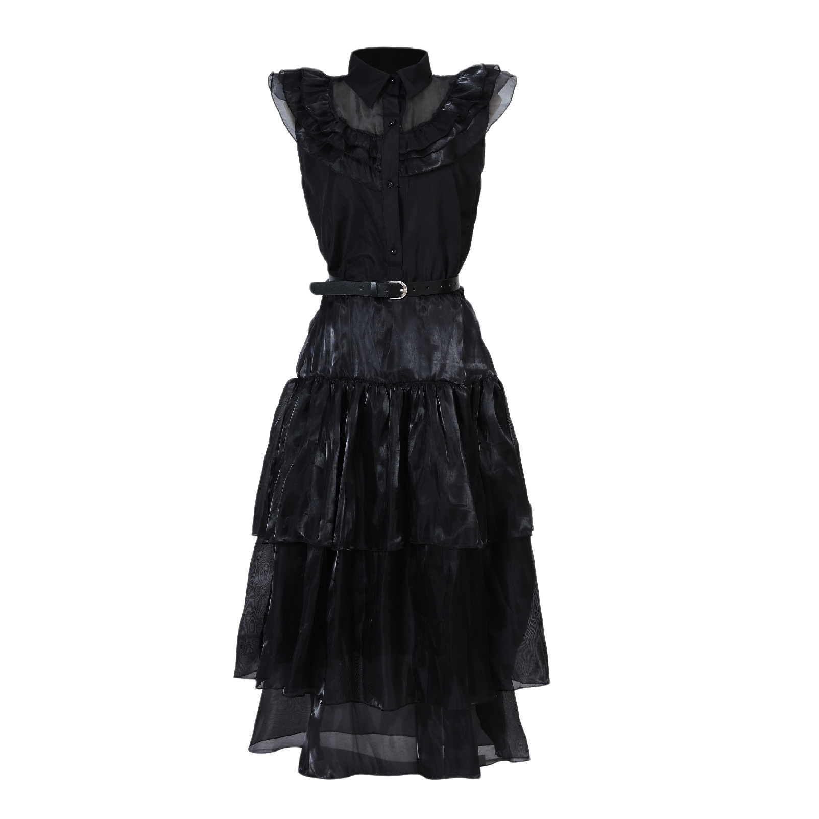 할로윈 아담 가족 소녀 파티 코스프레 의상 검은색 드레스 롱 스커트 코스프레 의상