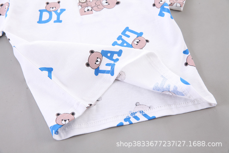 아기 여름 세트 소년 여름 잘 생긴 옷깃 전체 인쇄 곰 2 피스 반팔 아기 옷 머리카락의 세대스토어 가기