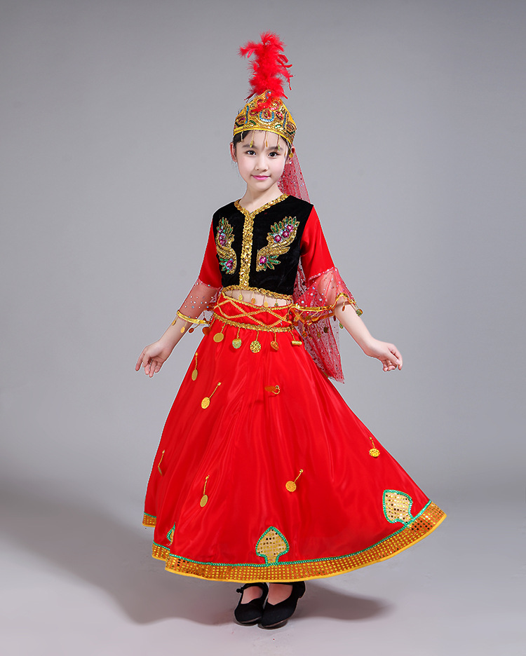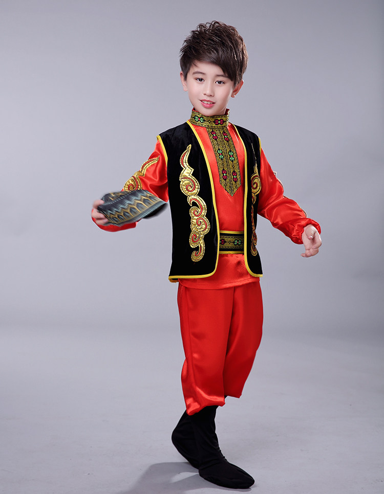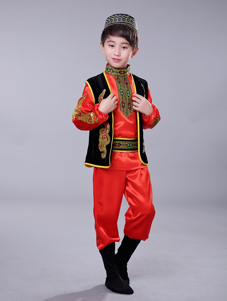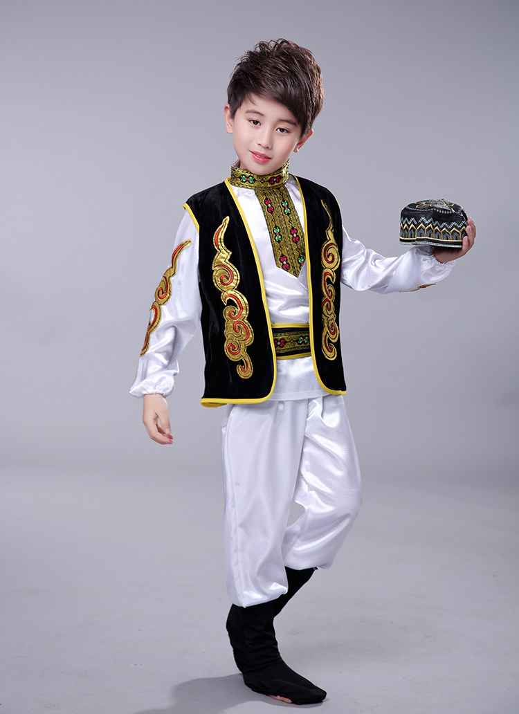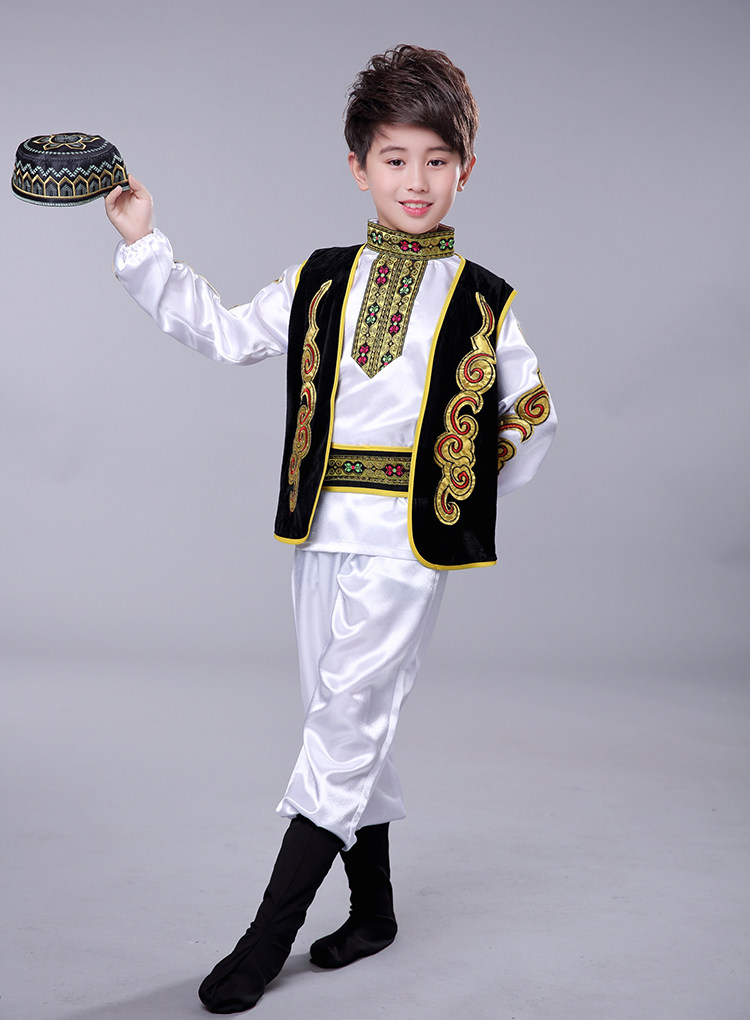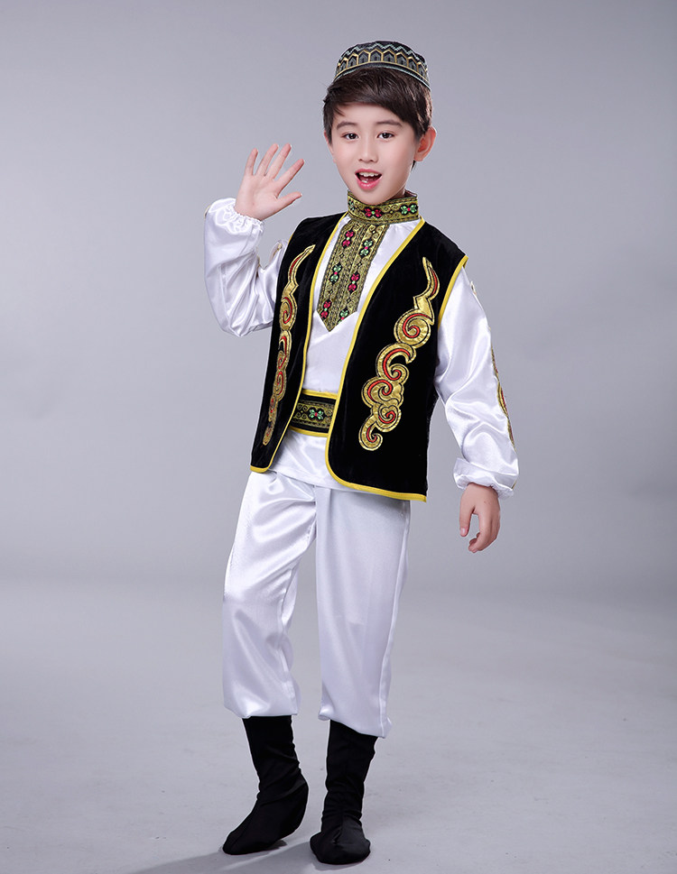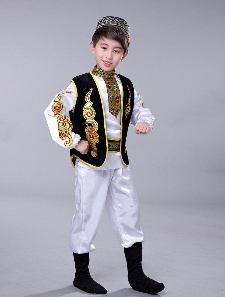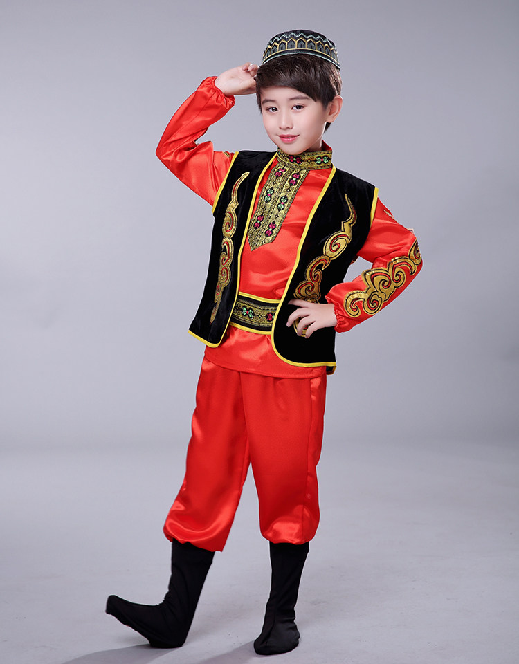 어린이 소수 민족 특성 우즈베키스탄 전통 의상 소년 소녀 무대 댄스 공연 의상 세트