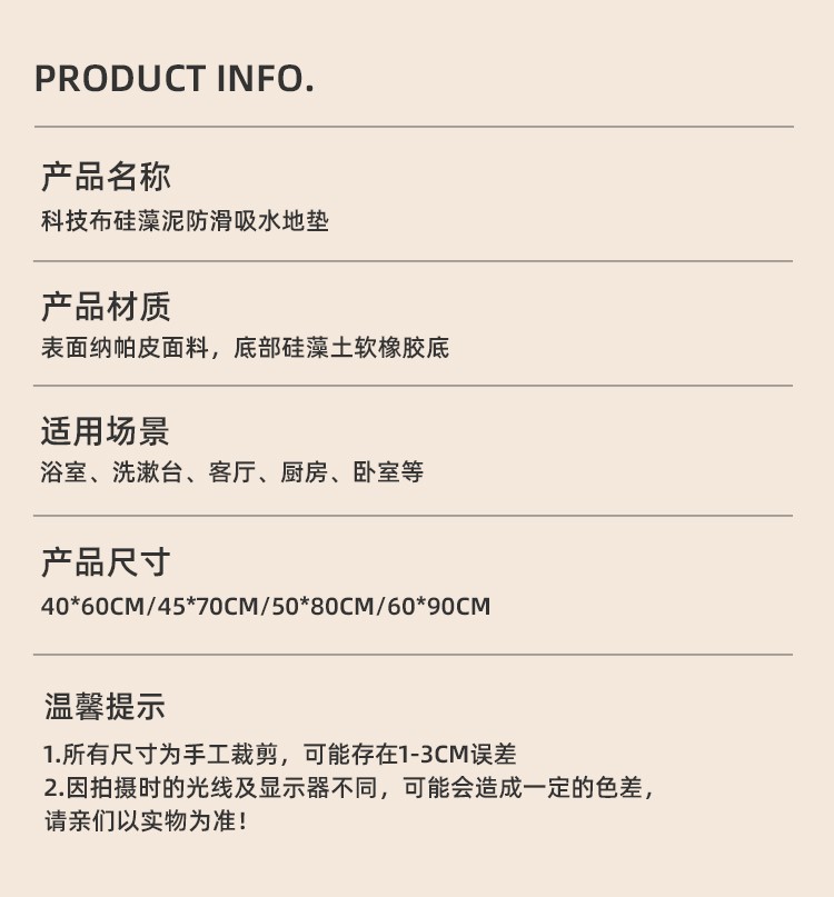 • 45*70cm [얇은 규조토 진흙]