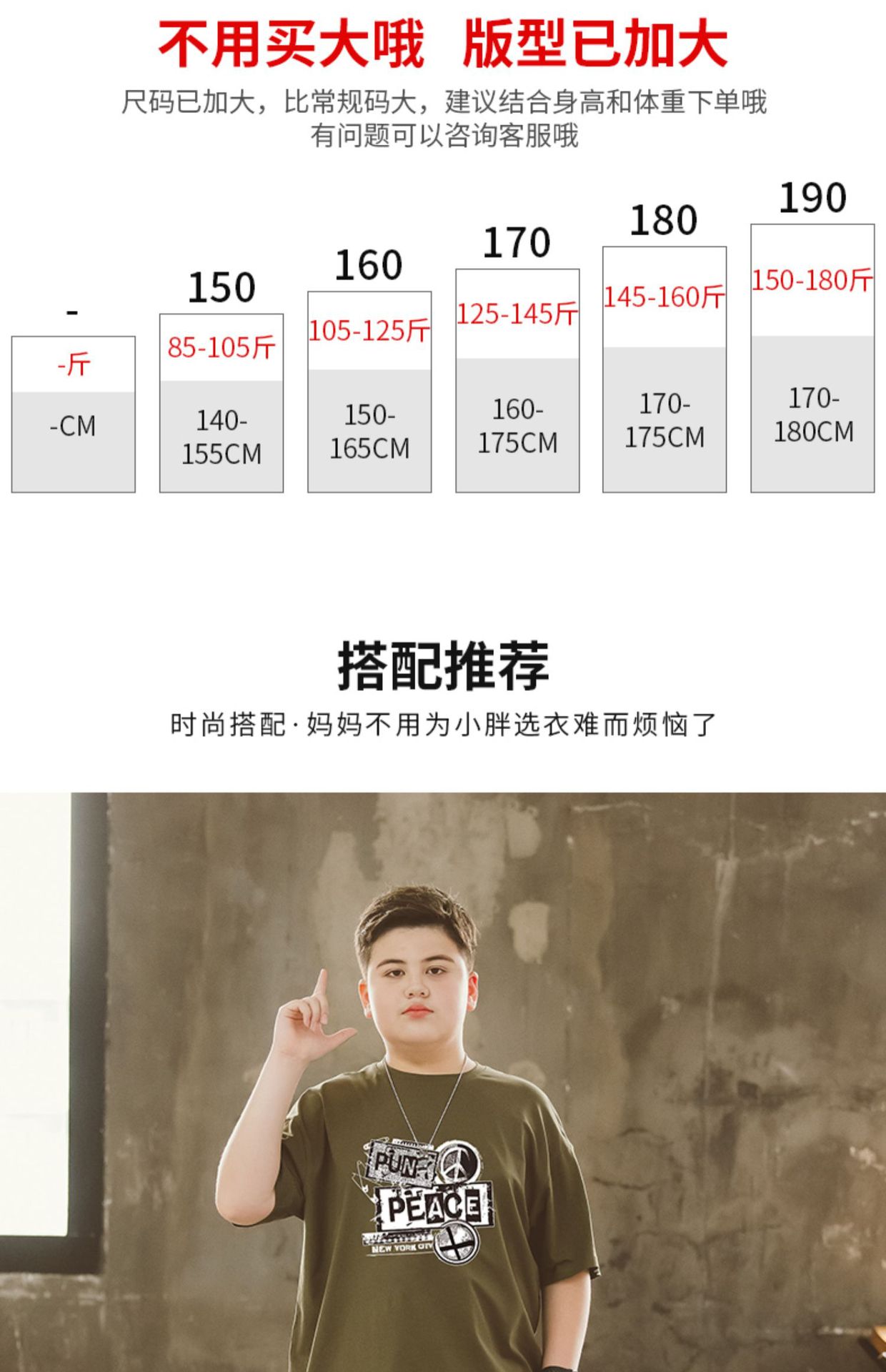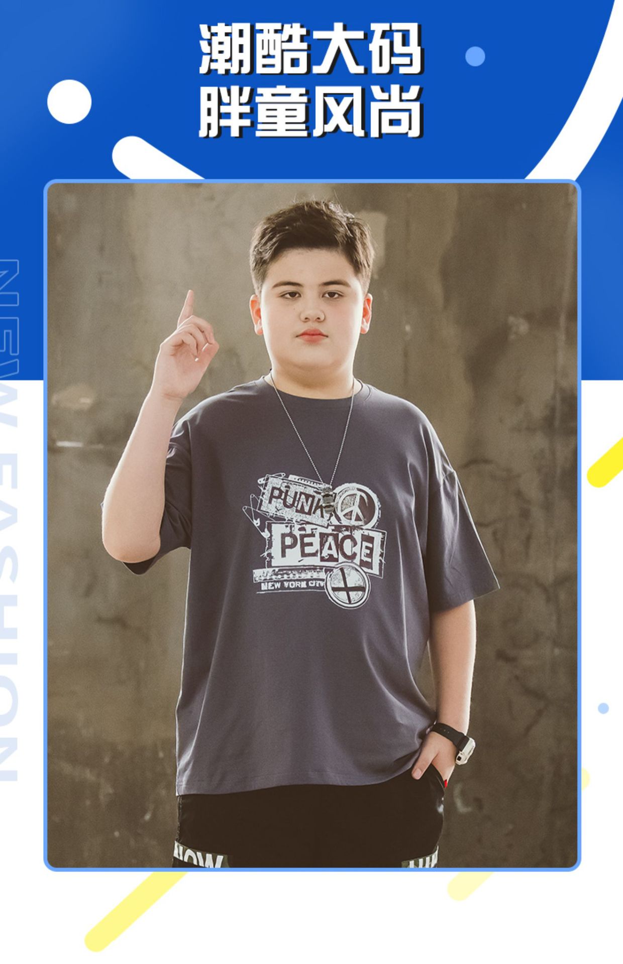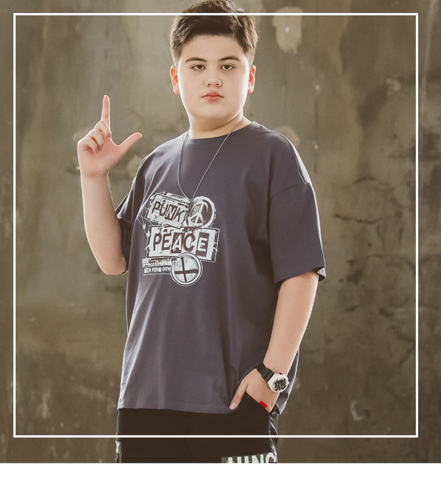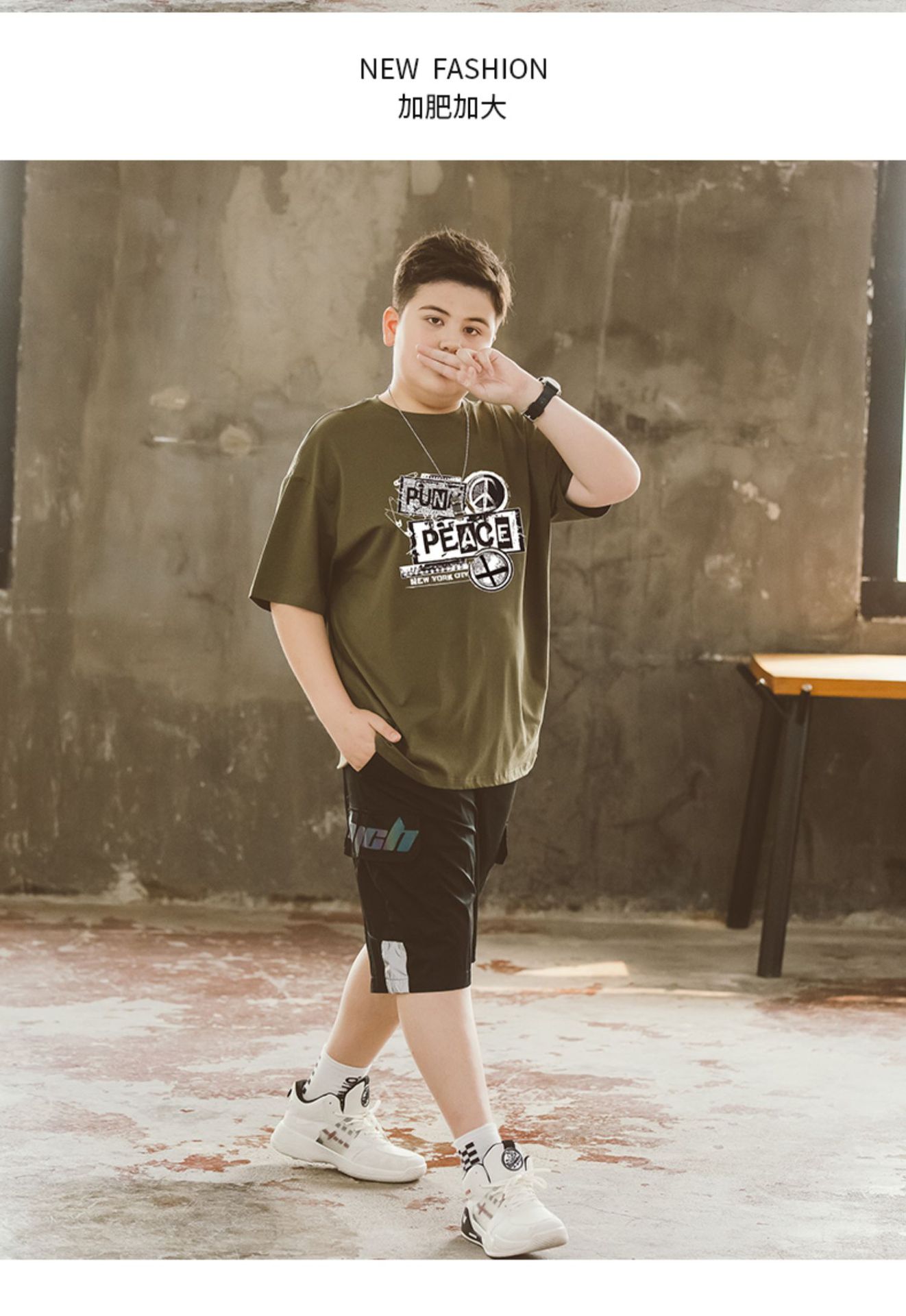 남아 반팔 티셔츠 통통한 어린이 여름 착용 플러스 사이즈 운동복 큰 어린이 운동복 십대 여름 탑스토어 가기