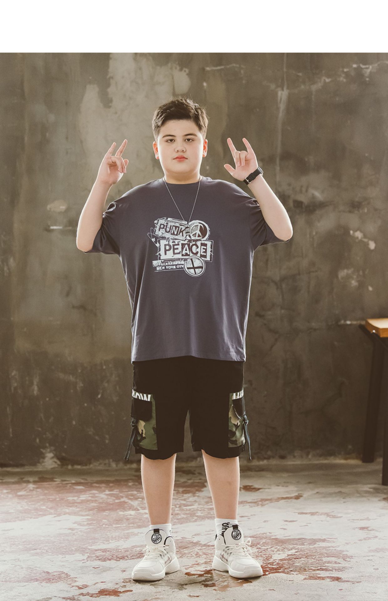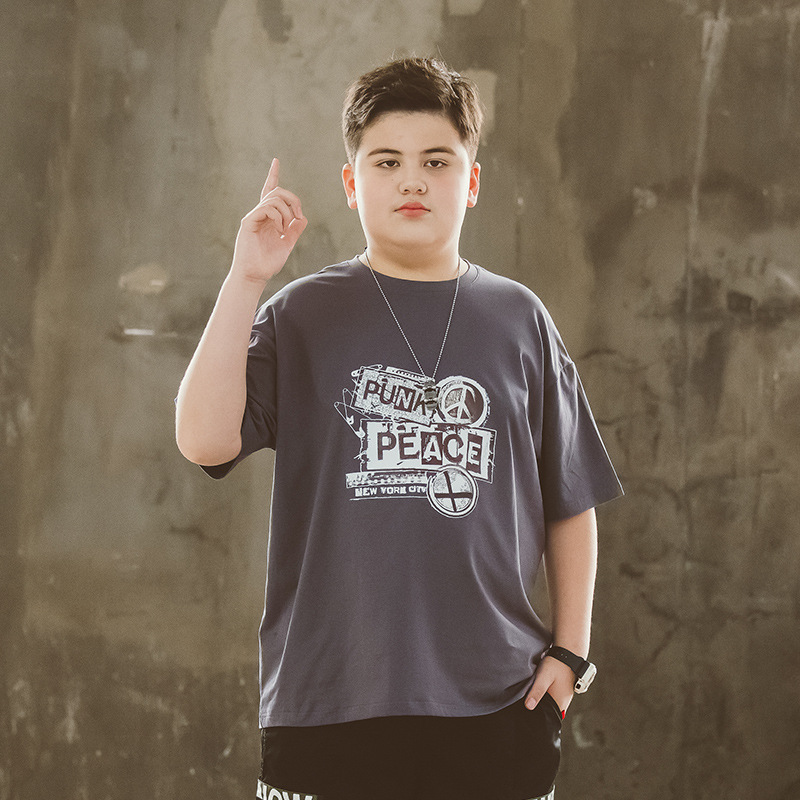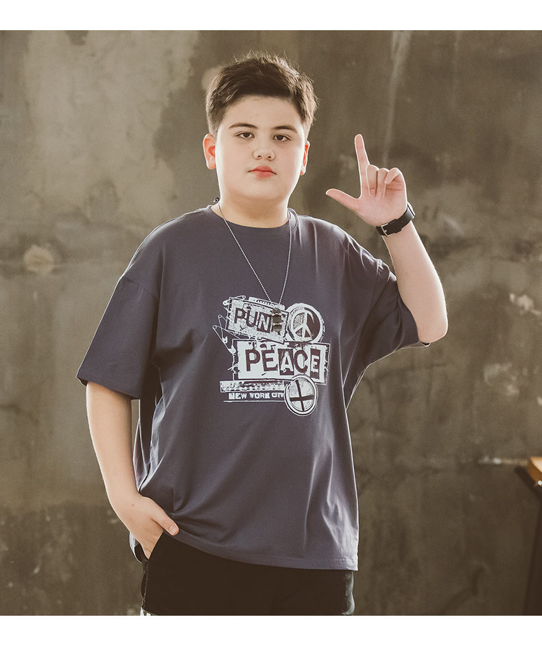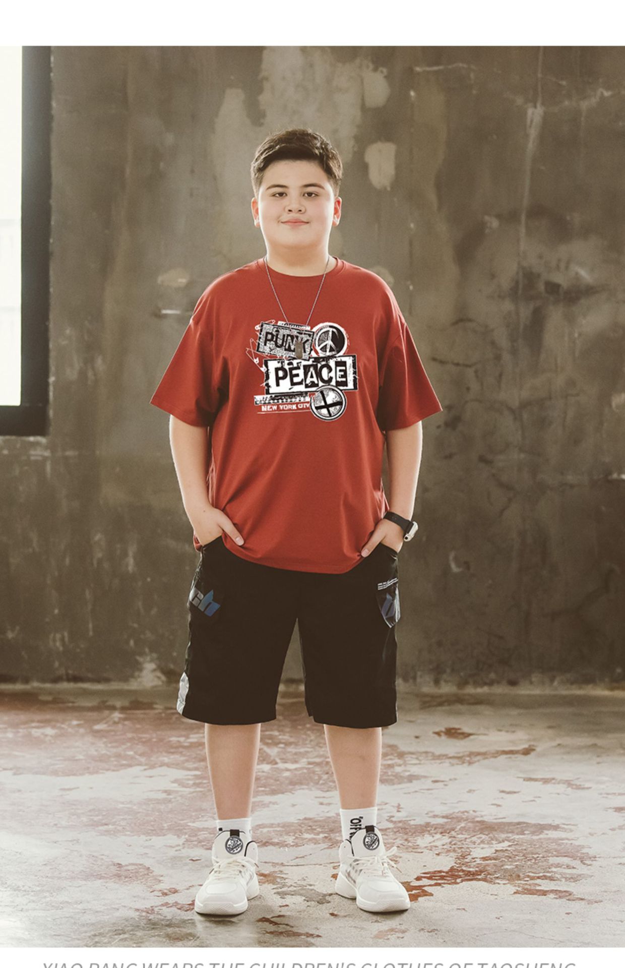 남아 반팔 티셔츠 통통한 어린이 여름 착용 플러스 사이즈 운동복 큰 어린이 운동복 십대 여름 탑스토어 가기