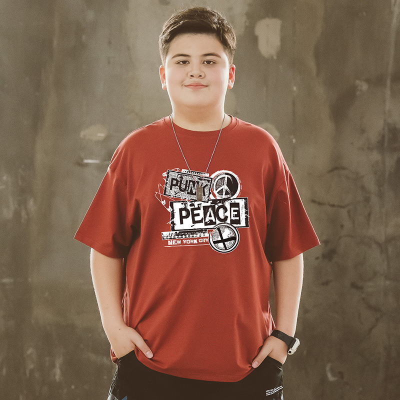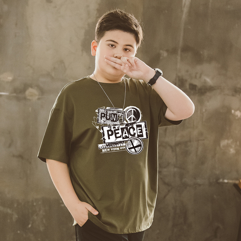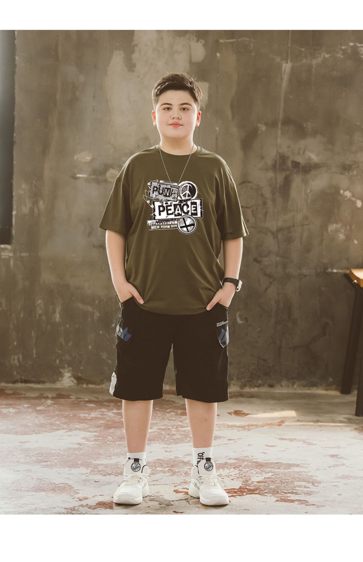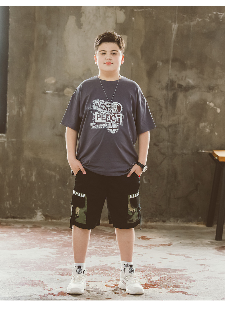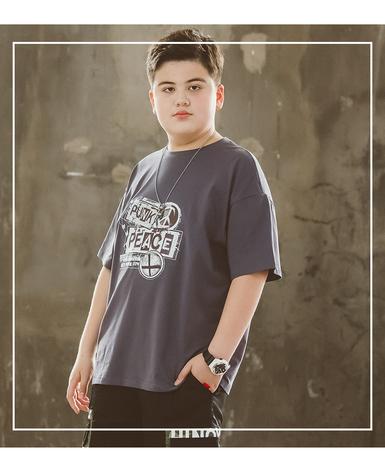 남아 반팔 티셔츠 통통한 어린이 여름 착용 플러스 사이즈 운동복 큰 어린이 운동복 십대 여름 탑스토어 가기