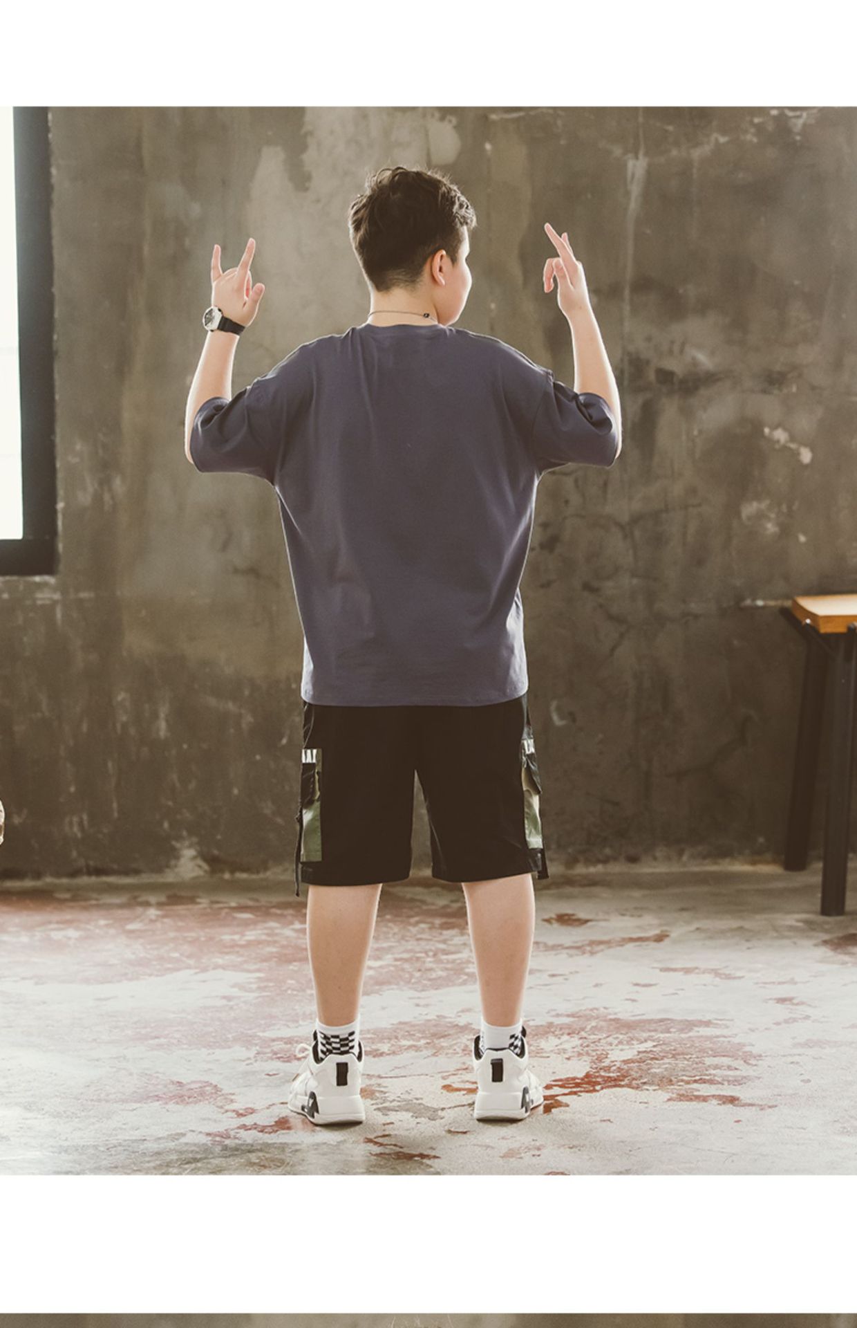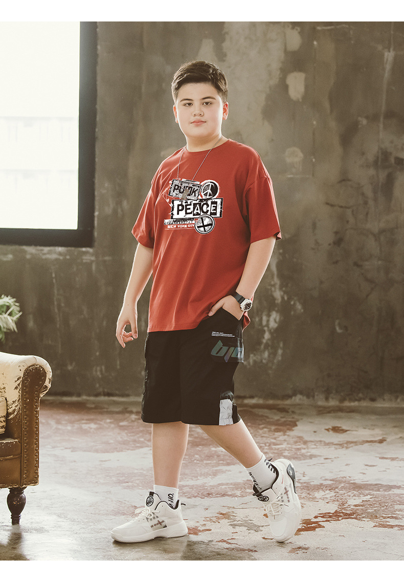 남아 반팔 티셔츠 통통한 어린이 여름 착용 플러스 사이즈 운동복 큰 어린이 운동복 십대 여름 탑