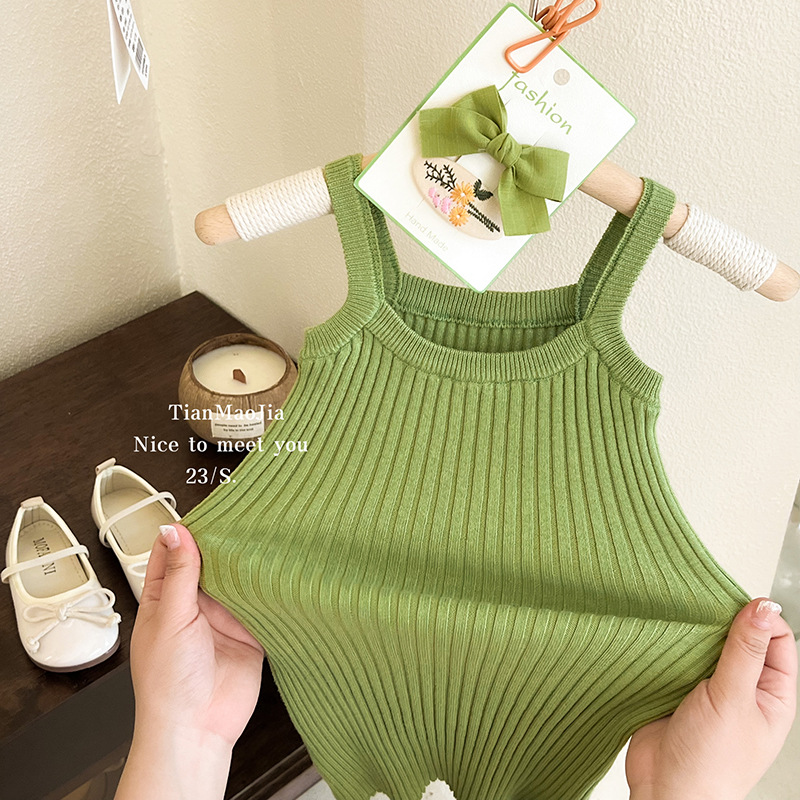 아동 조끼 드레스 2025 여름 신상품 한국 스타일 유행 드레스 아기 소녀 니트 스커트 소녀 조끼 드레스스토어 가기