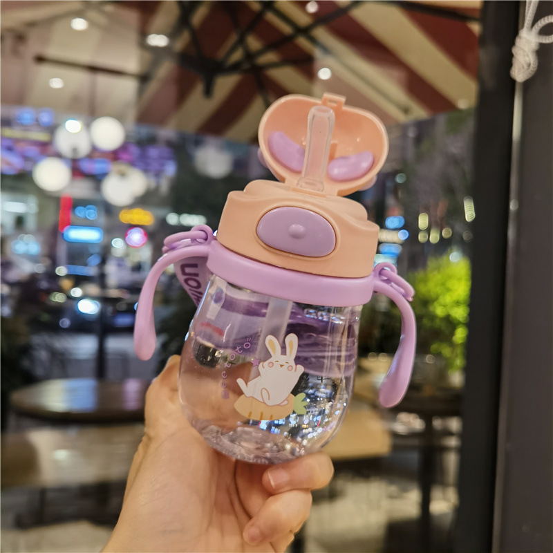 어린이 만화 직접 마시는 빨대 컵 250ml 소용량 어린이 휴대용 스트랩 주전자 귀여운 어린이 손잡이 컵