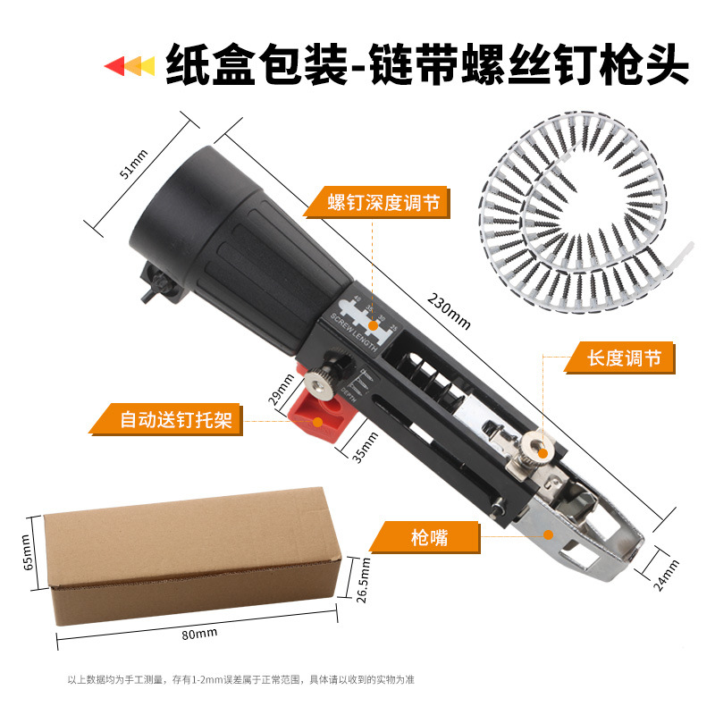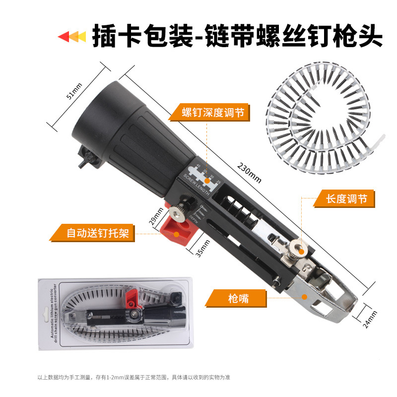 스크류 건 헤드 자동 네일 건 전기 배치 목공 장식 충전식 석고 보드 셀프 태핑 배치 헤드가있는 체인