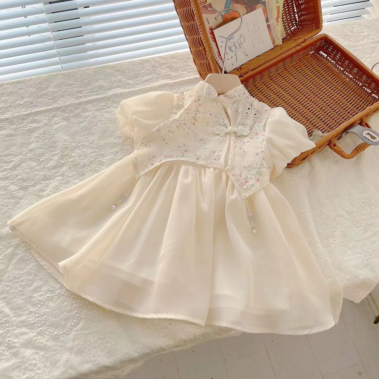 Kaichen 아동복 어린이 원피스 2024 여름 새로운 소녀 국가 스타일 스커트 0-6 세 어린이 치마 세대 헤어