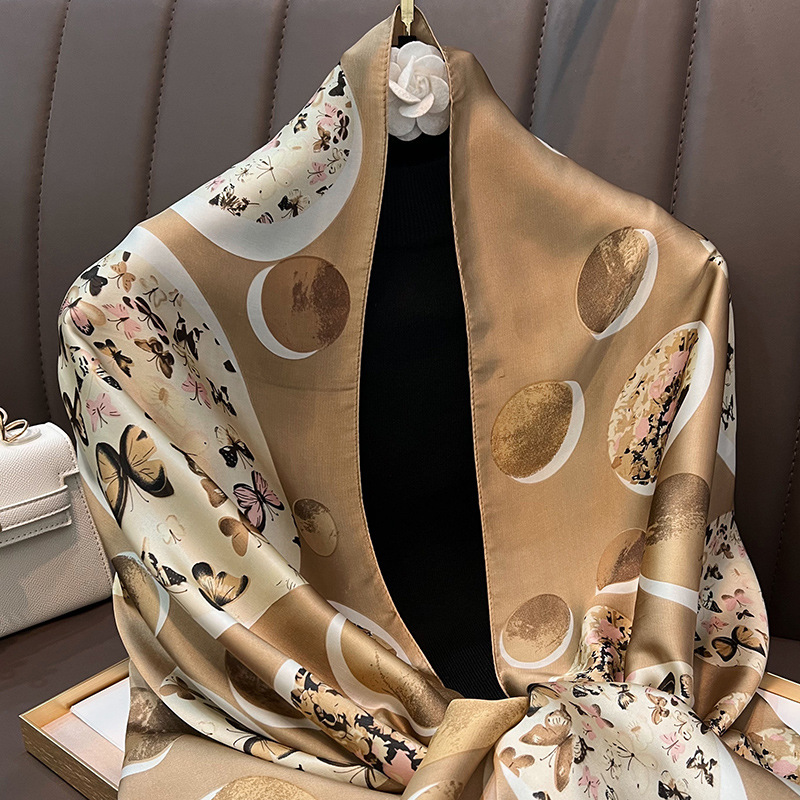 여름 자외선 차단제 스카프 2023 봄과 가을 새로운 리 브로케이드 새틴 롱 스카프 인쇄 긴 여성 패션 에어컨 룸 숄스토어 가기