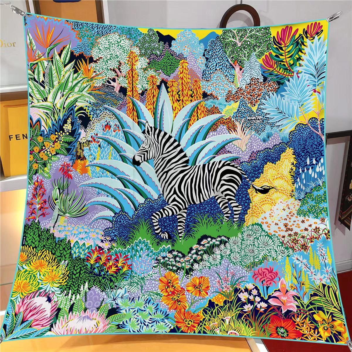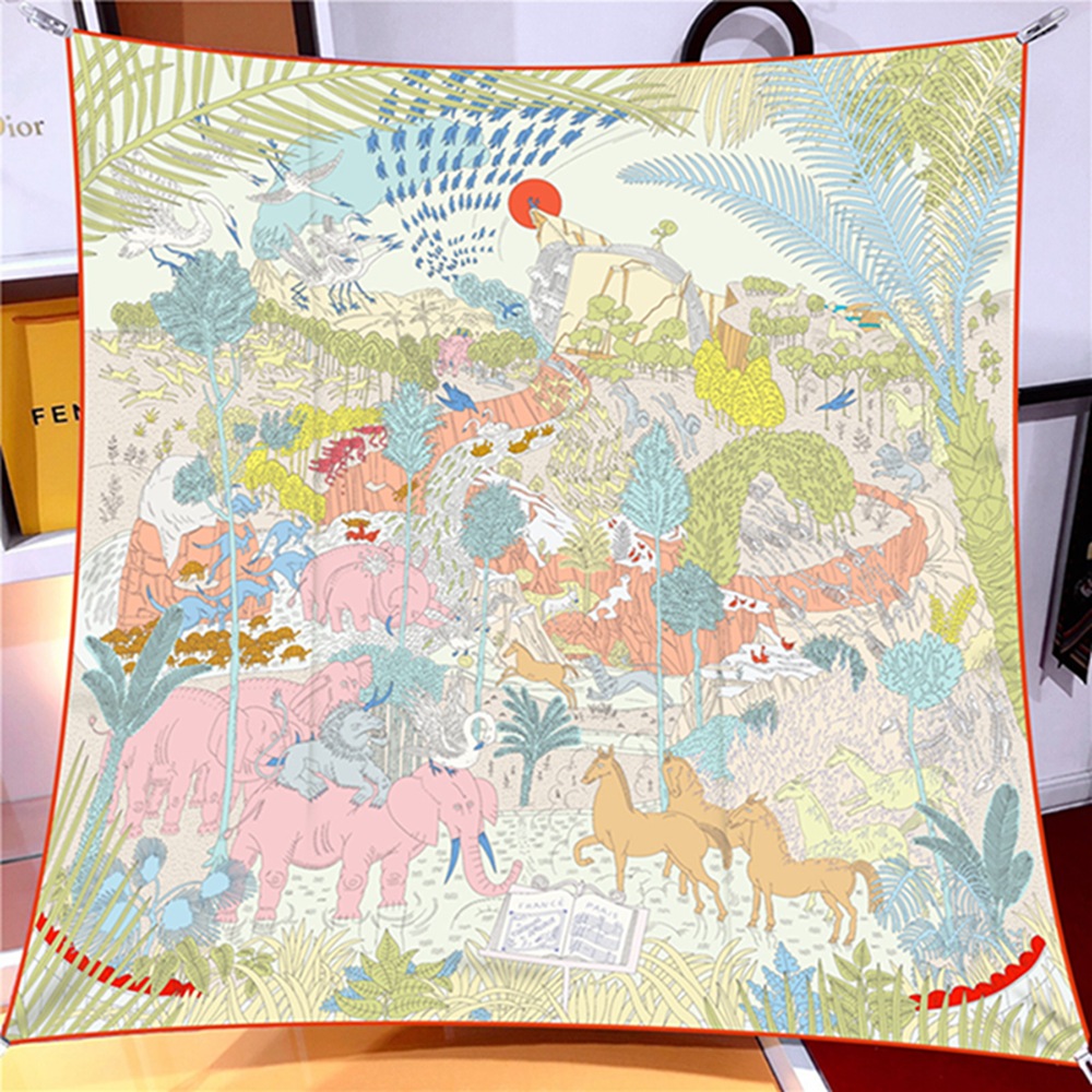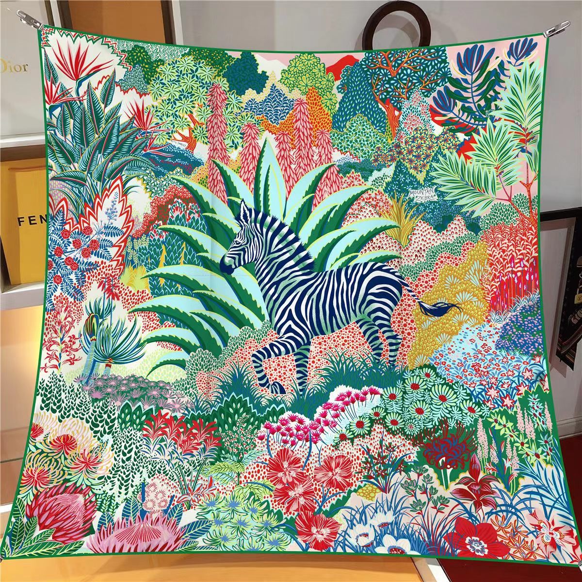 새로운 능직 실크 스카프 90 미디엄 스퀘어 스카프 항저우 하이 퀄리티 능직 실크 수제 테이블 에디션 인쇄 직각 기계 헤지스토어 가기