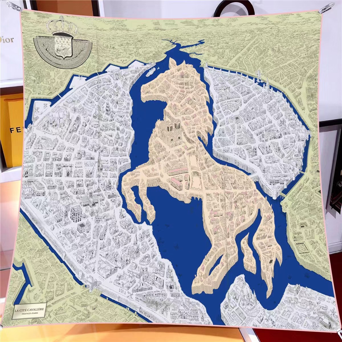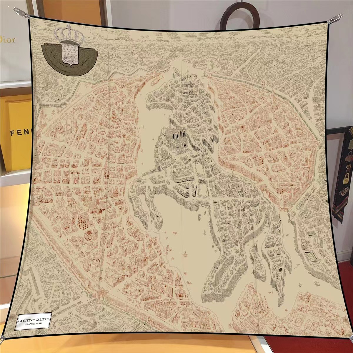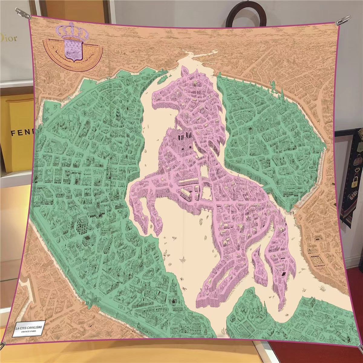 새로운 능직 실크 스카프 90 미디엄 스퀘어 스카프 항저우 하이 퀄리티 능직 실크 수제 테이블 에디션 인쇄 직각 기계 헤지스토어 가기