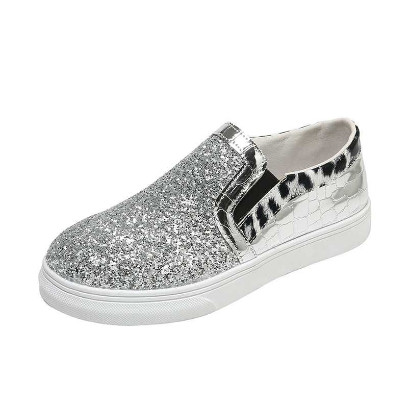 2023 봄과 여름 새로운 단일 레이어 신발 여성의 대외 무역 플러스 사이즈 플랫 탄성 스팽글 색상 매칭 유럽과 미국 캐주얼 운동화 여성스토어 가기