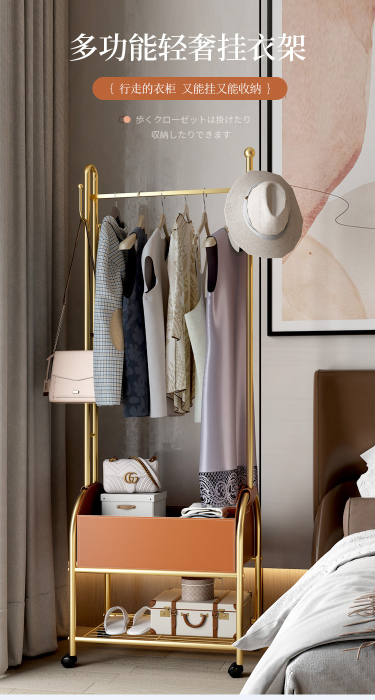 유럽과 미국의 가벼운 고급 선인장 가죽 걸이 바닥 스탠딩 콤비네이션 코트 랙 침실 다기능 가방 보관 랙스토어 가기