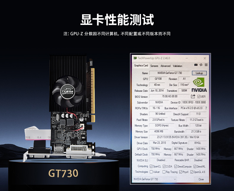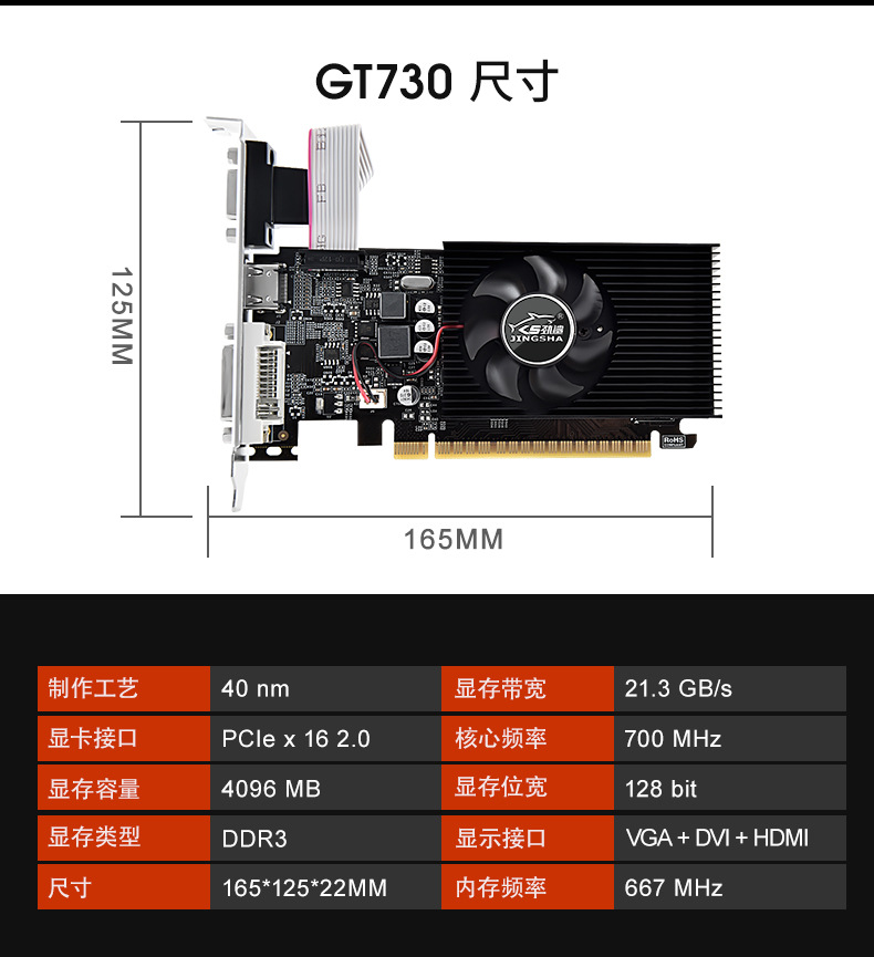 Jinsha GT730 4G(2K 지원) 독립 그래픽 카드 GDDR3 밝은 카드 하프 하이 카드 소형 섀시