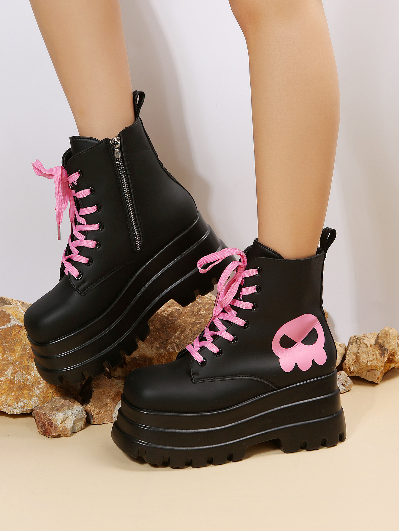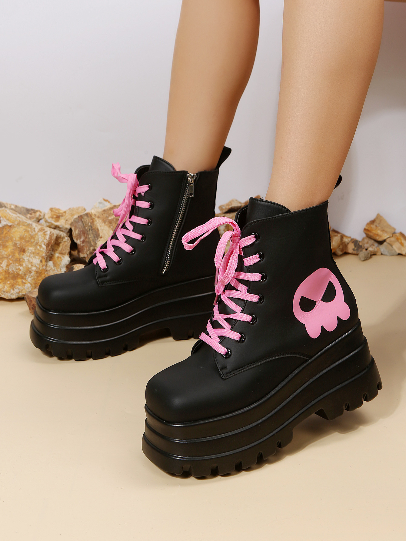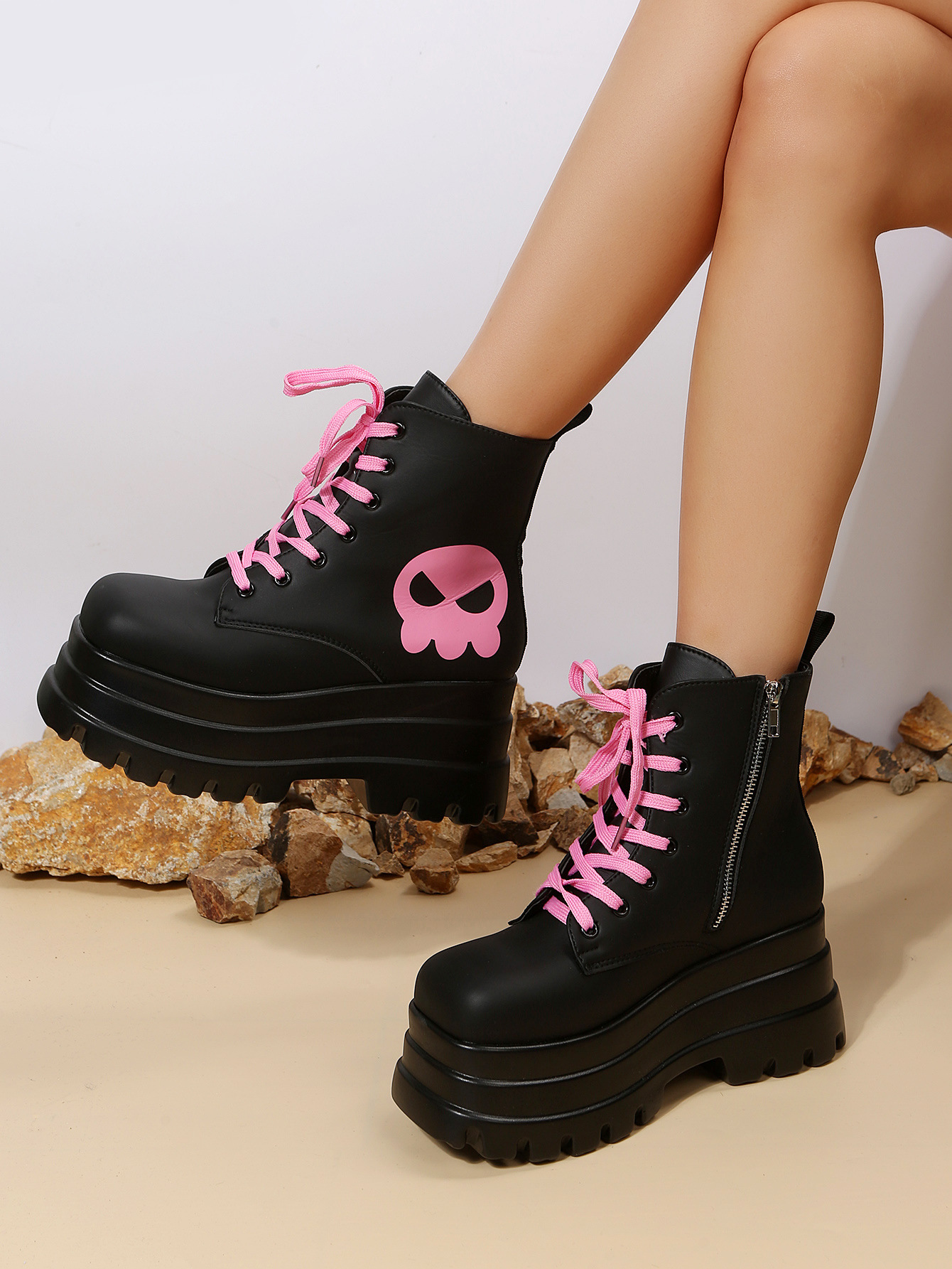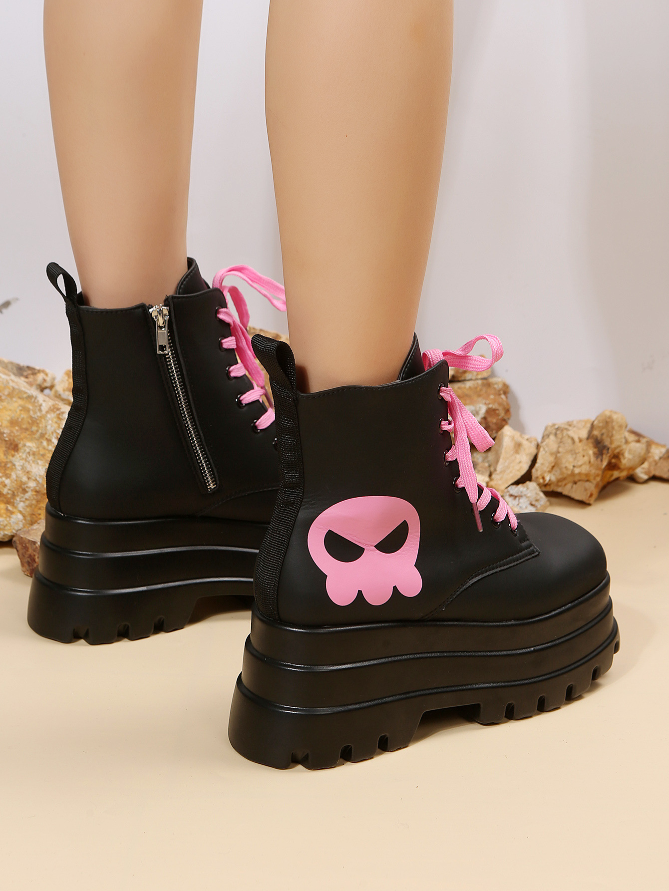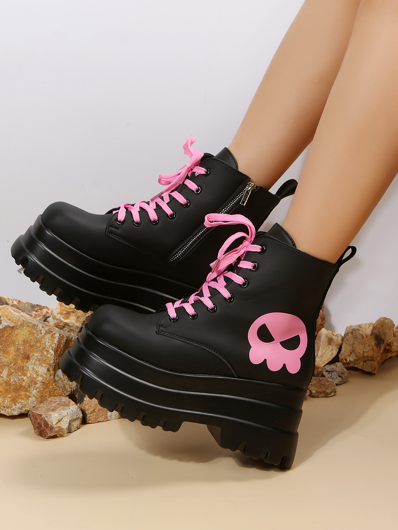 스위트 쿨 마틴 부츠 여성 가을과 겨울 2023 새로운 영국 스타일 두꺼운 바닥 짧은 부츠 레이스 업 사이드 지퍼 싱글 부츠스토어 가기