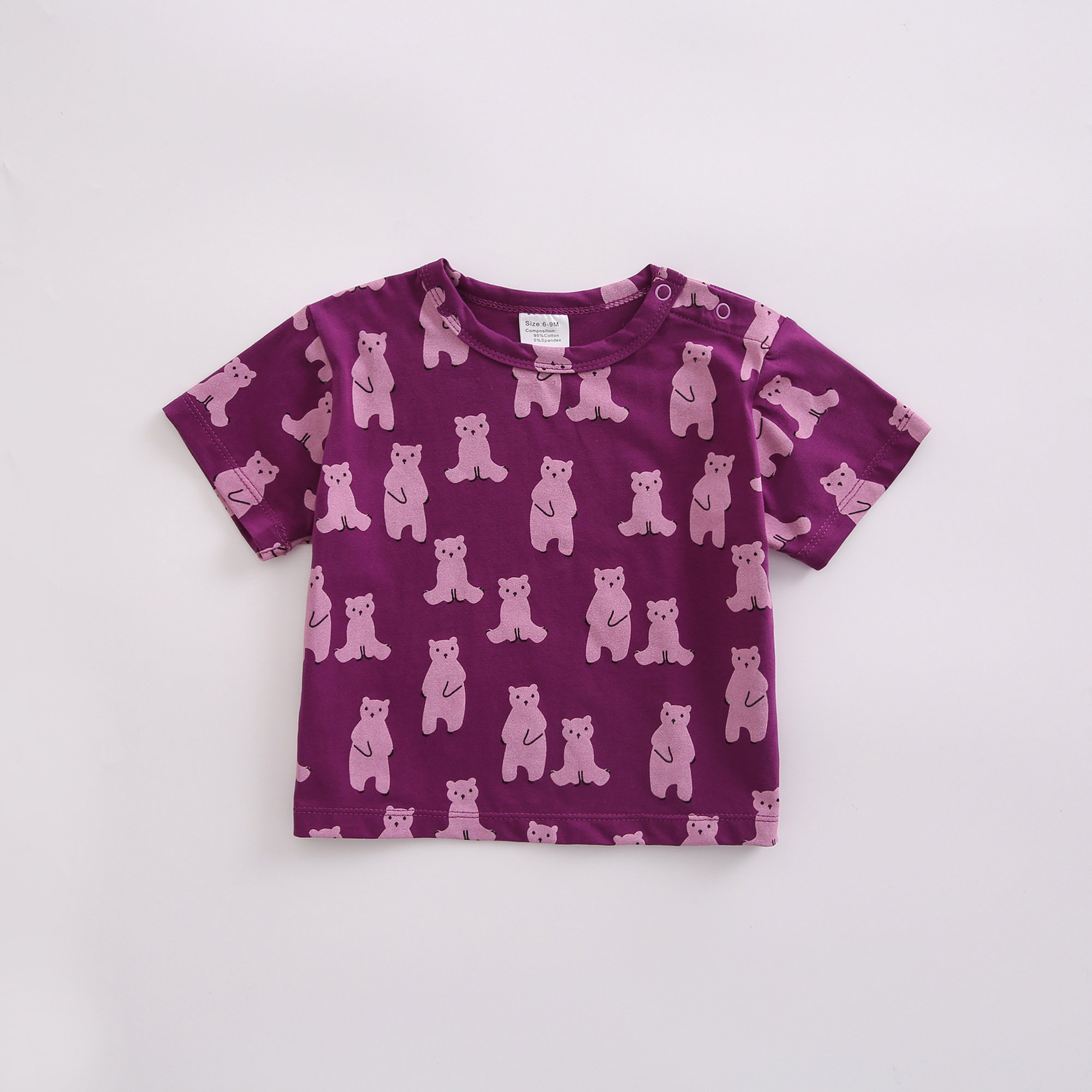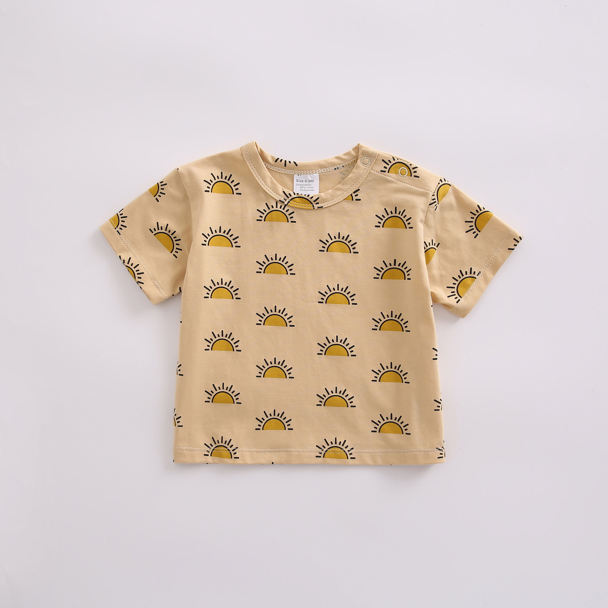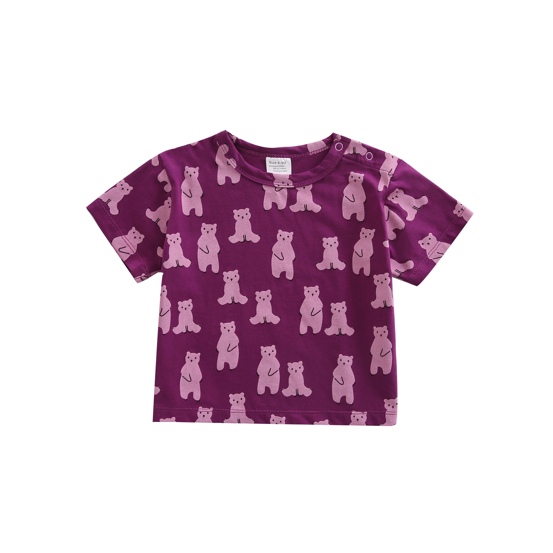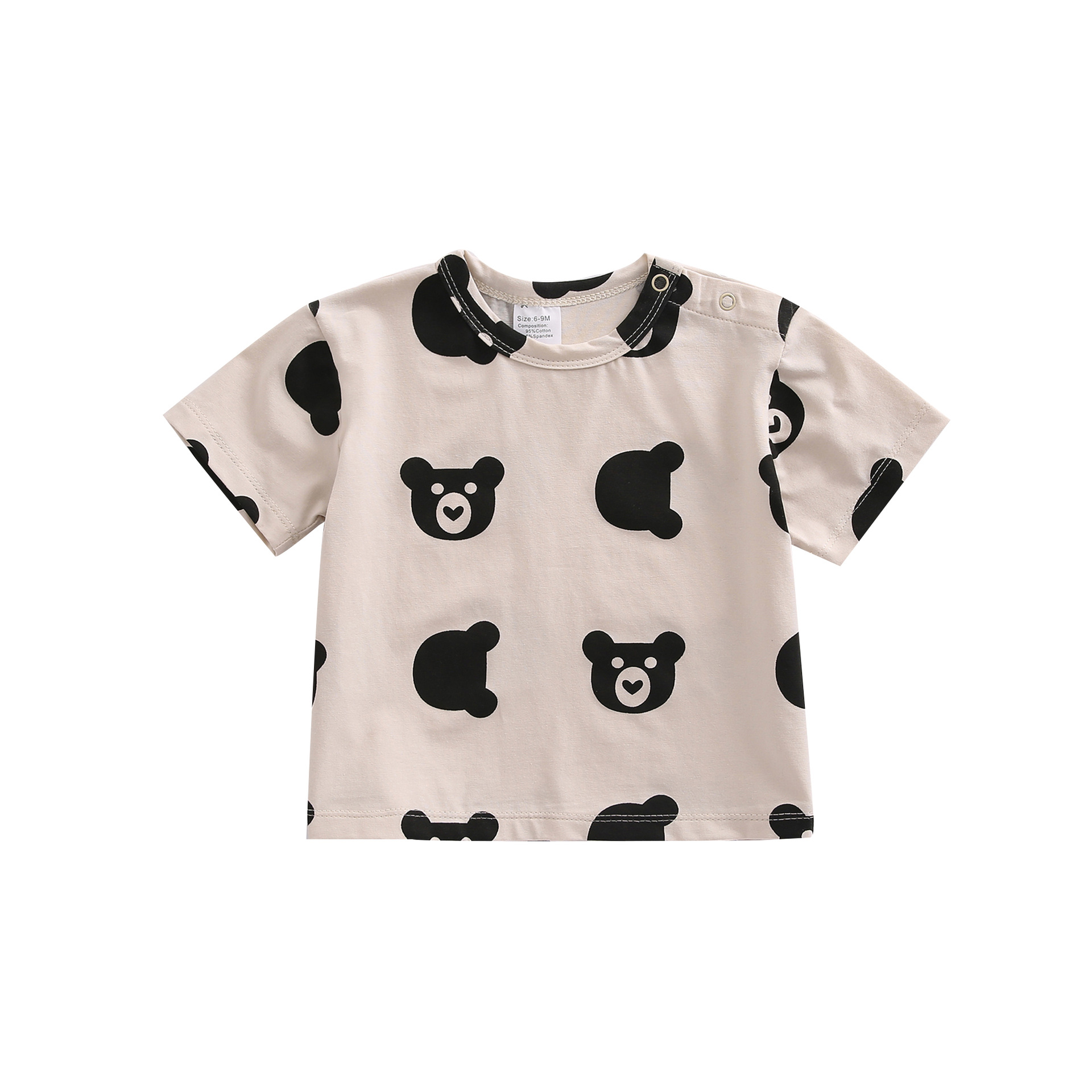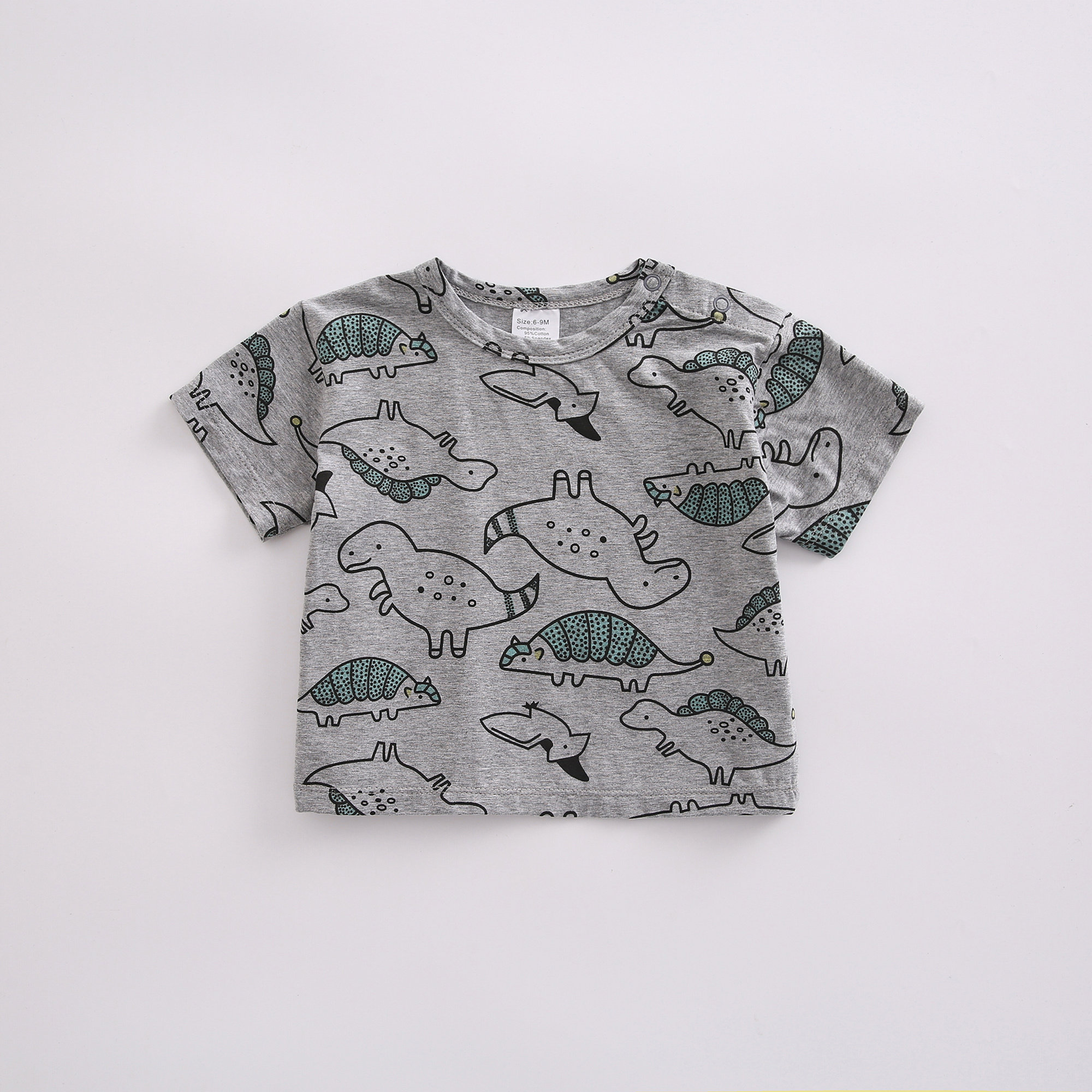 여름 아기의 반팔 티셔츠 아기 소녀의 순면 반팔 짧은 티셔츠 얇은 여름 원피스 아기 소년의 서양식 프린트 탑스토어 가기