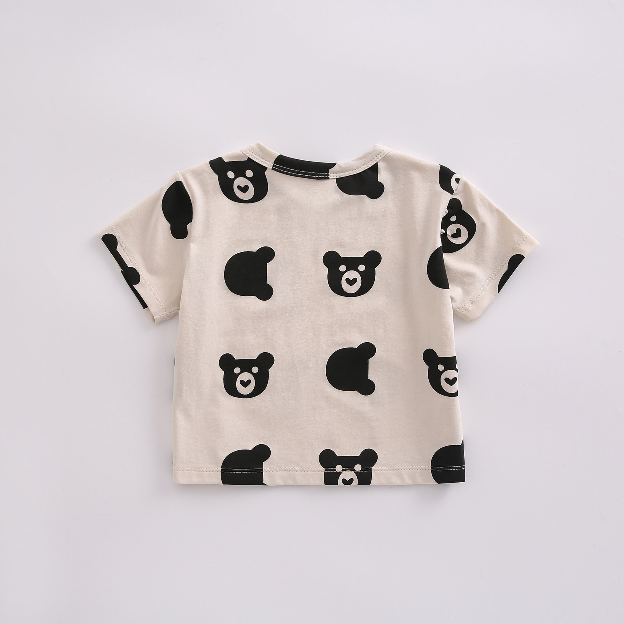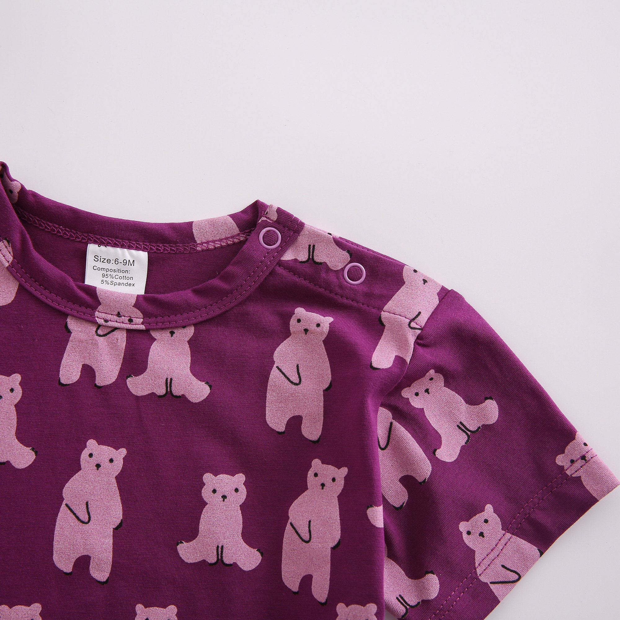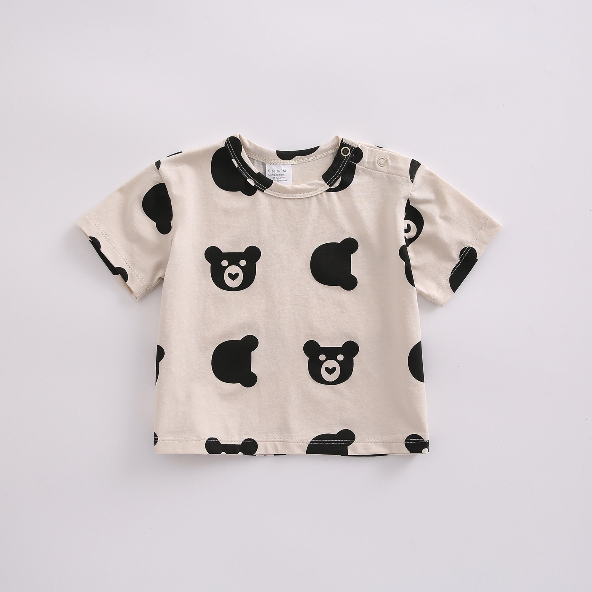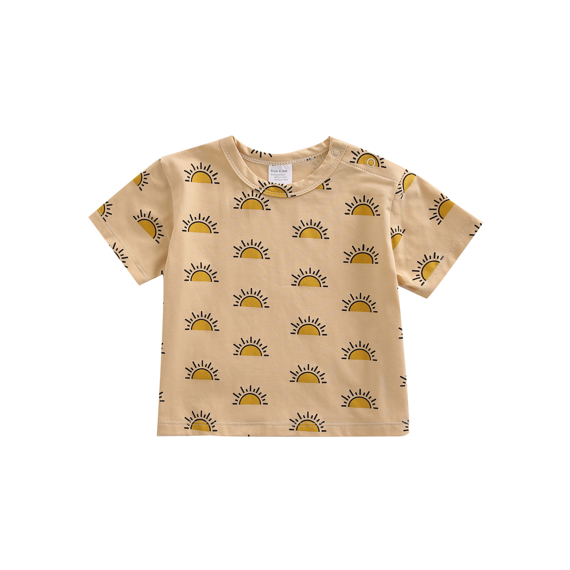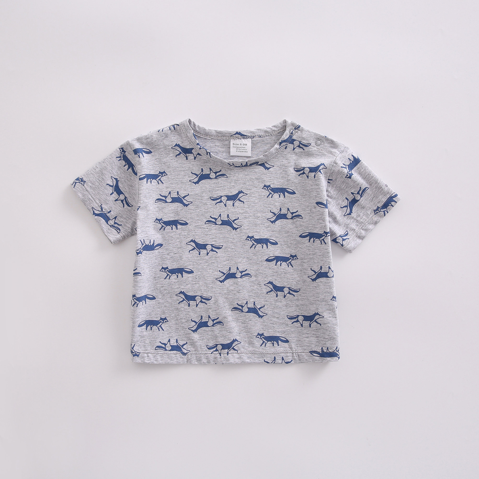 여름 아기의 반팔 티셔츠 아기 소녀의 순면 반팔 짧은 티셔츠 얇은 여름 원피스 아기 소년의 서양식 프린트 탑스토어 가기