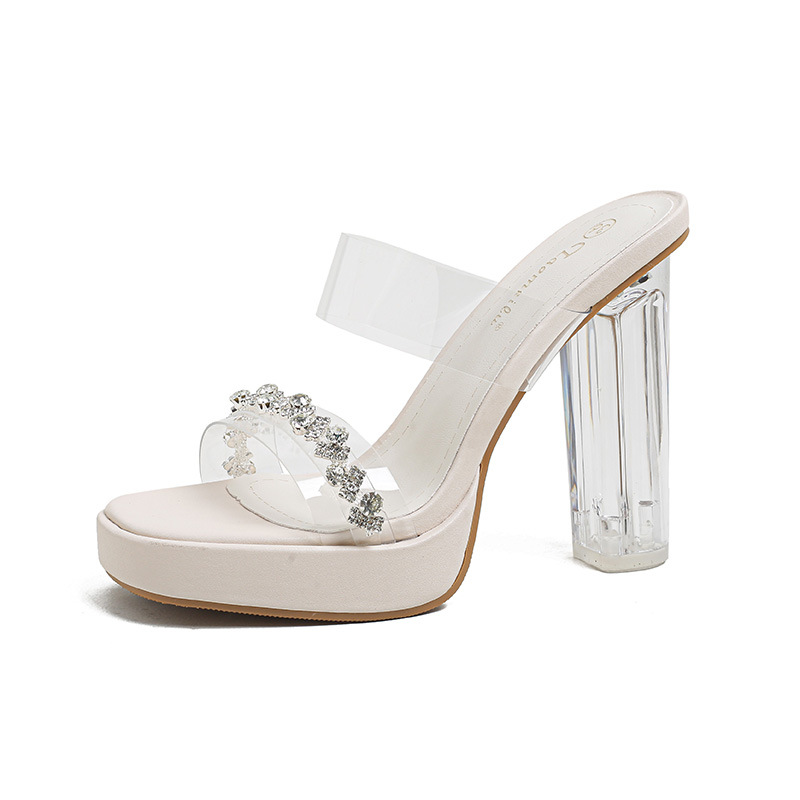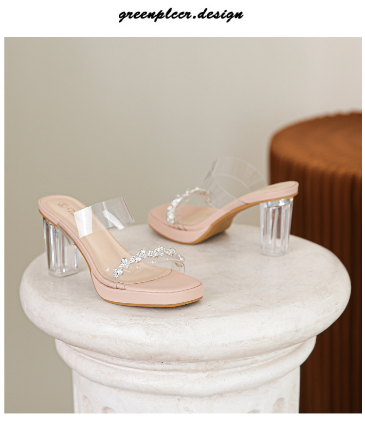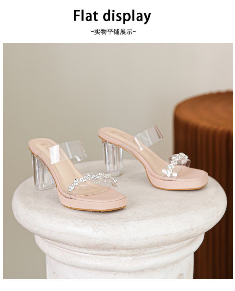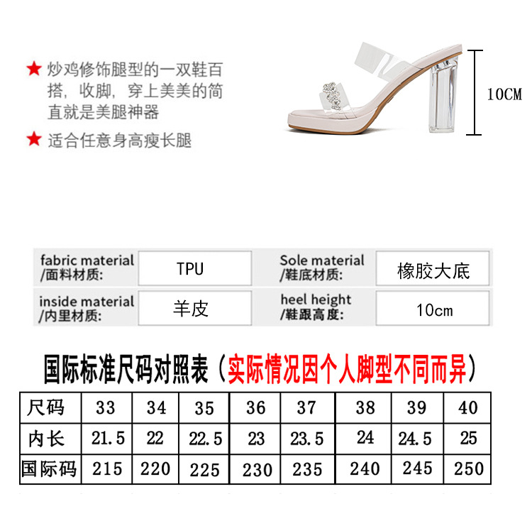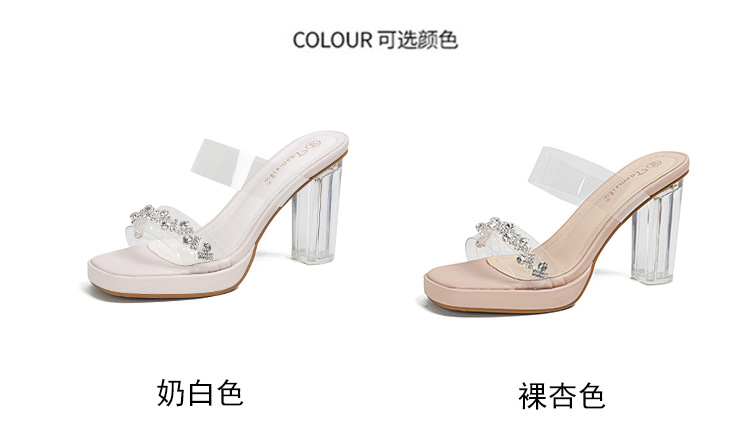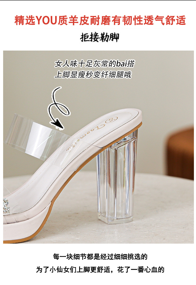 투명 하이힐 여성용 여름 새로운 방수 플랫폼 슬리퍼 슈퍼 하이힐 크리스탈 힐 청키 힐 여성용 샌들
