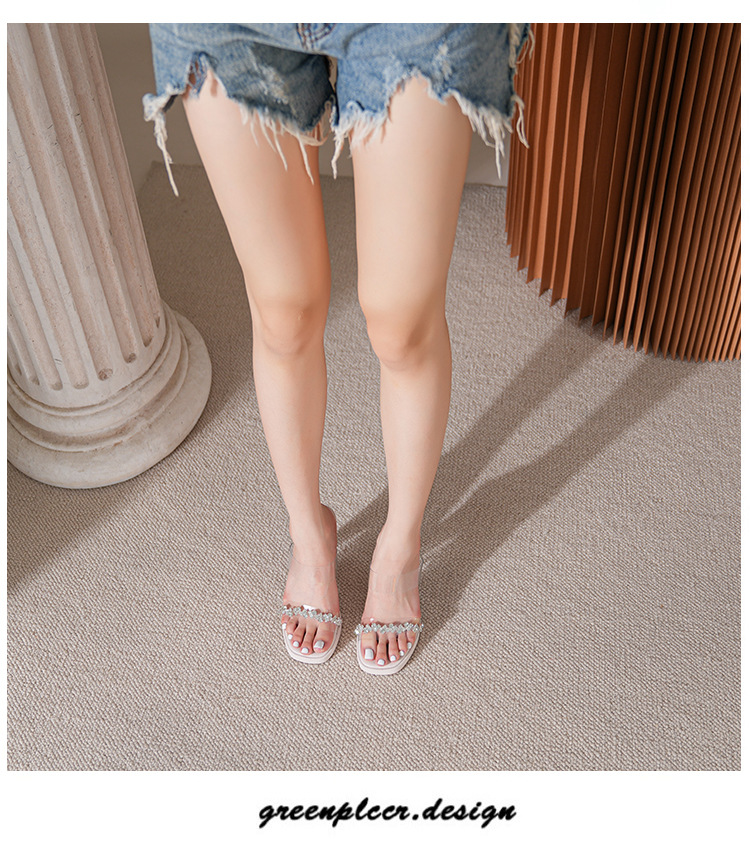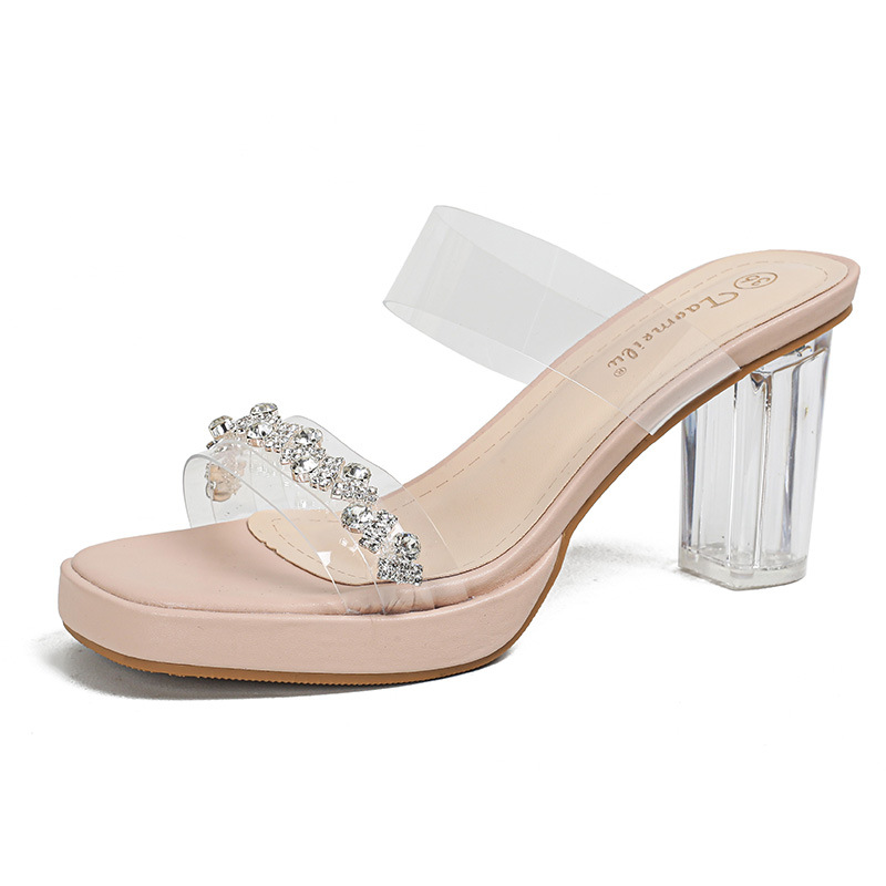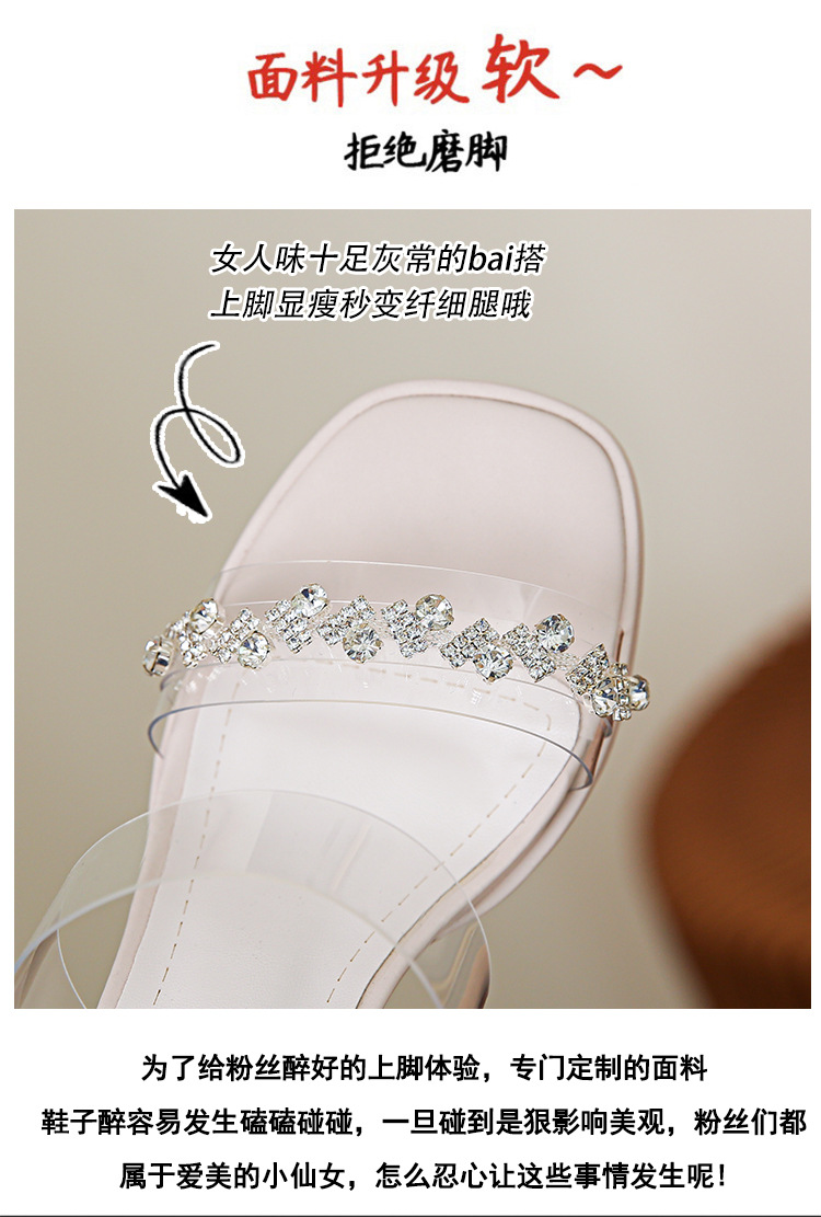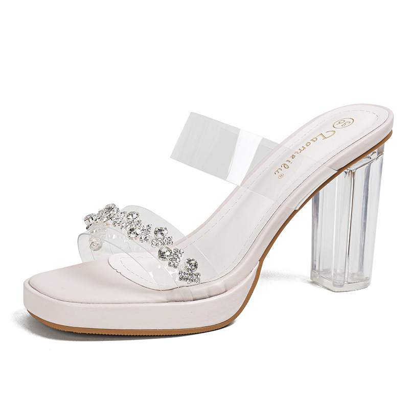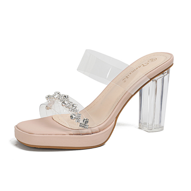 투명 하이힐 여성용 여름 새로운 방수 플랫폼 슬리퍼 슈퍼 하이힐 크리스탈 힐 청키 힐 여성용 샌들
