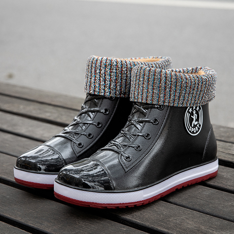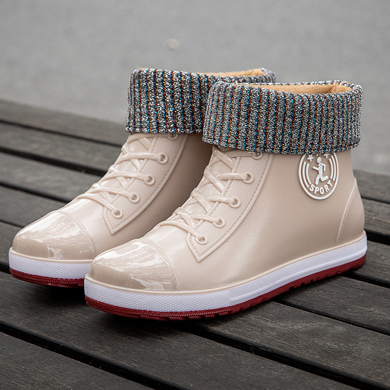 봄과 가을 비 신발 여성의 유행 겉옷 미끄럼 방지 장화 학생 고무 신발 플러스 면 오버레이 로우 탑 짧은 튜브 방수 신발