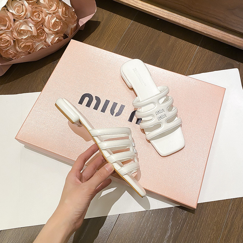 양가죽 보드 ~ 두꺼운 굽 플랫 바닥 피시본 중공 샌들 여성용 2023 여름 새로운 야외 해변 얕은 슬리퍼