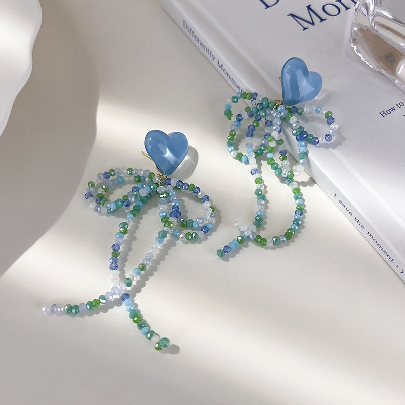 여름 바다 소금 소다 925 실버 귀걸이 블루 사랑 나비 크리스탈 페르시 긴 술 귀걸이 여성
