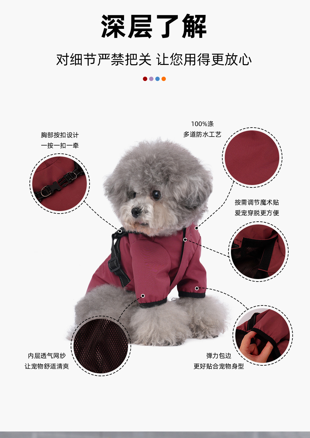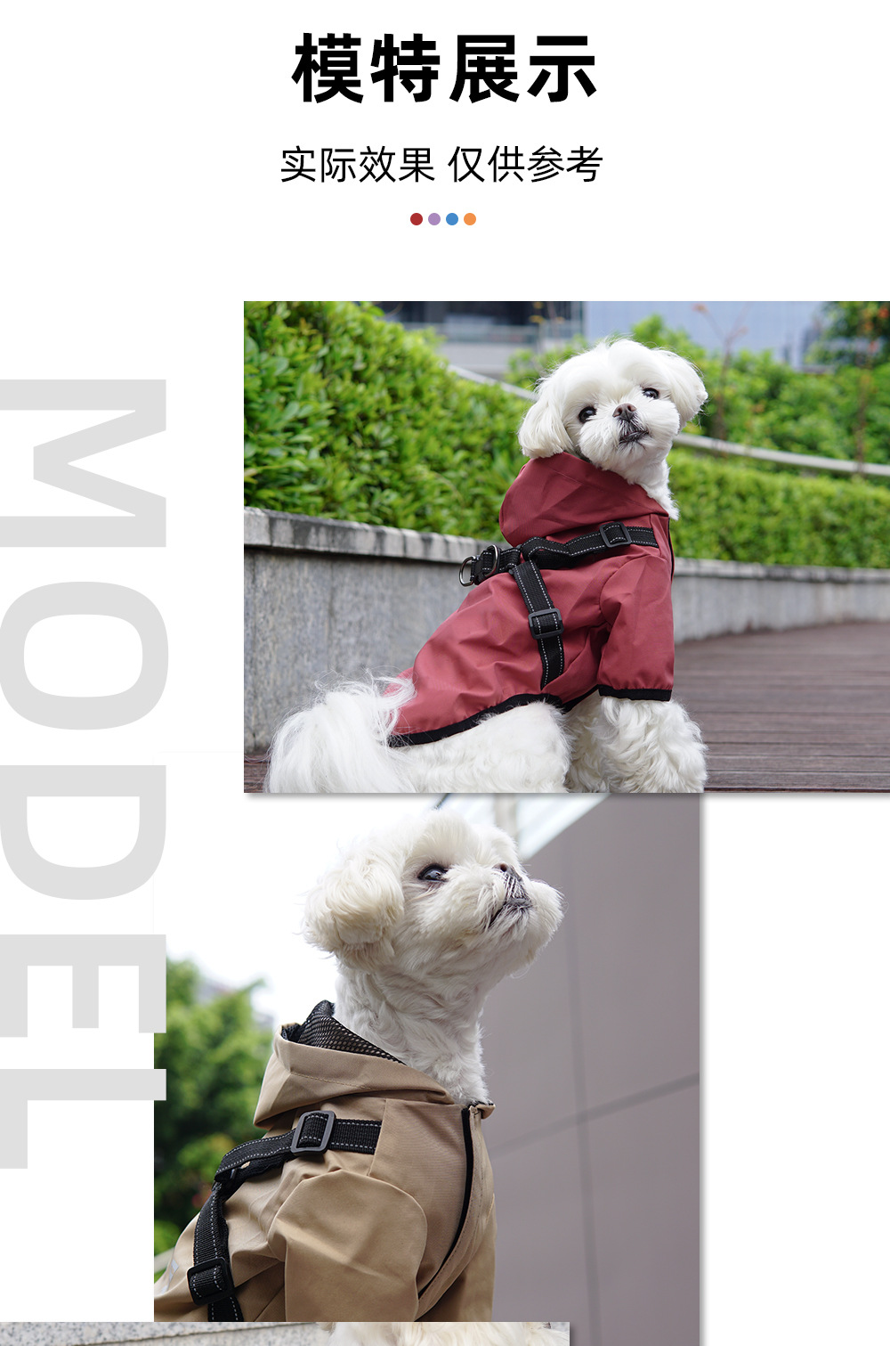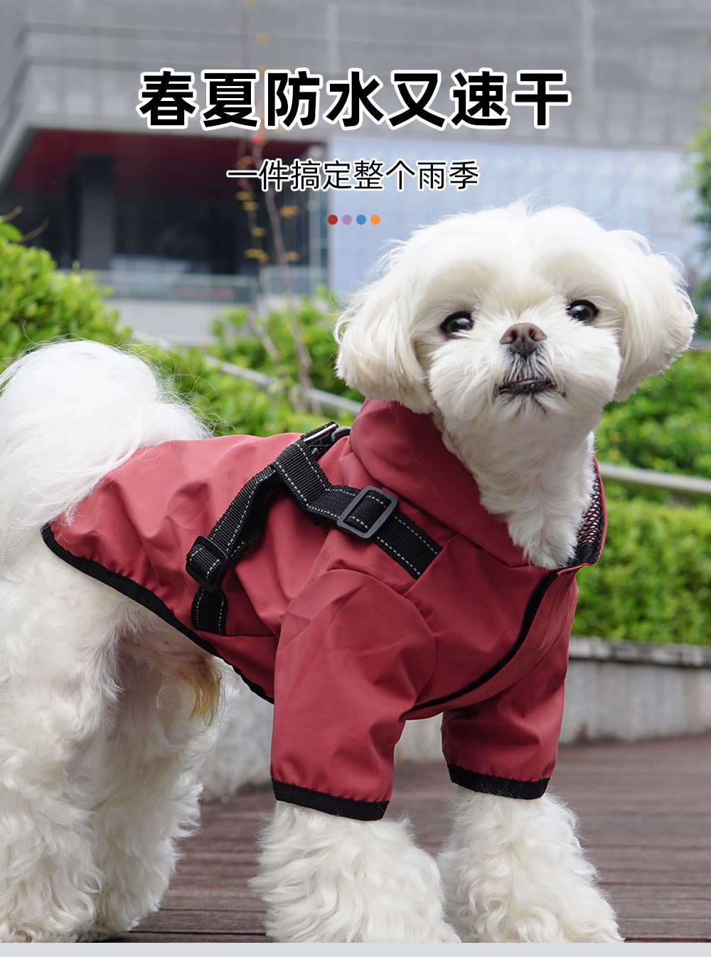 국경을 넘는 강아지 옷, 야외 반사 가슴 및 등받이 일체형 방수 비옷, 테디 비숑 소형견 재킷스토어 가기