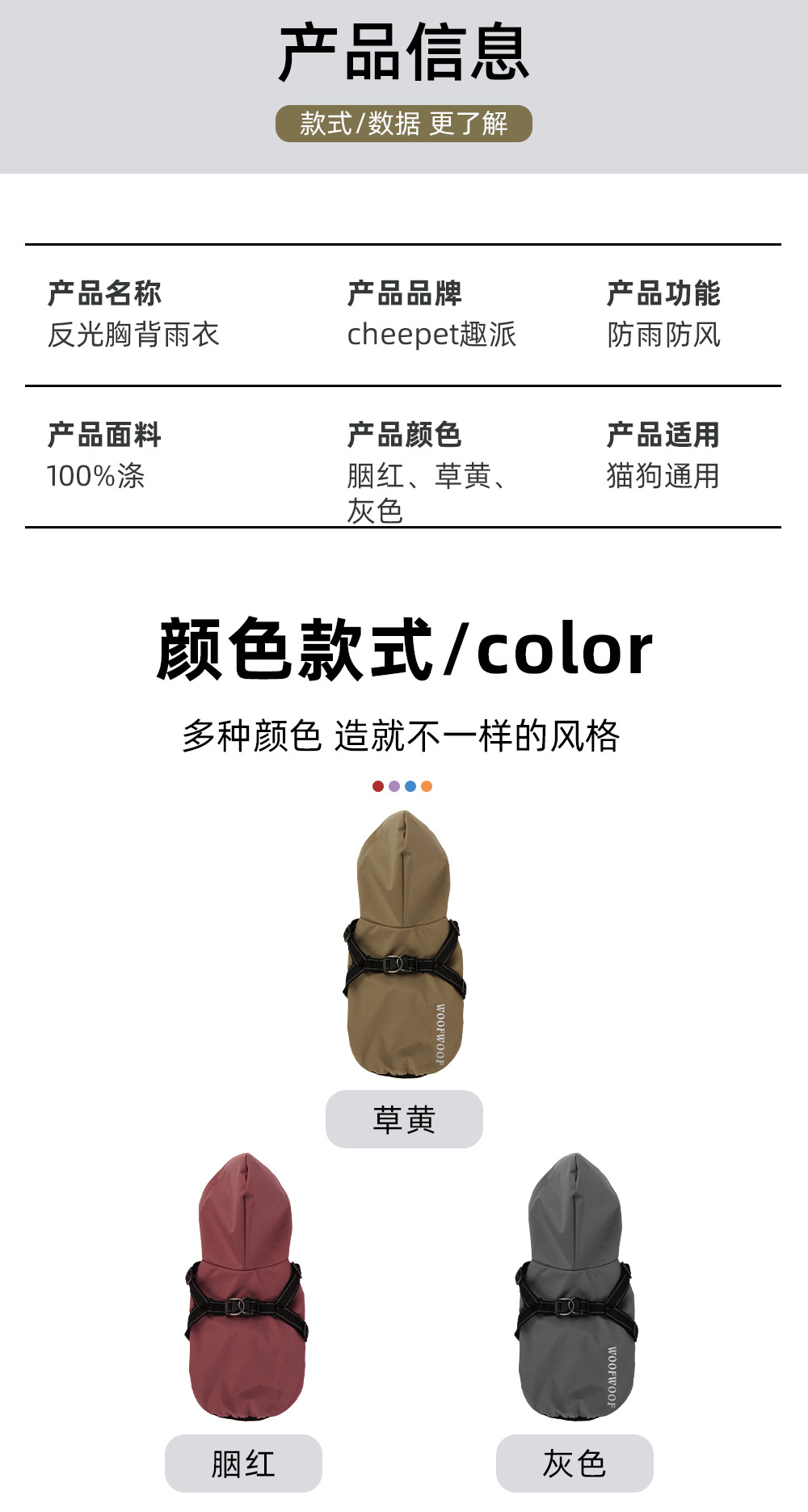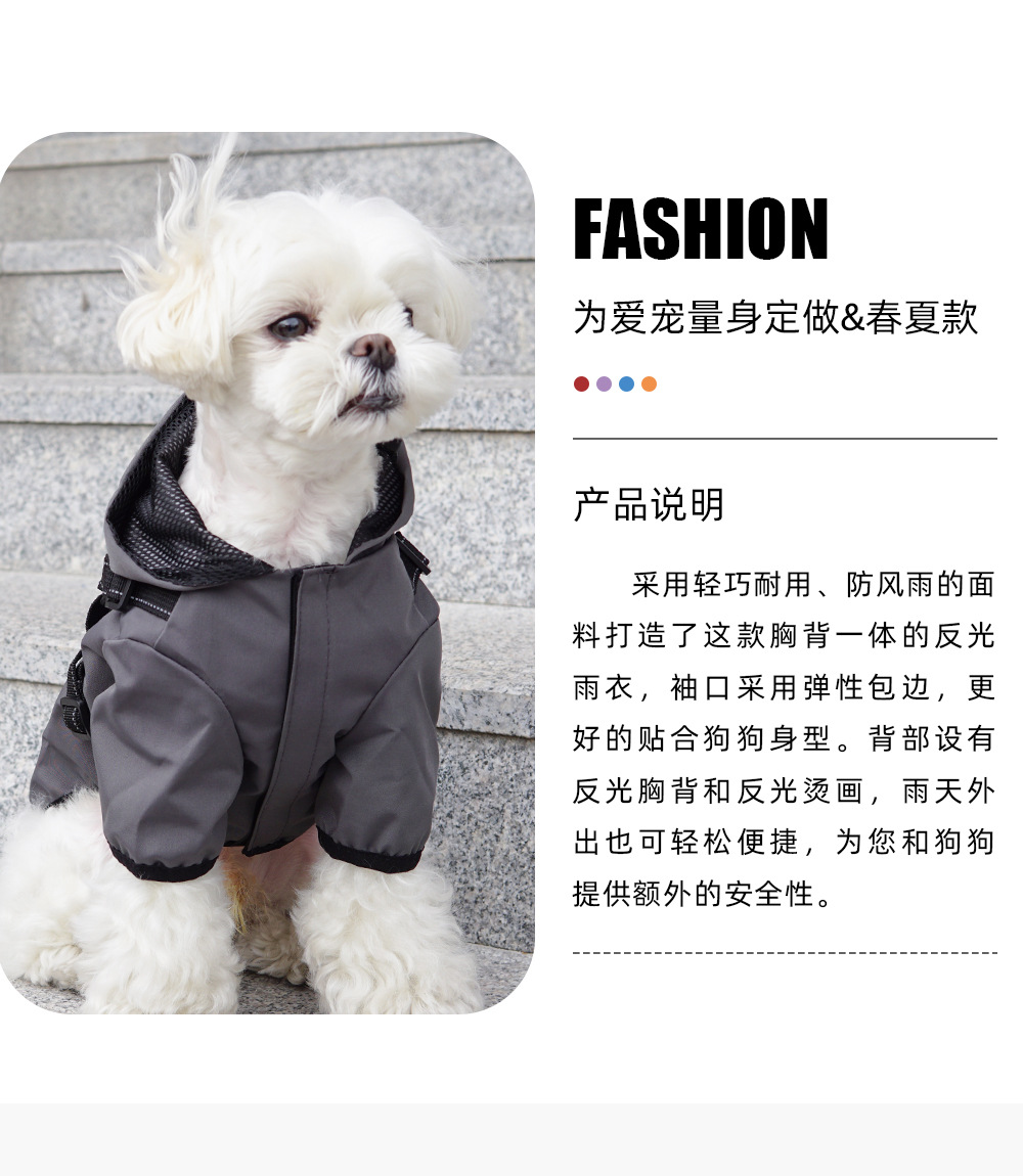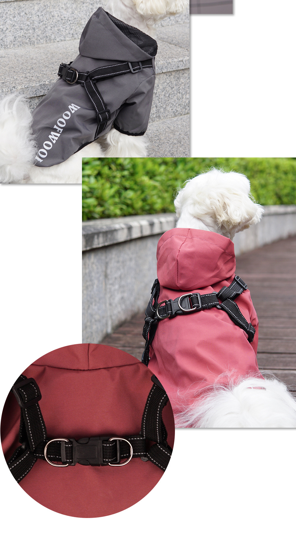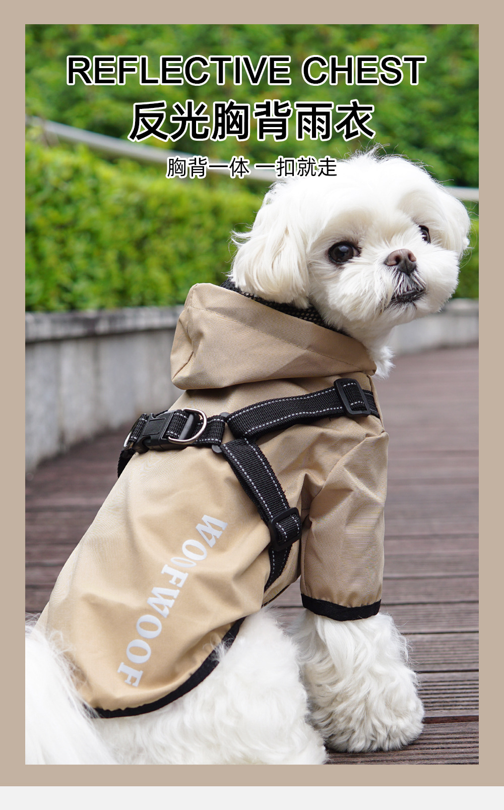 국경을 넘는 강아지 옷, 야외 반사 가슴 및 등받이 일체형 방수 비옷, 테디 비숑 소형견 재킷