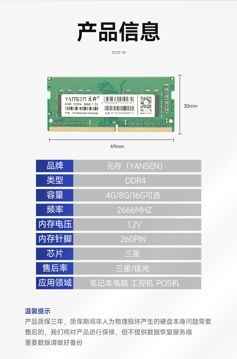 위안 메모리 (YANSEN) DDR4 급 산업용 제어 노트북 메모리 모듈 4G 8G 16G 2666MHz