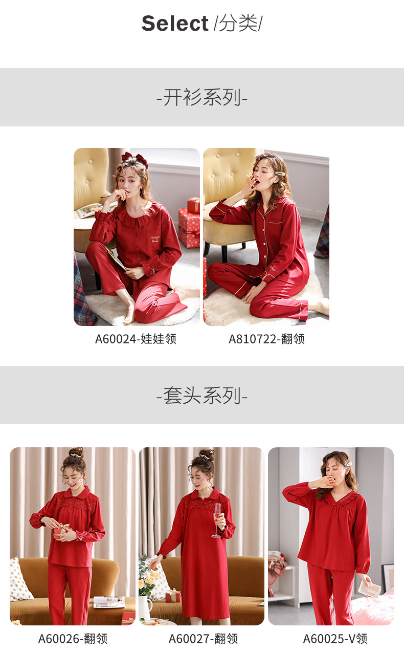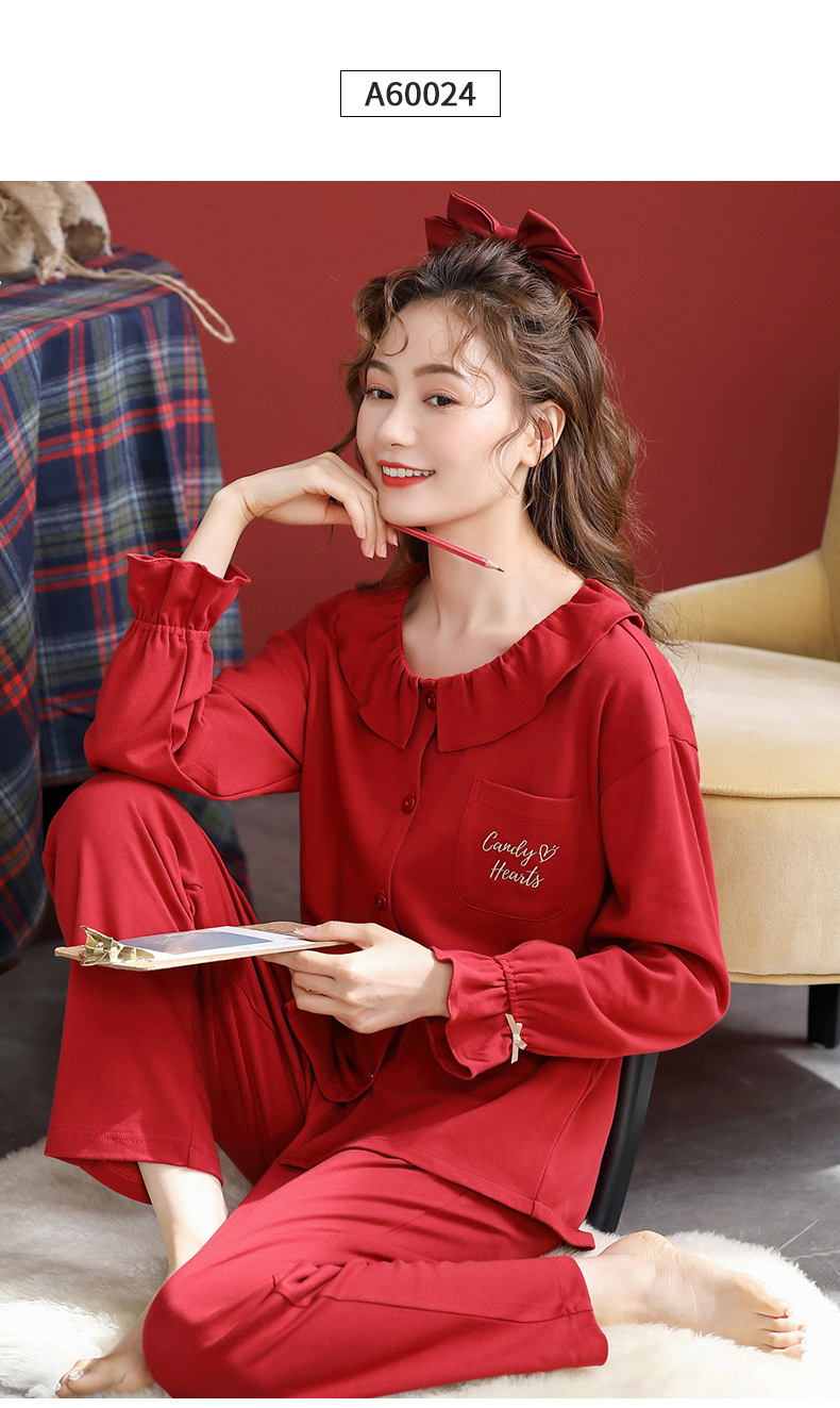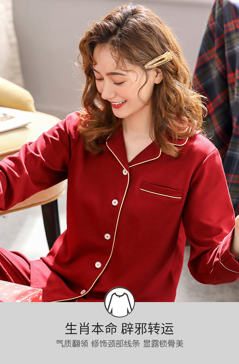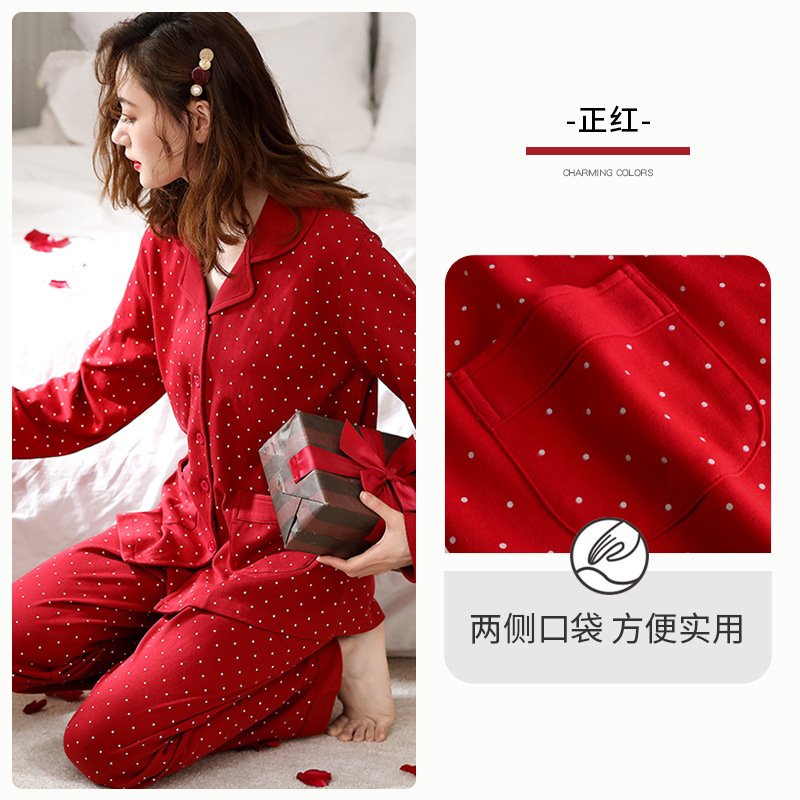 잠옷 여자의 봄과 가을 100% 면 긴팔 가정 옷 인생의 큰 빨간 토끼 가을과 겨울 결혼식 플러스 사이즈 년스토어 가기