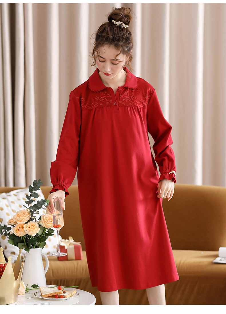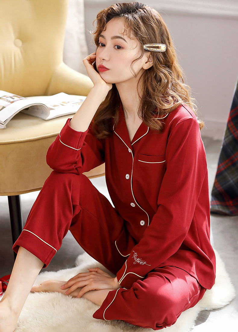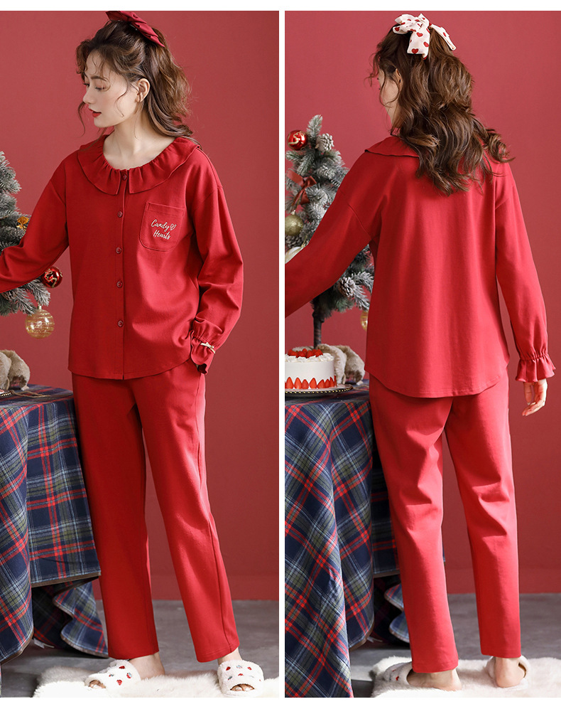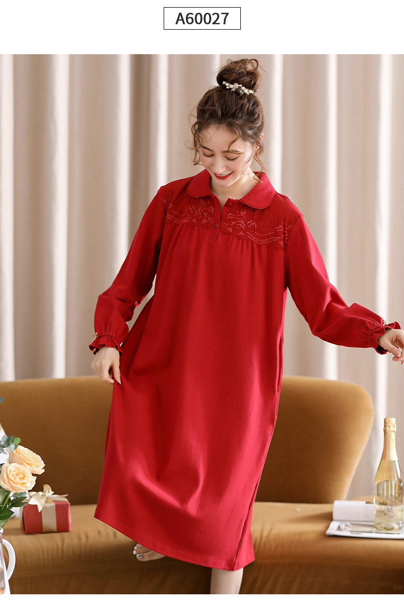잠옷 여자의 봄과 가을 100% 면 긴팔 가정 옷 인생의 큰 빨간 토끼 가을과 겨울 결혼식 플러스 사이즈 년스토어 가기