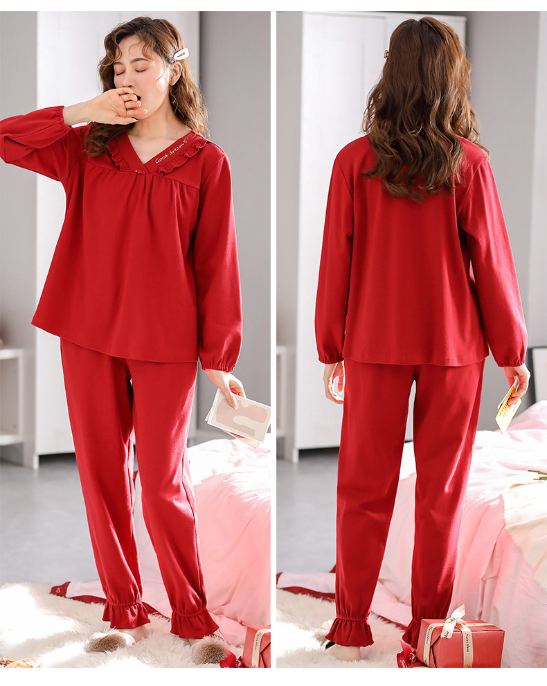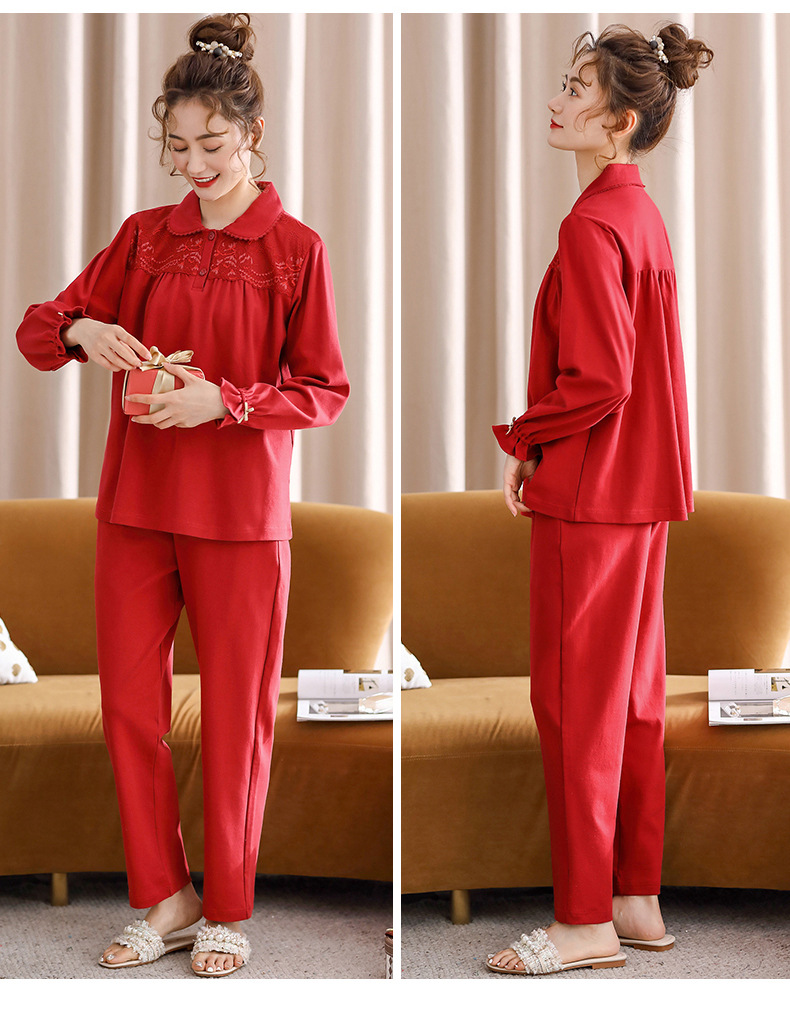 잠옷 여자의 봄과 가을 100% 면 긴팔 가정 옷 인생의 큰 빨간 토끼 가을과 겨울 결혼식 플러스 사이즈 년