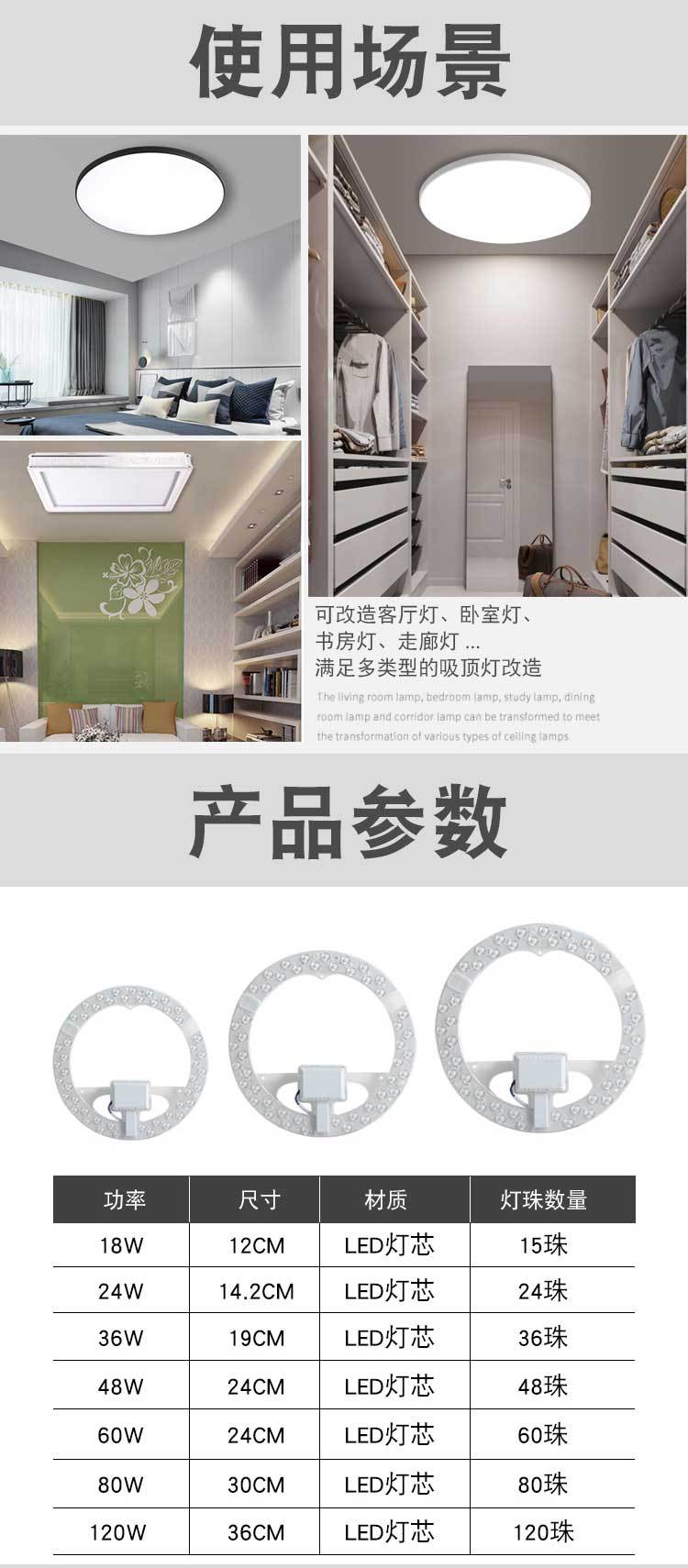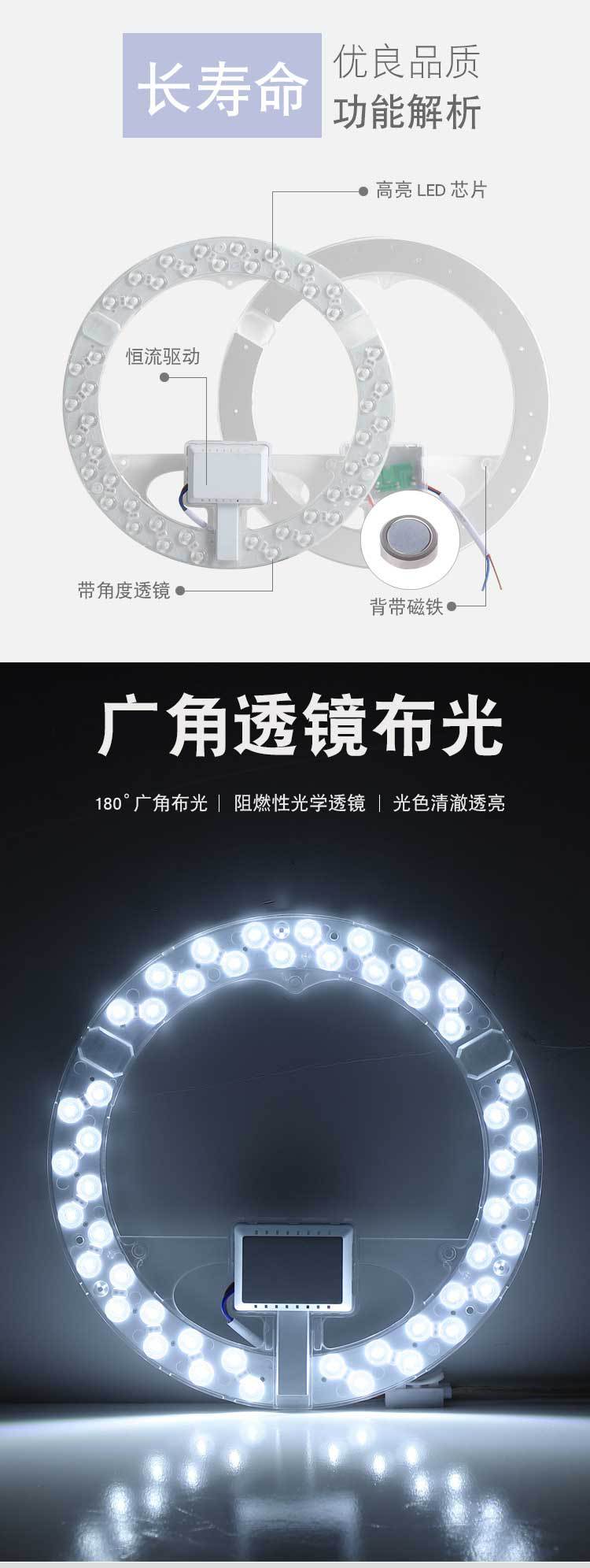 라운드 교체 심지 자석 흡착 비 펀치 패치 램프 패널 홈 개조 천장 램프 주도 광원 모듈