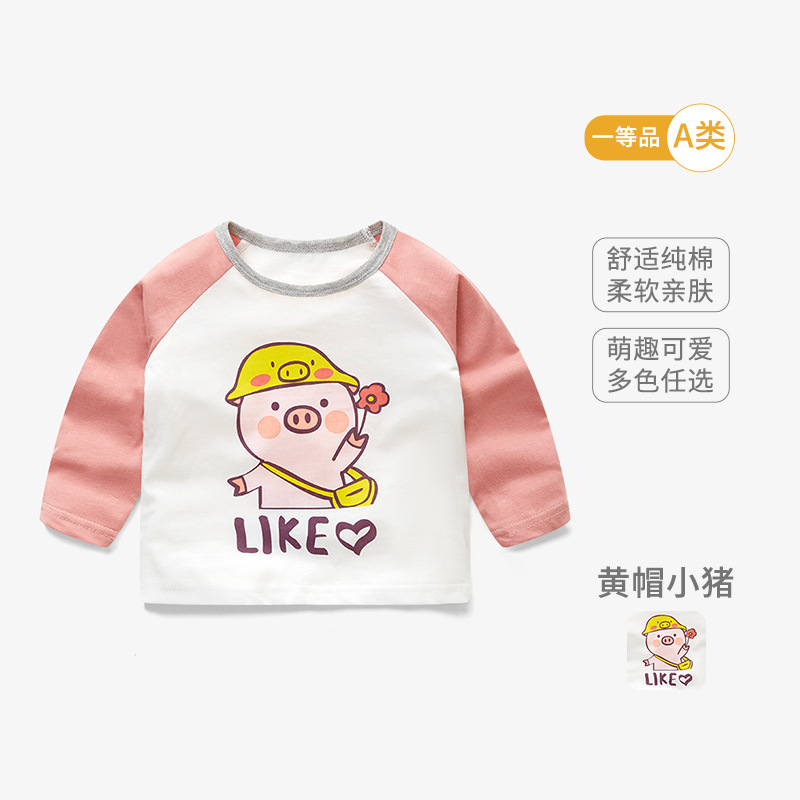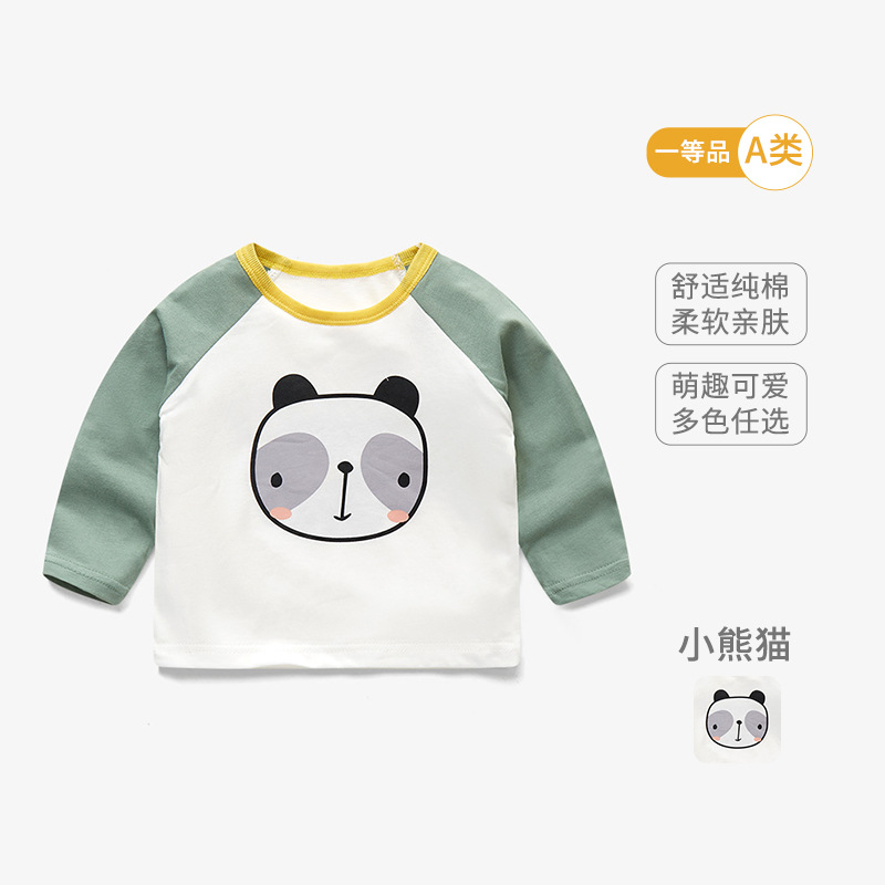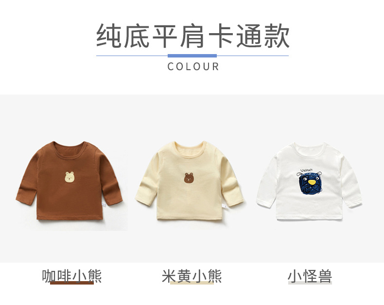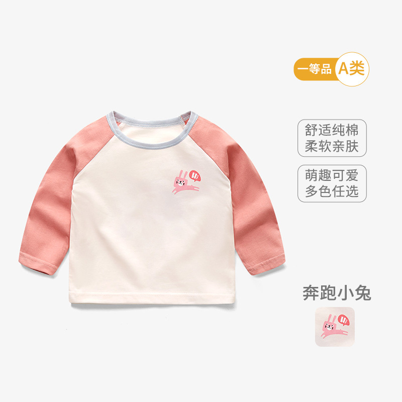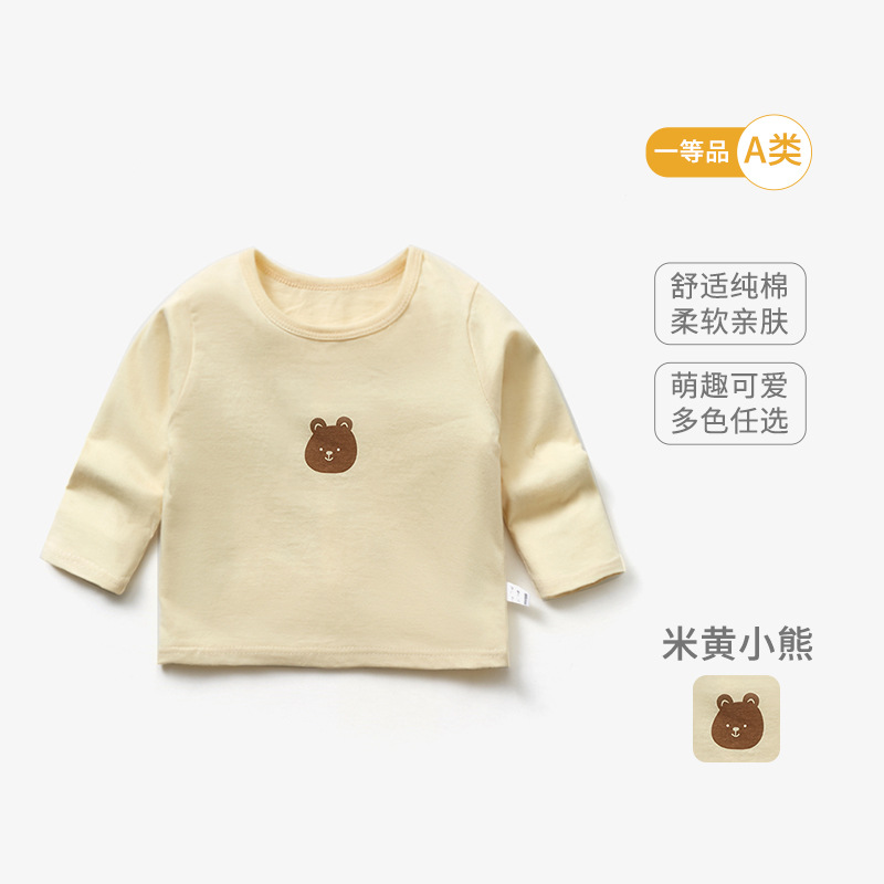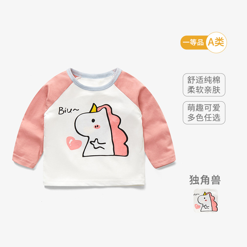 봄 아기 옷 순수 코튼 베이비 티셔츠 긴팔 어린이 바닥 셔츠 얇은 유아 만화 탑 라운드 넥 1-3
