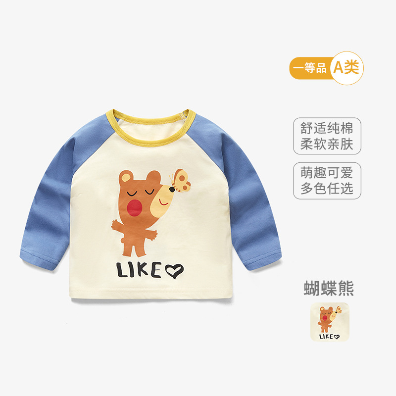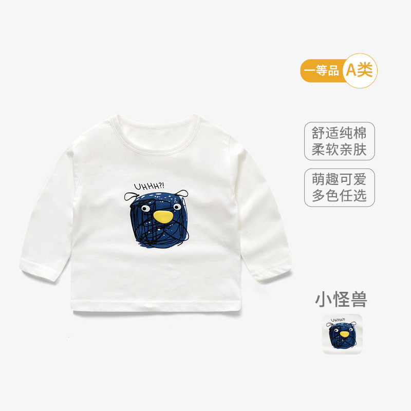 봄 아기 옷 순수 코튼 베이비 티셔츠 긴팔 어린이 바닥 셔츠 얇은 유아 만화 탑 라운드 넥 1-3스토어 가기