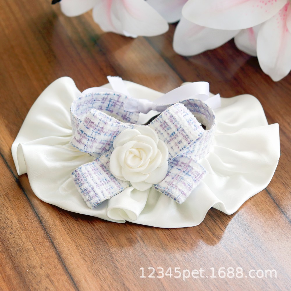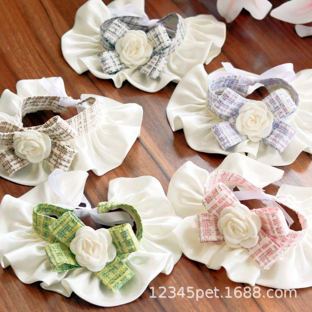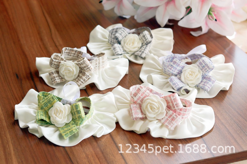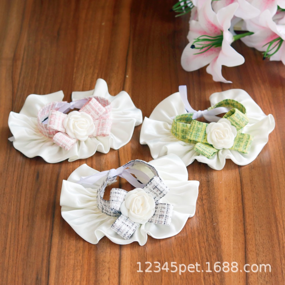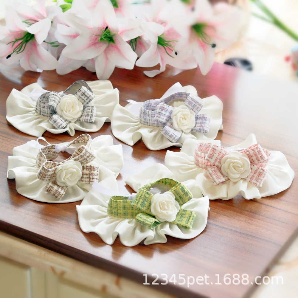 샤넬 스타일 애완 동물 턱받이 타액 타월 레이스 턱받이 개 고양이 레이스 칼라 칼라 스카프 장식