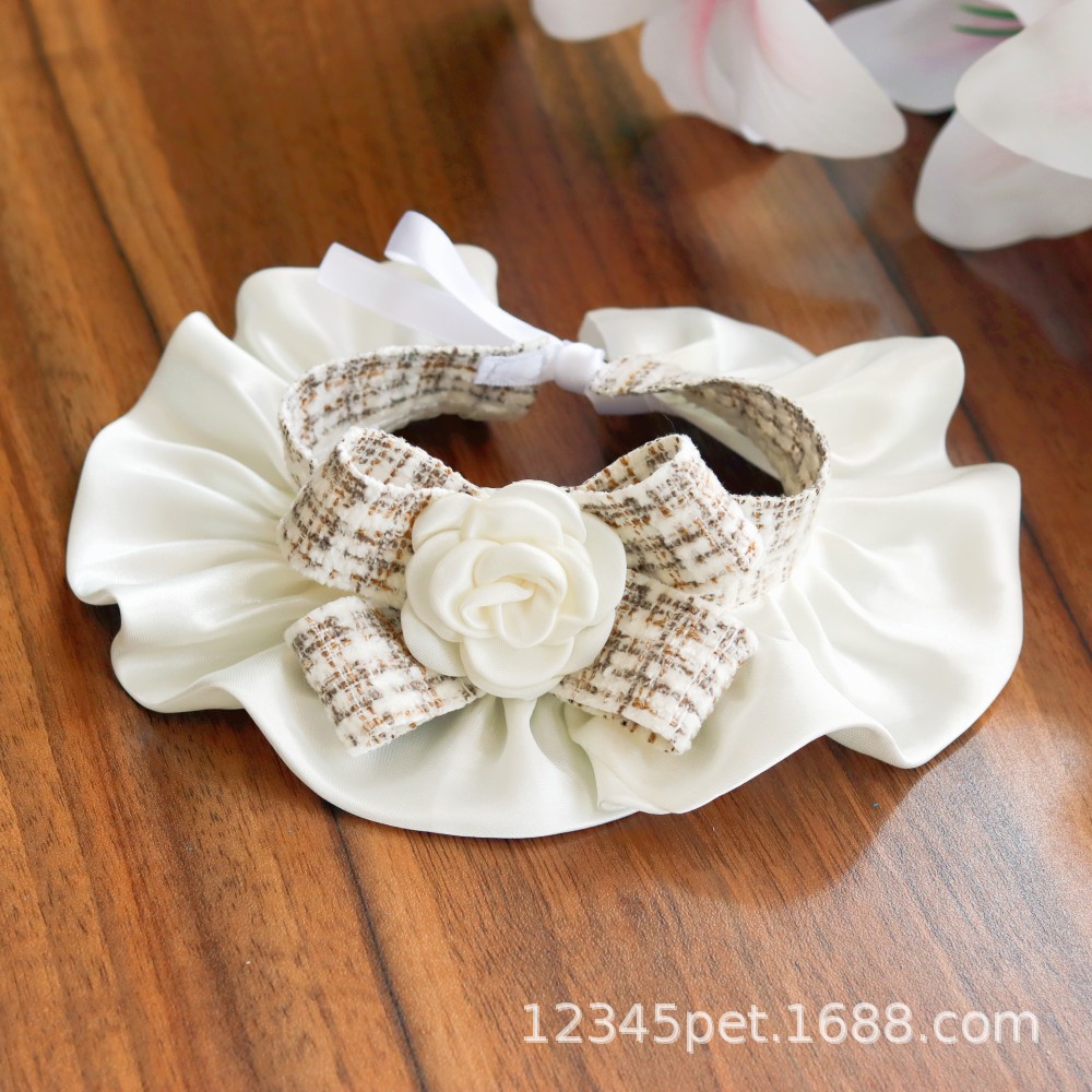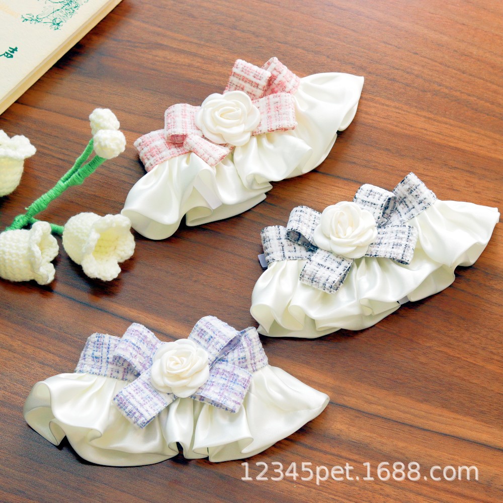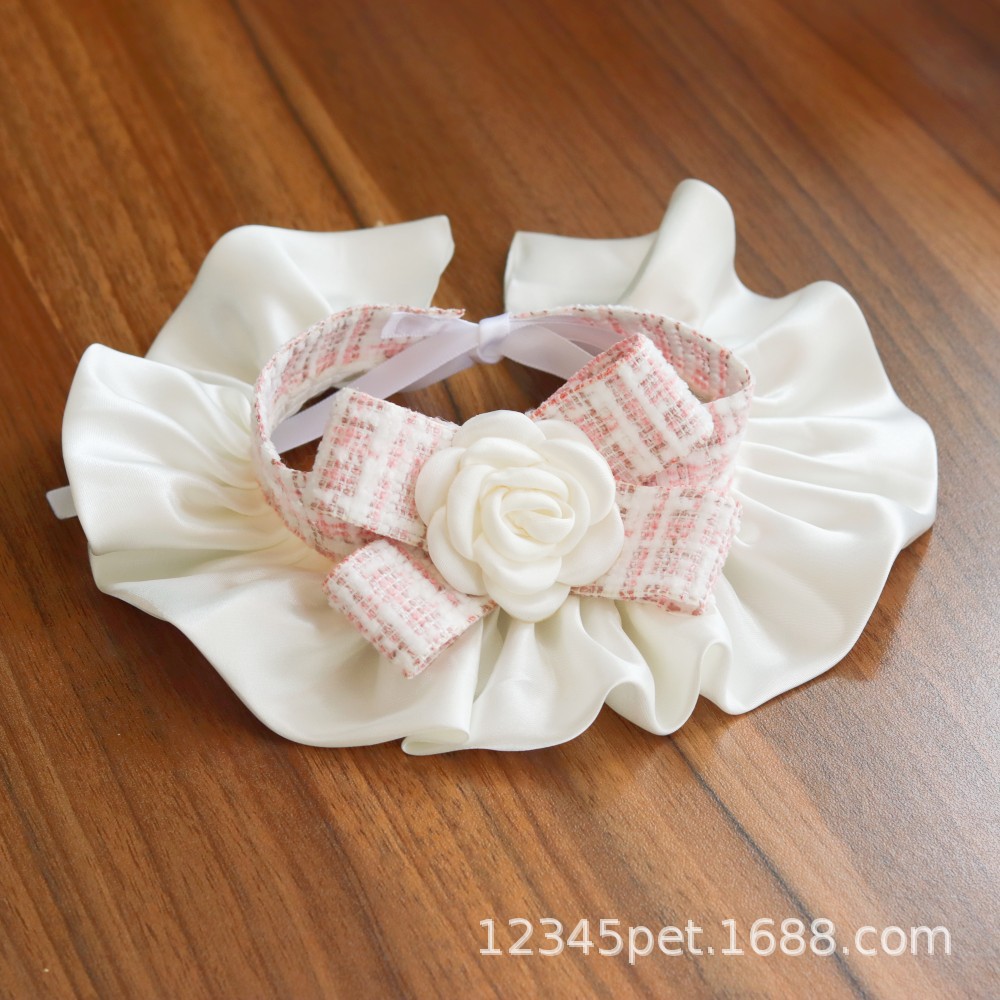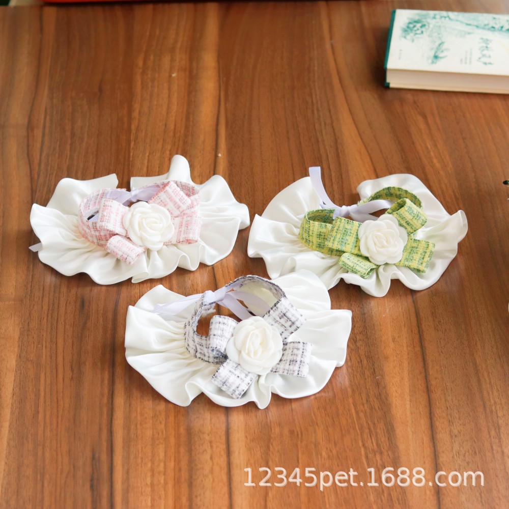 샤넬 스타일 애완 동물 턱받이 타액 타월 레이스 턱받이 개 고양이 레이스 칼라 칼라 스카프 장식