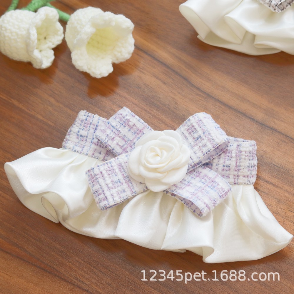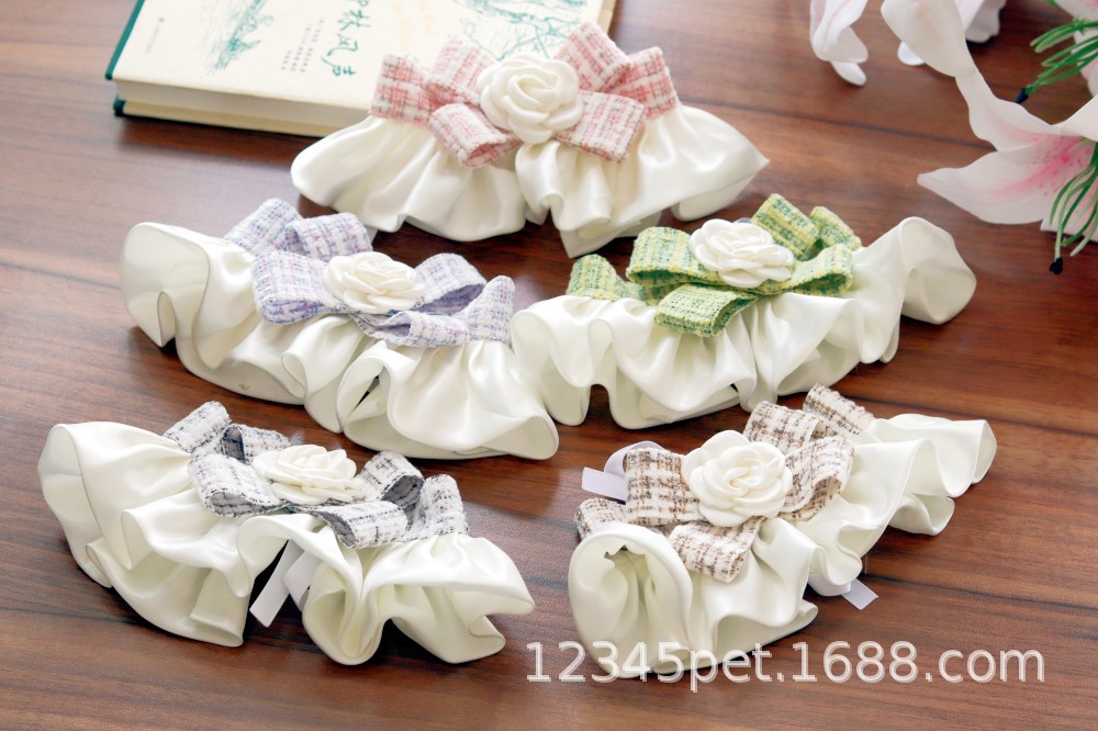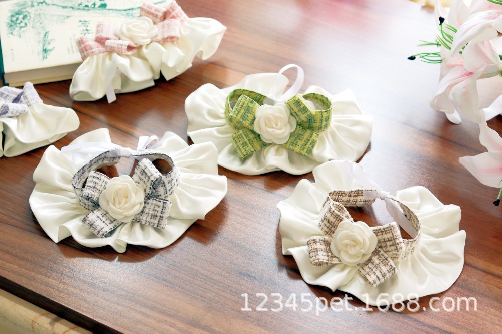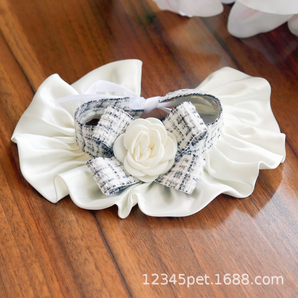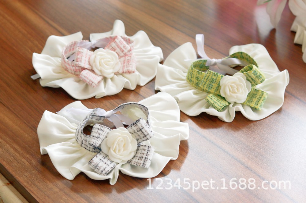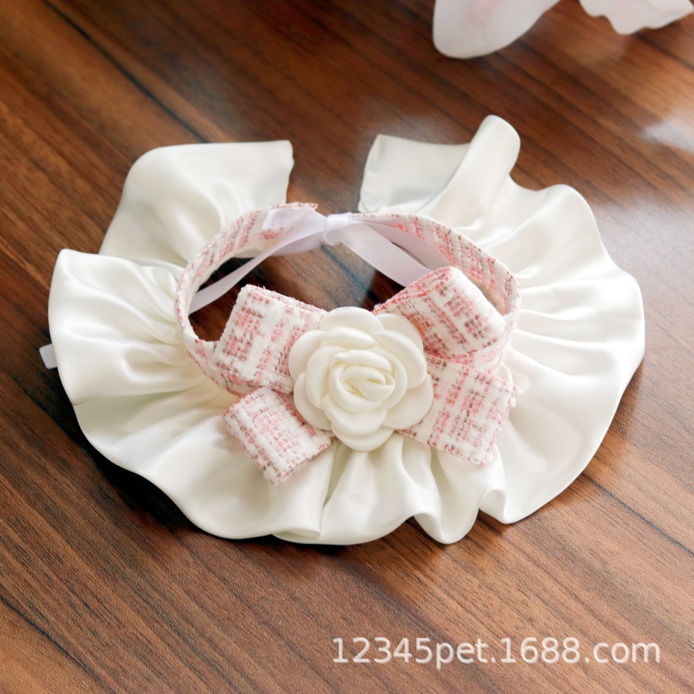 샤넬 스타일 애완 동물 턱받이 타액 타월 레이스 턱받이 개 고양이 레이스 칼라 칼라 스카프 장식