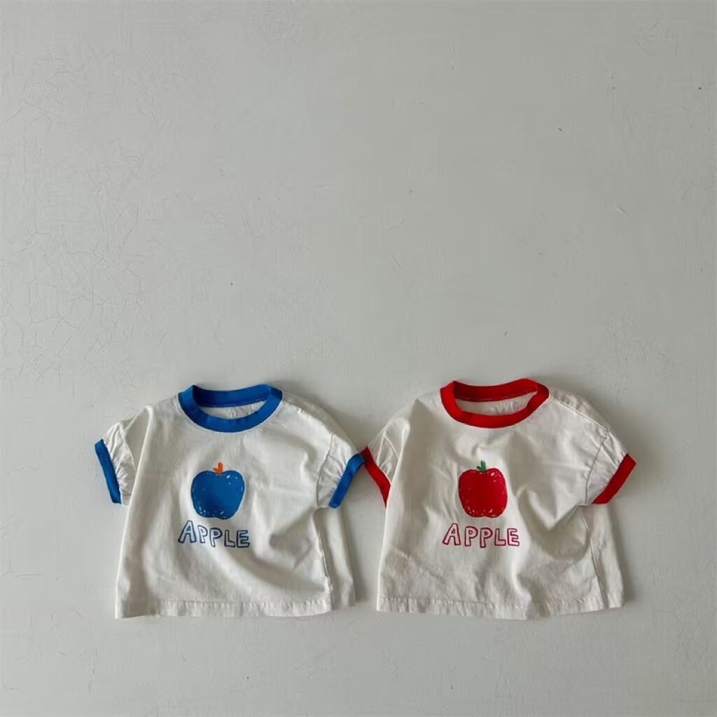 한국 스타일 아동복 여름 베이비 탑 아기 소년과 소녀의 티셔츠 영어 과일 귀여운 모든 매치 캐주얼스토어 가기