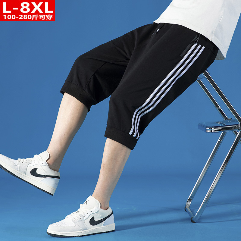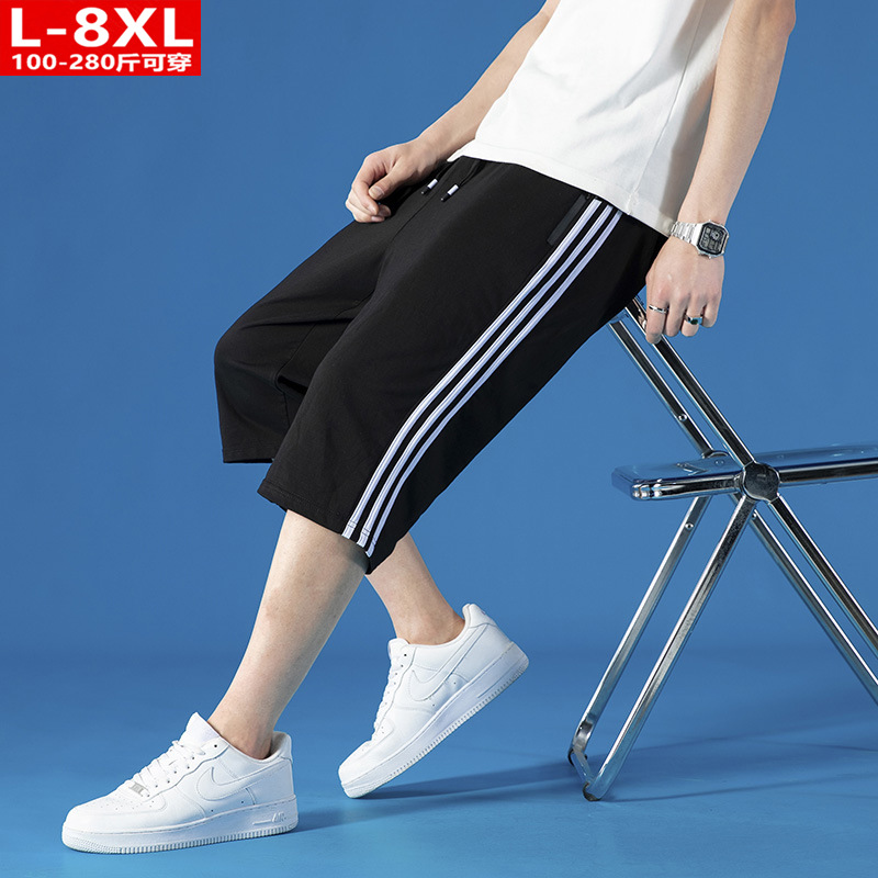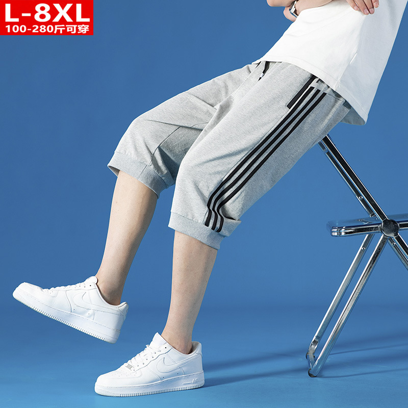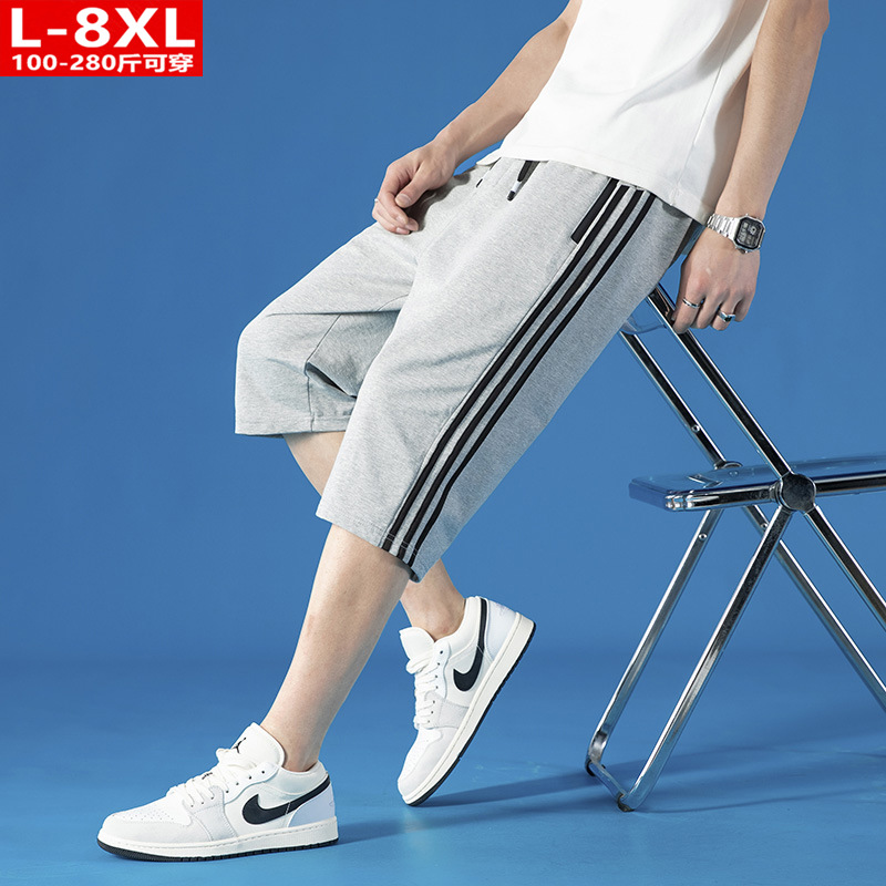 여름 유행 남성 3 바 크롭 팬츠 통통한 사이즈 플러스 뚱뚱한 느슨한 바지 면 스포츠 캐주얼 크롭 팬츠스토어 가기