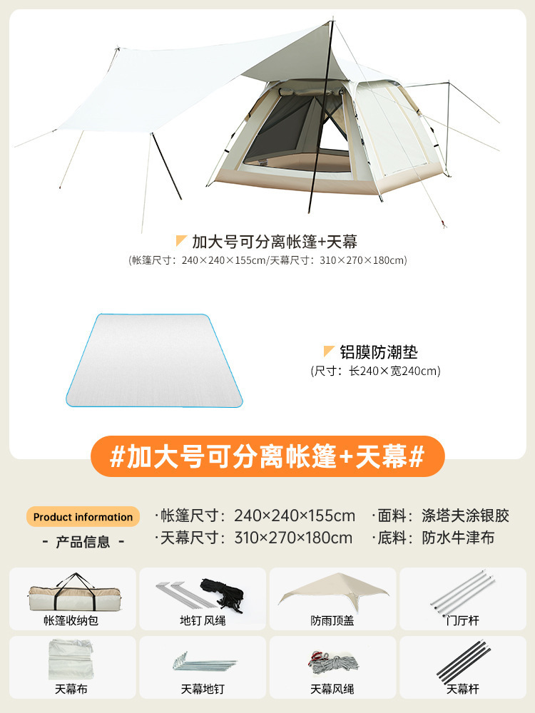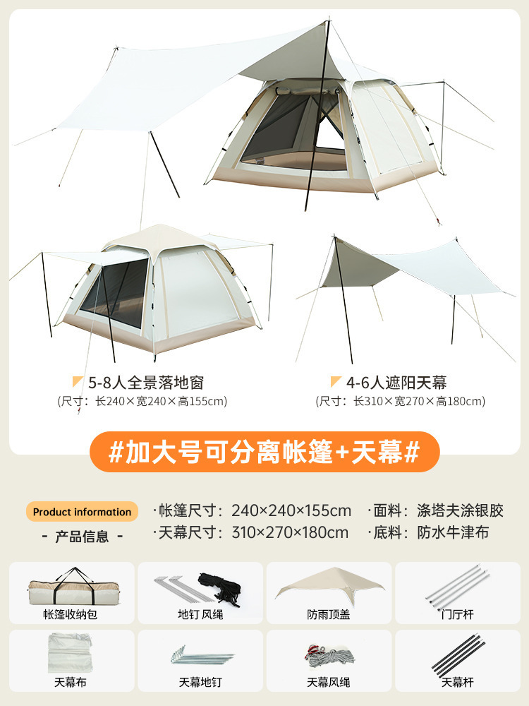 텐트 캐노피 2-in -1 자동 퀵 오픈 옥스포드 천 실버 코팅 선 스크린 파크 비치 야외 캠핑 장비 텐트