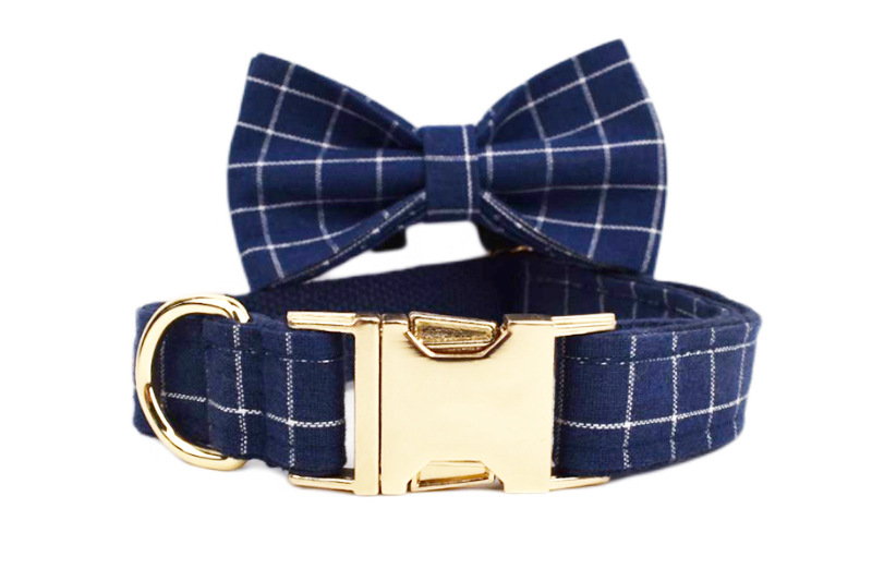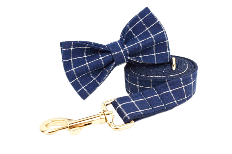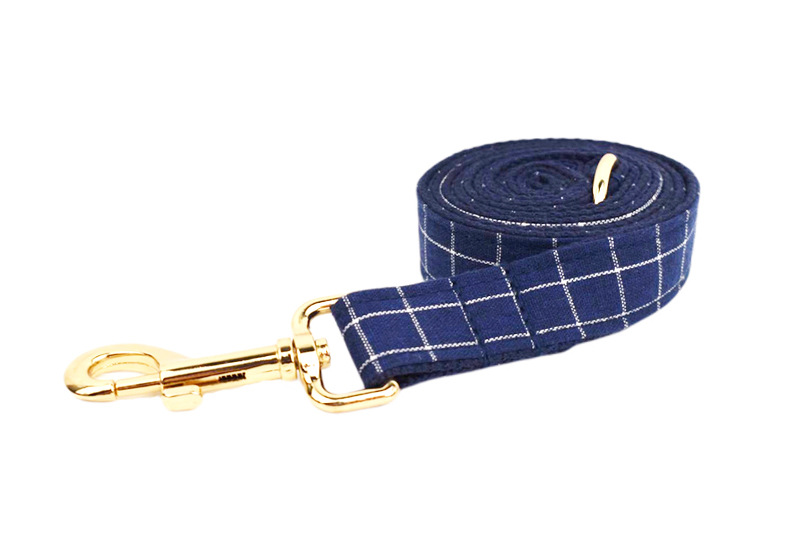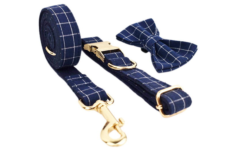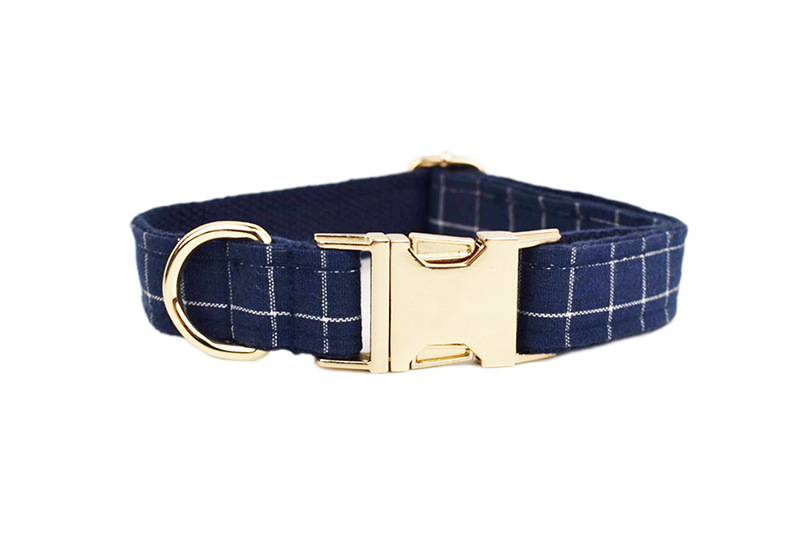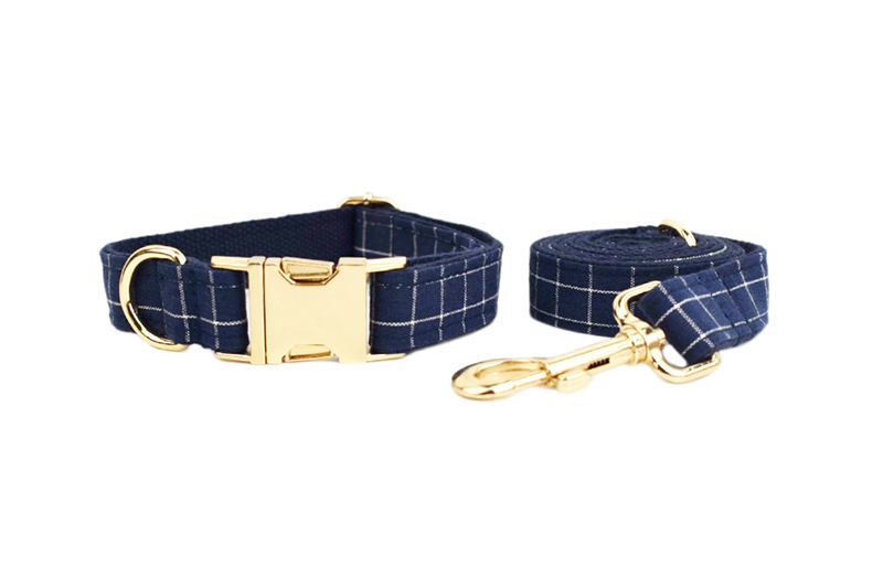 다크 블루 격자 무늬 애완 동물 칼라 견인 로프 개 목걸이 개 산책 로프 대형 중형 소형 개 체인 개 목 반지