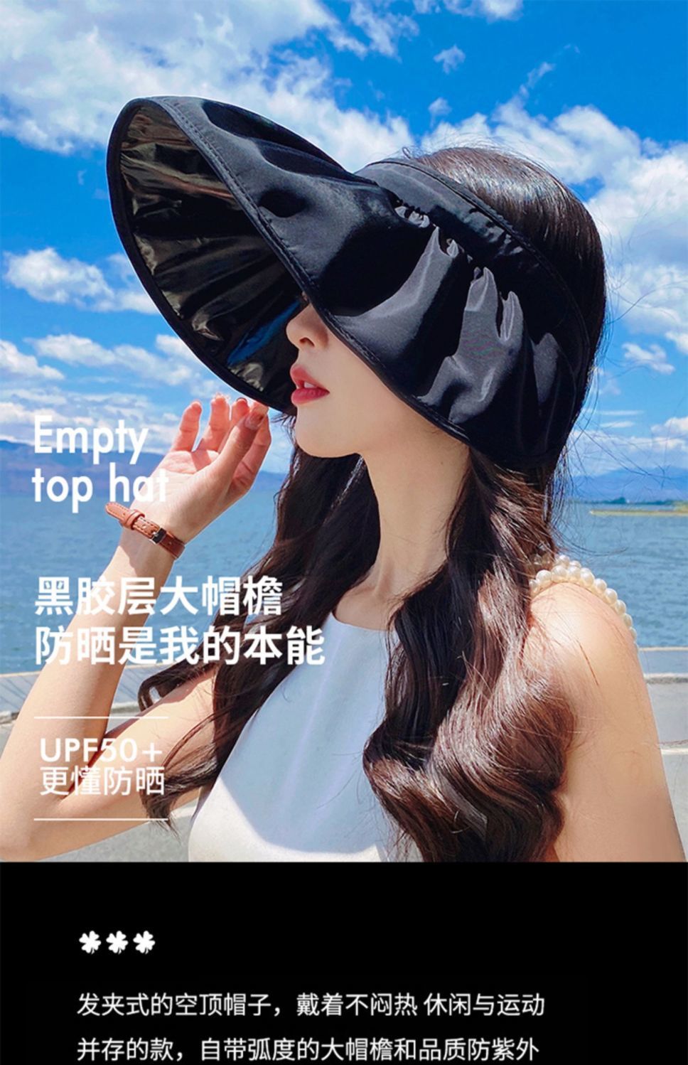블랙 고무 선 스크린 쉘 캡 여성용 자외선 차단 태양 모자 큰 챙 어부 모자 접이식 태양 모자 도매