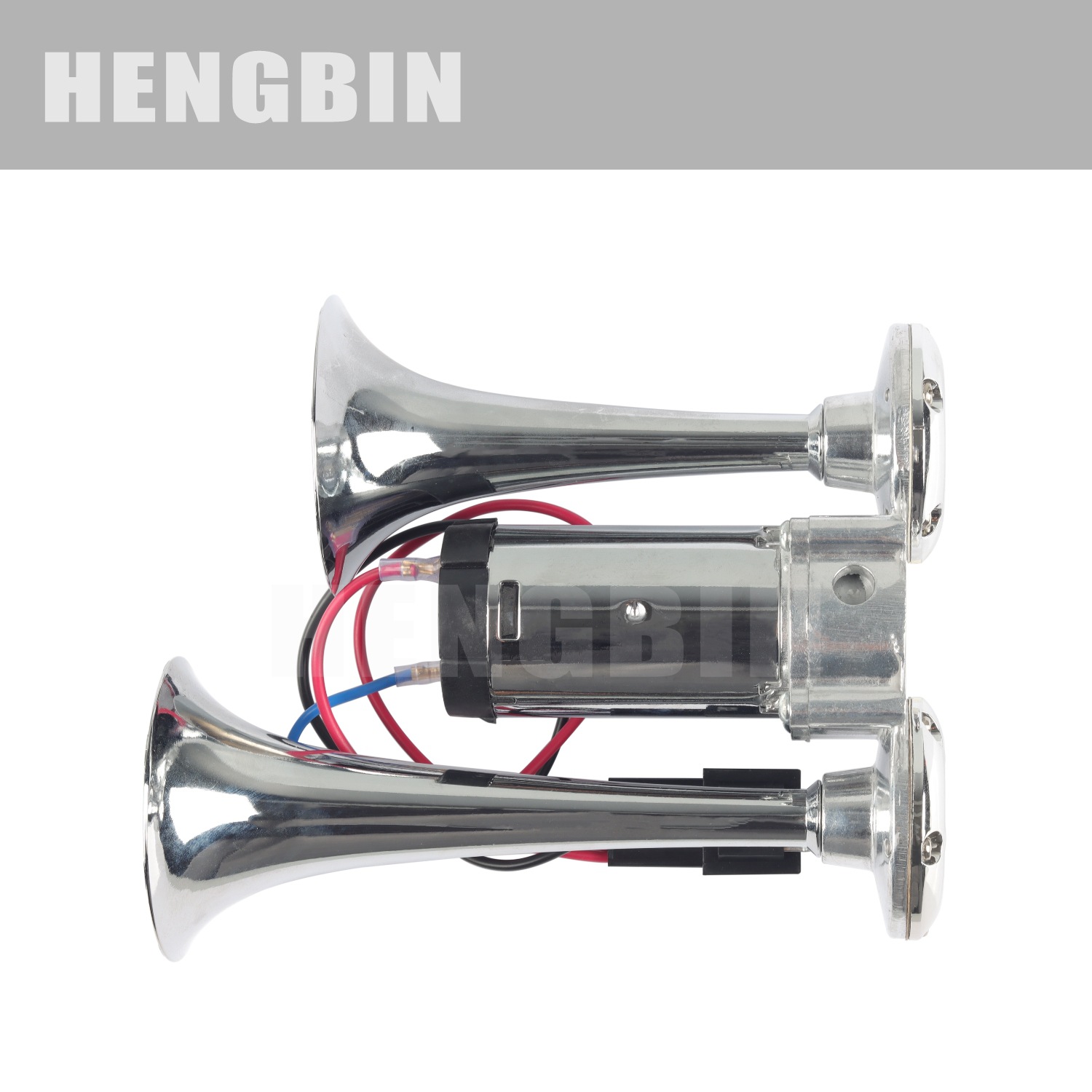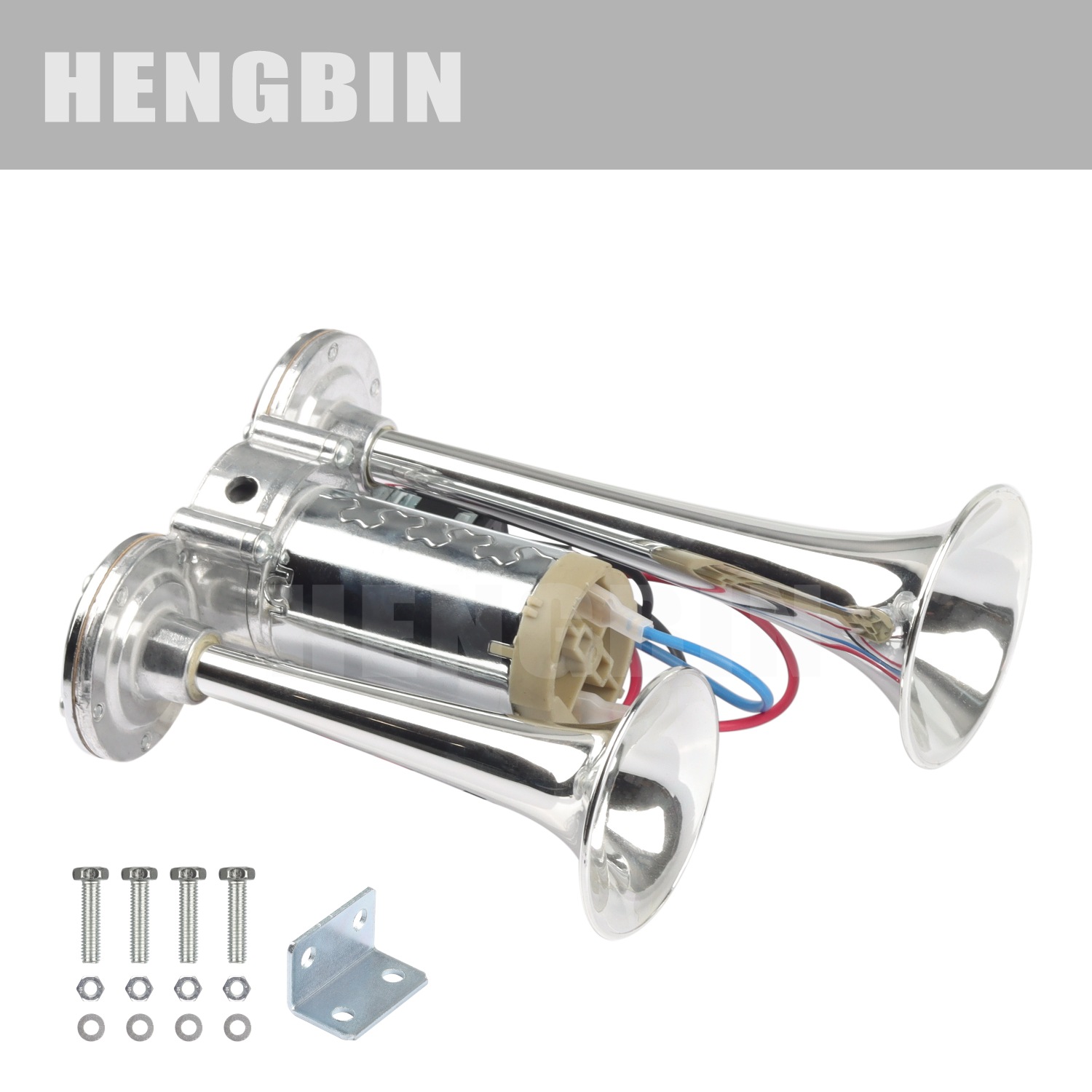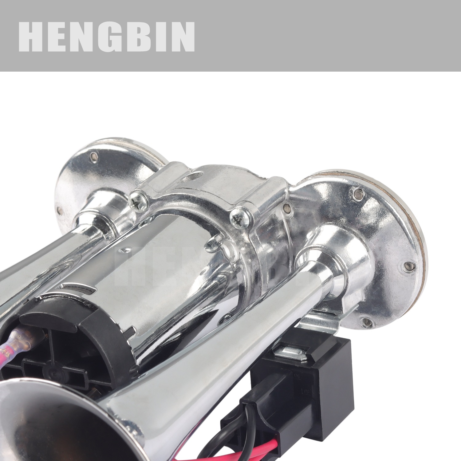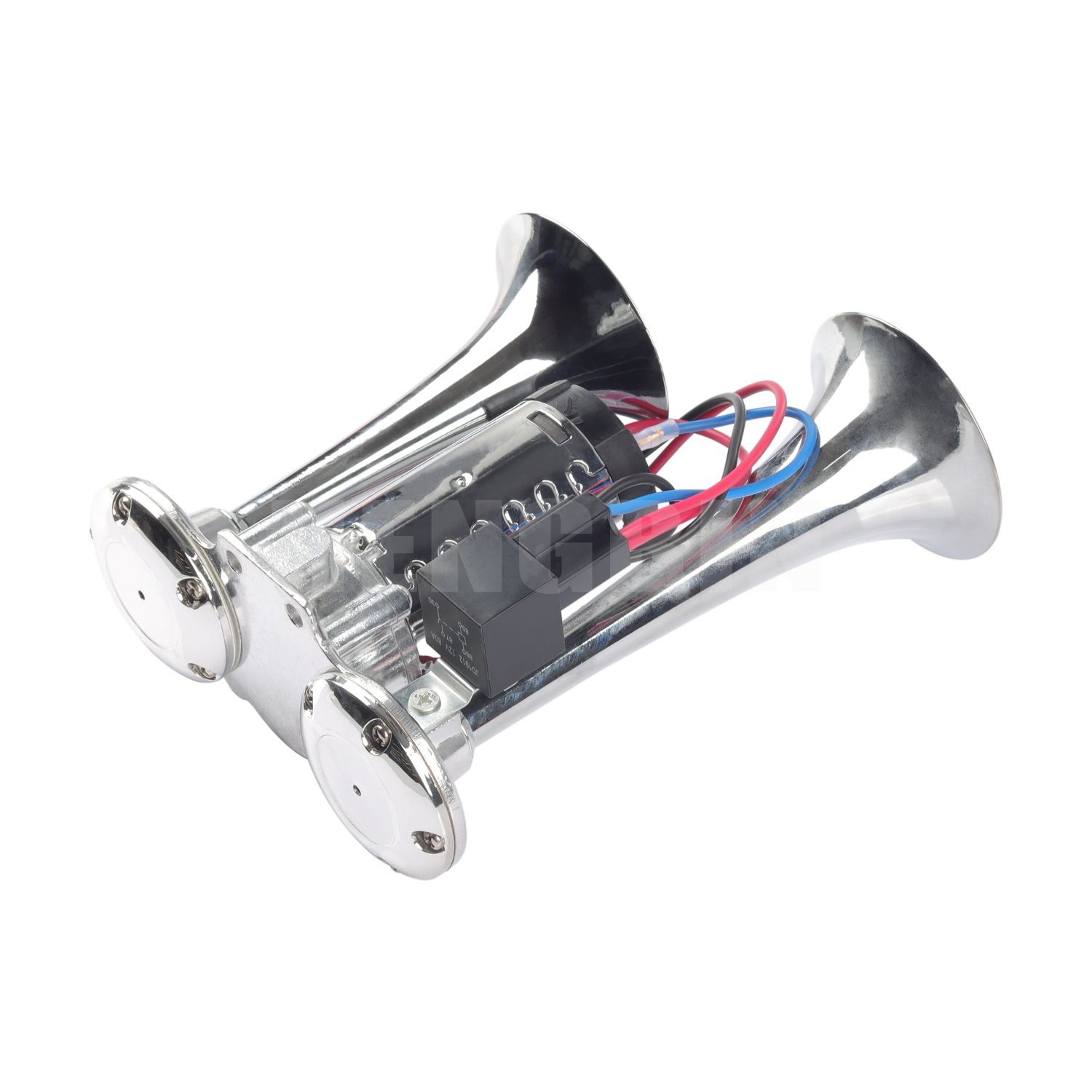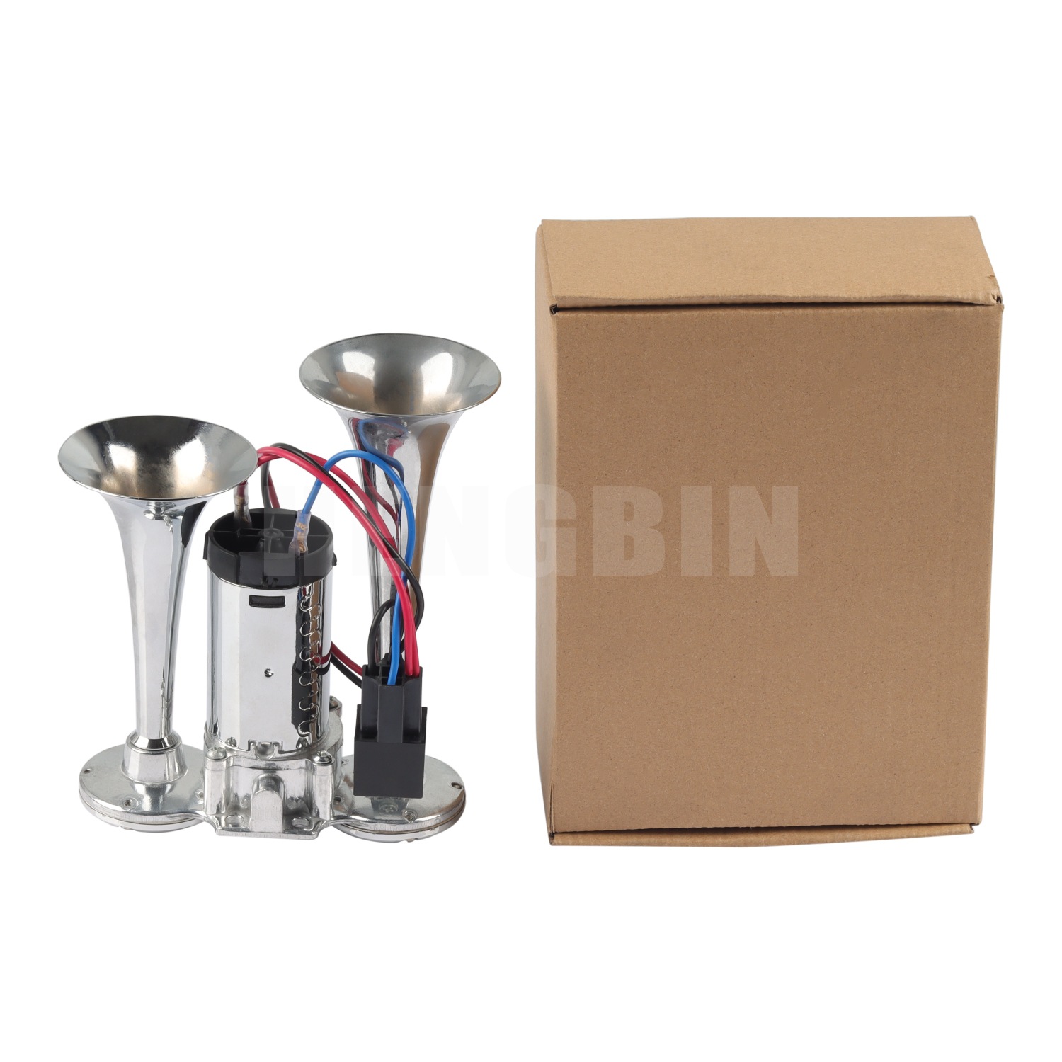 자동차 경적 12V24V 범용 이중 튜브 공기 펌프 29cm 금속 일체형 이중 튜브 공기 경적 실버스토어 가기
