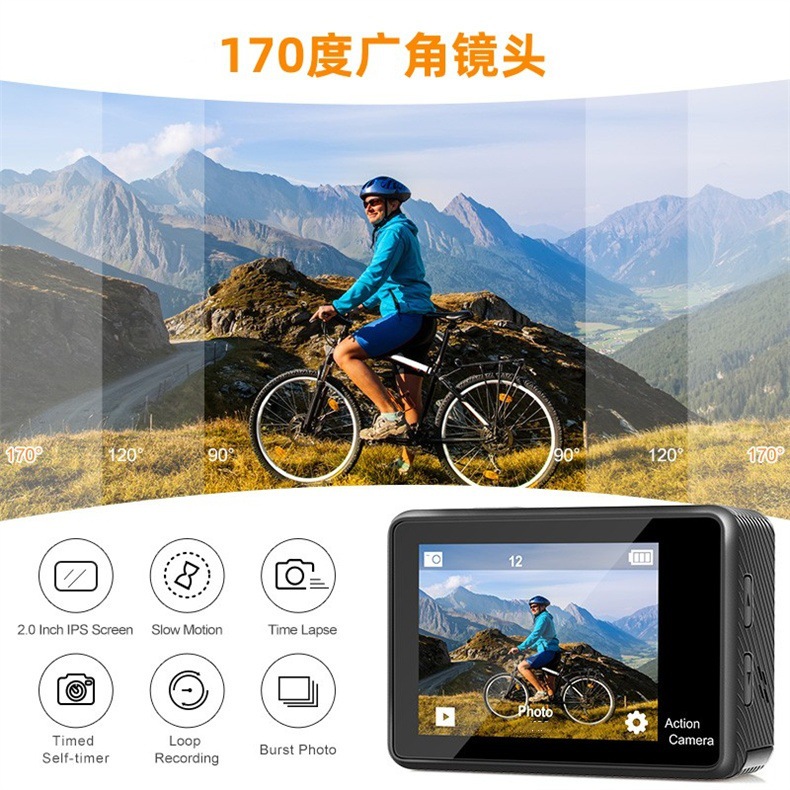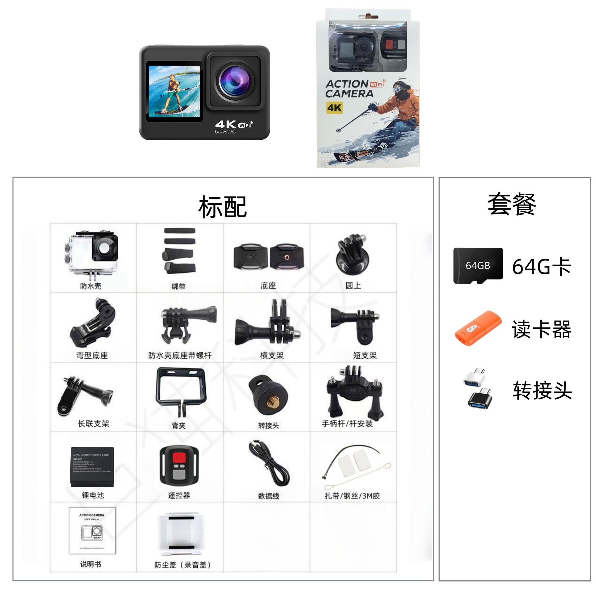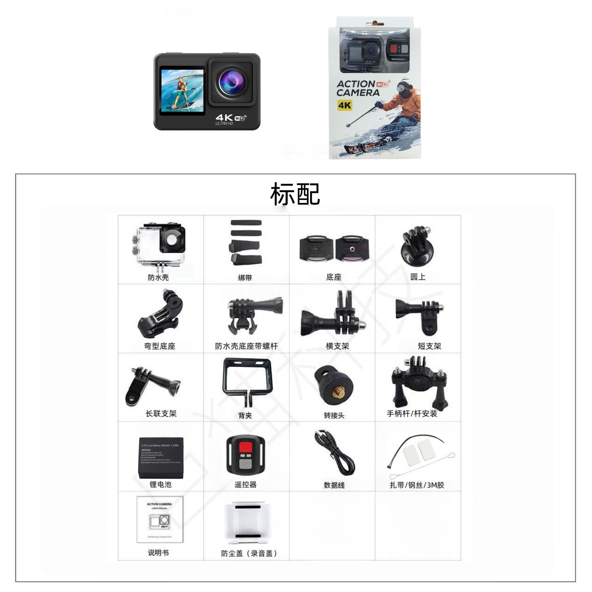크로스 보더 듀얼 컬러 스크린 스포츠 카메라 4K60 프레임 HD 흔들림 방지 방수 다이빙 카메라 와이파이 카메라 도매스토어 가기