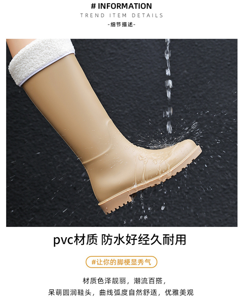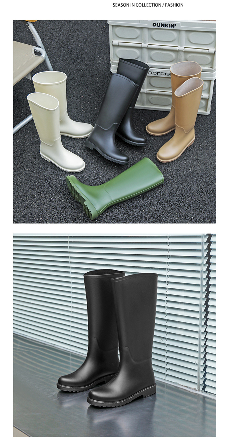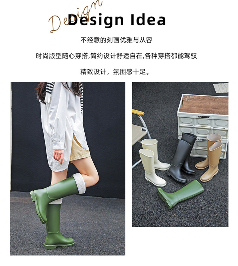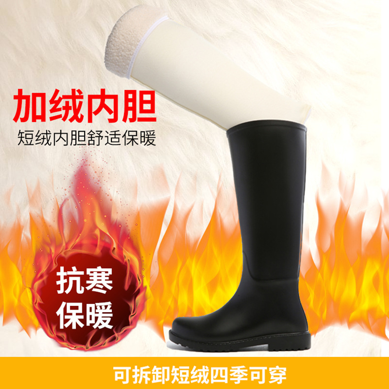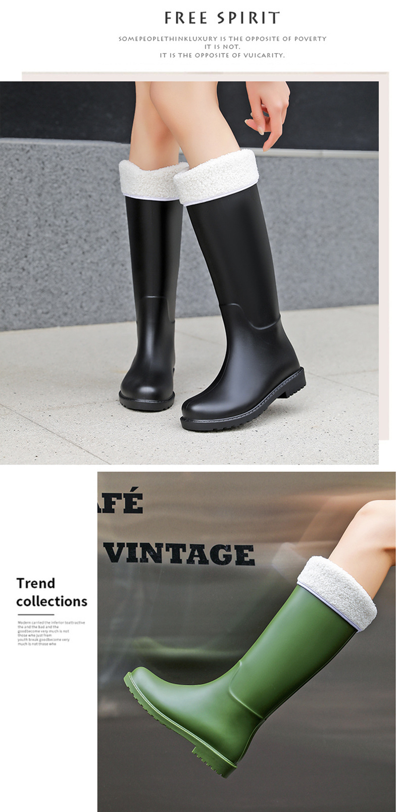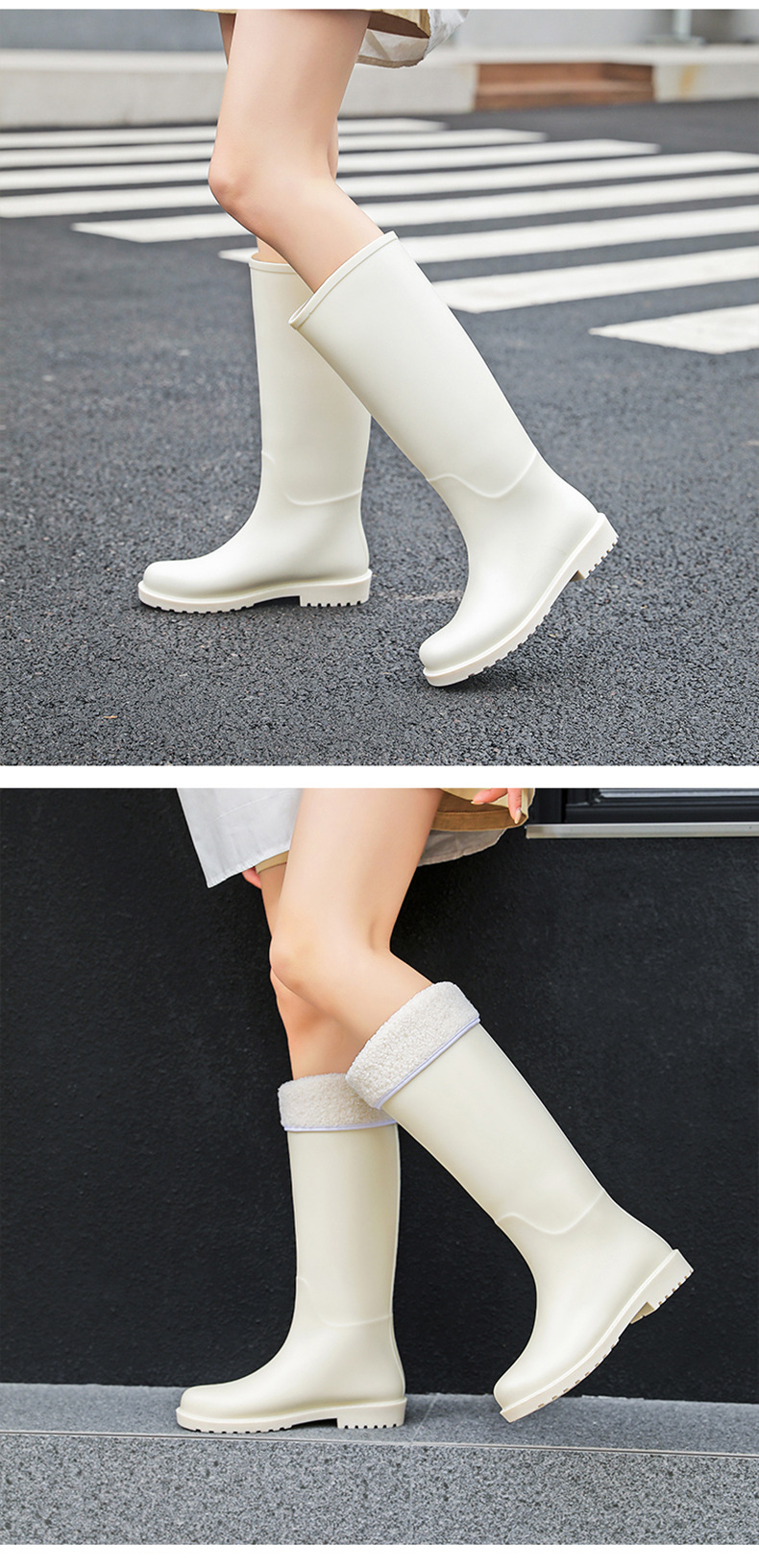 패션 한국 스타일 높은 배럴 장화 여자의 기모 장화 미끄럼 방지 방수 신발 야외 긴 배럴 기사 부츠 오버 슈즈 고무 신발 여성스토어 가기