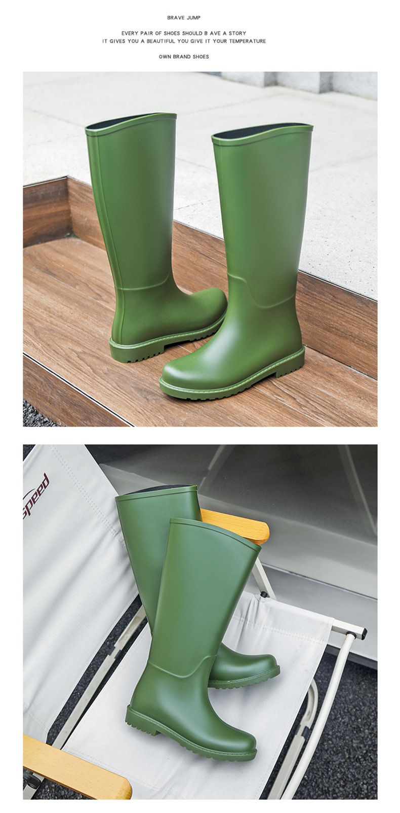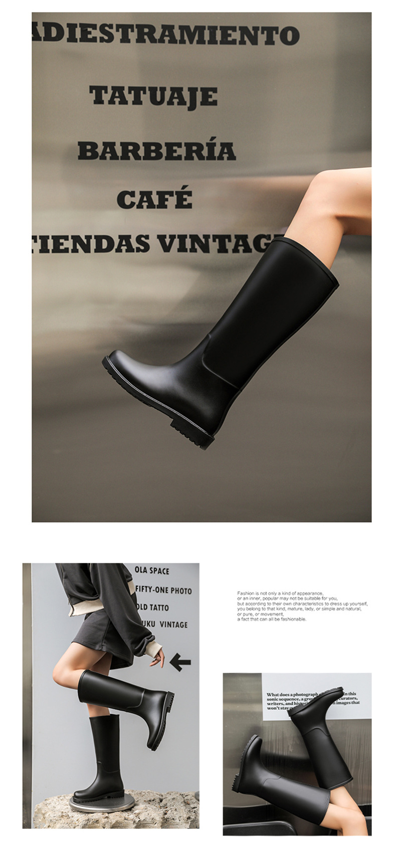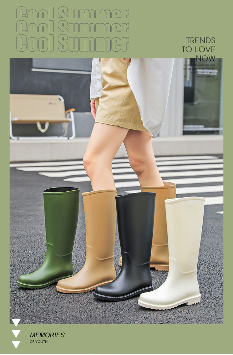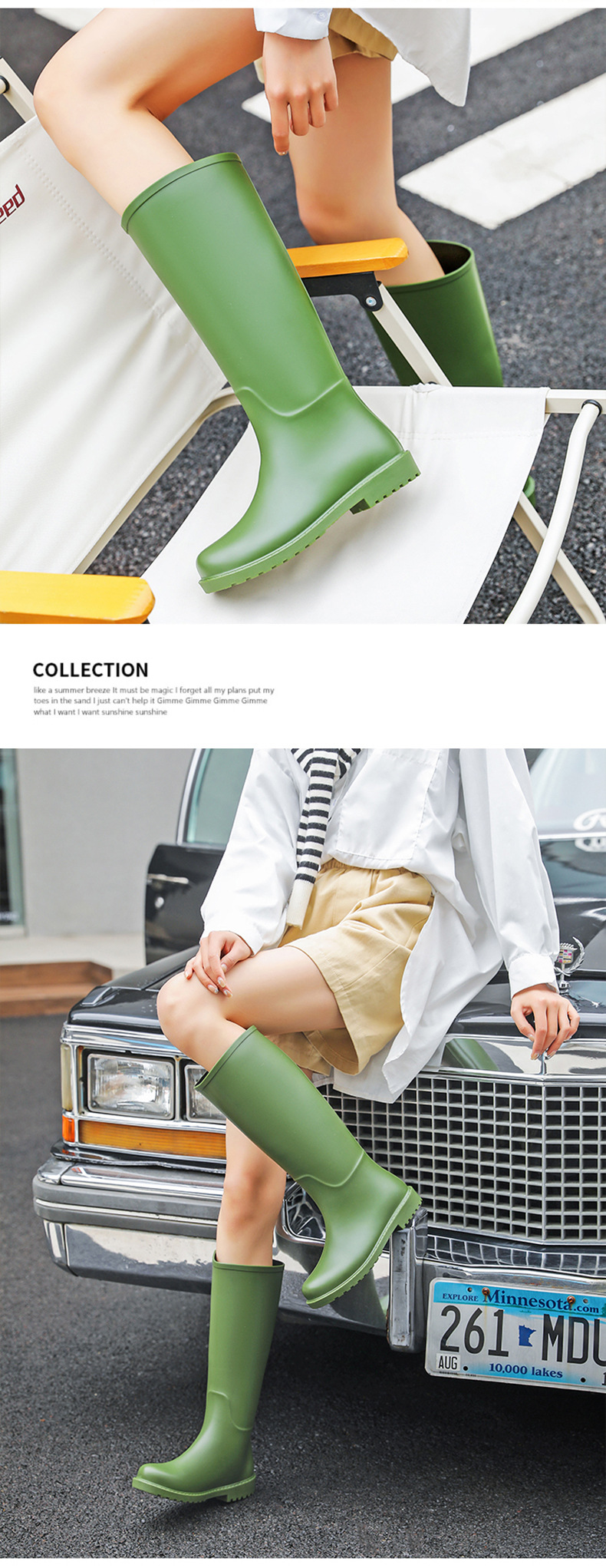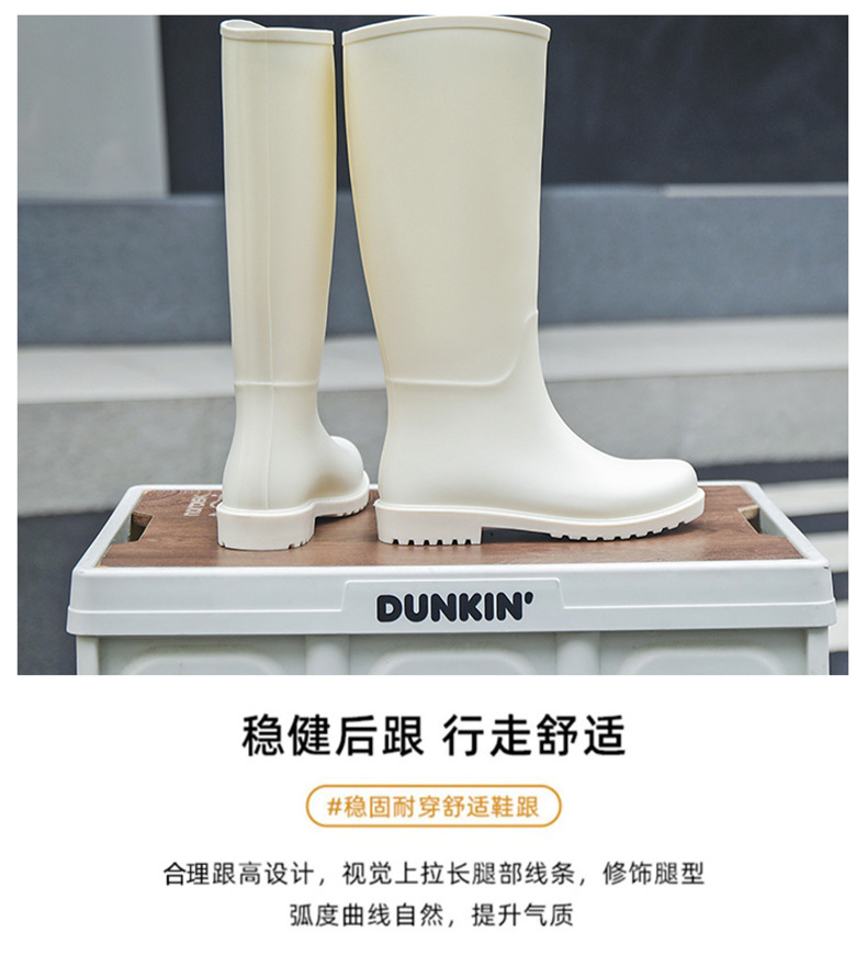 패션 한국 스타일 높은 배럴 장화 여자의 기모 장화 미끄럼 방지 방수 신발 야외 긴 배럴 기사 부츠 오버 슈즈 고무 신발 여성스토어 가기
