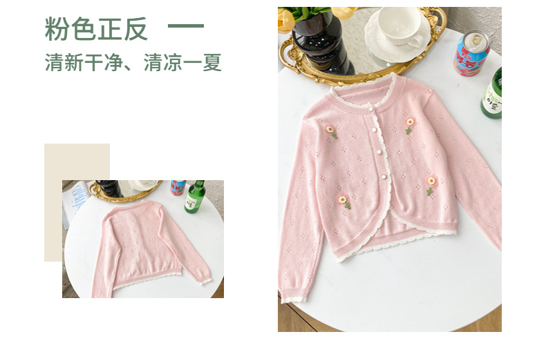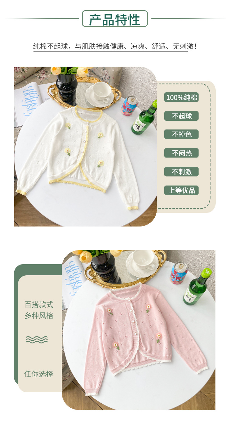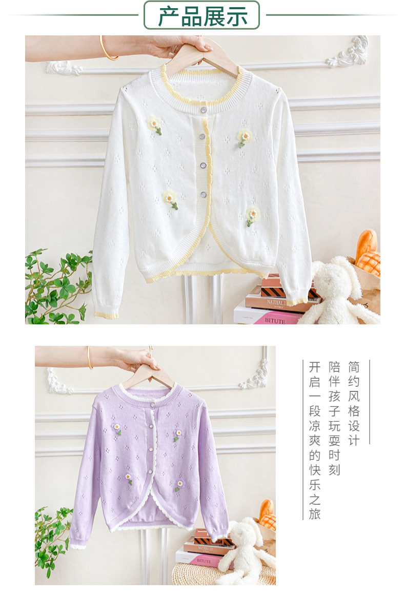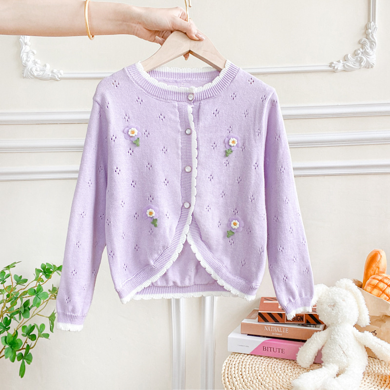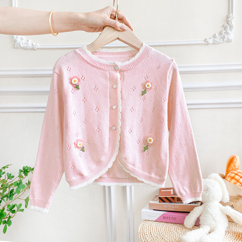 여아 가디건 스웨터 2023 봄 여름 서양식 아동용 니트 중공 순면 가디건 경량 통기성 에어컨 셔츠