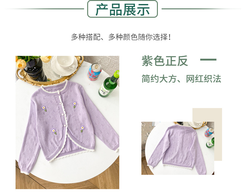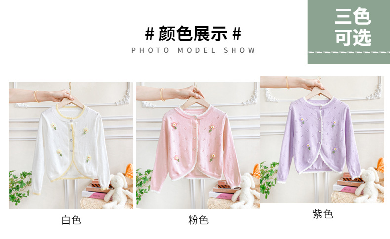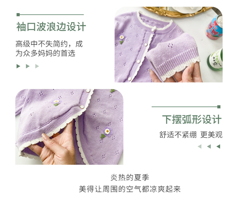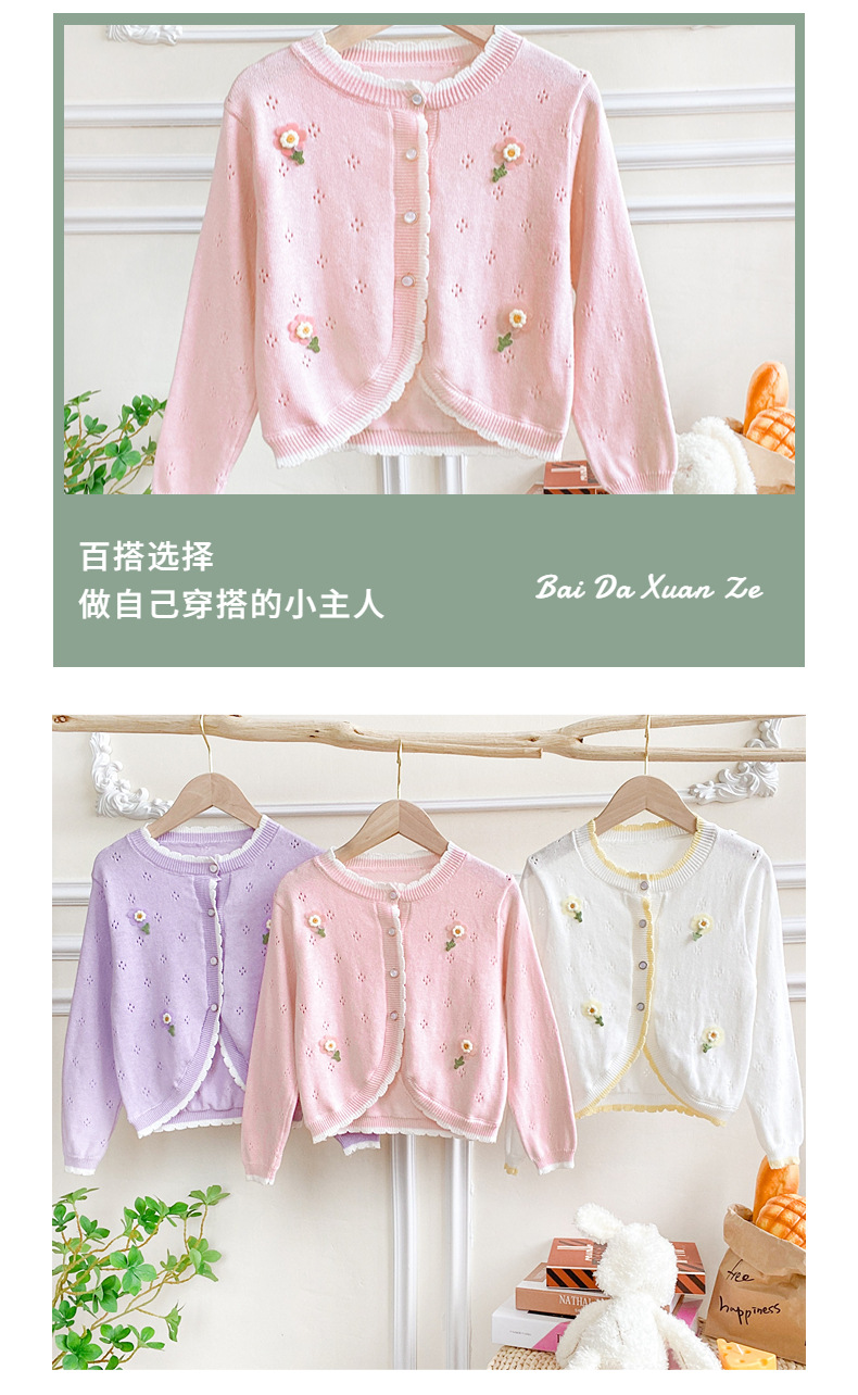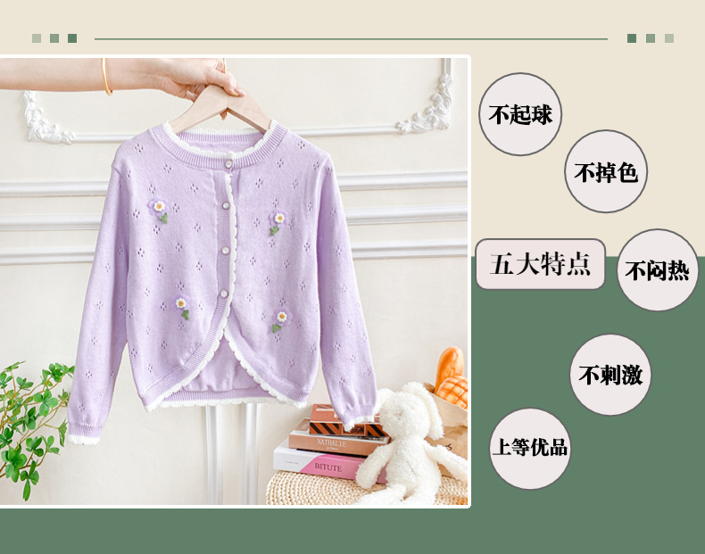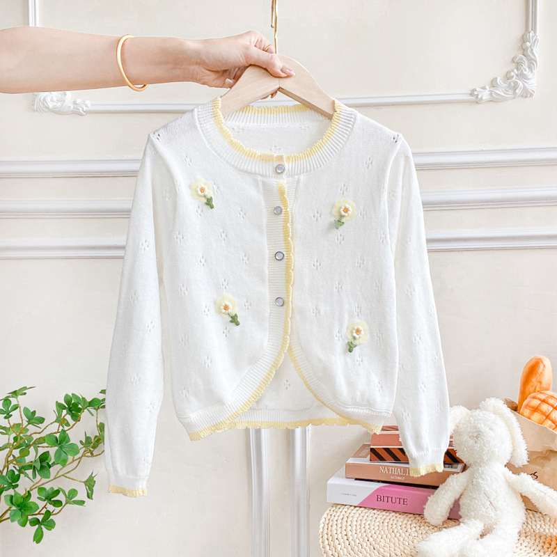 여아 가디건 스웨터 2023 봄 여름 서양식 아동용 니트 중공 순면 가디건 경량 통기성 에어컨 셔츠