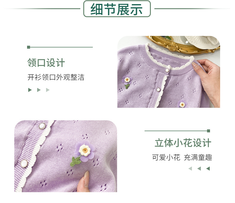 여아 가디건 스웨터 2023 봄 여름 서양식 아동용 니트 중공 순면 가디건 경량 통기성 에어컨 셔츠스토어 가기